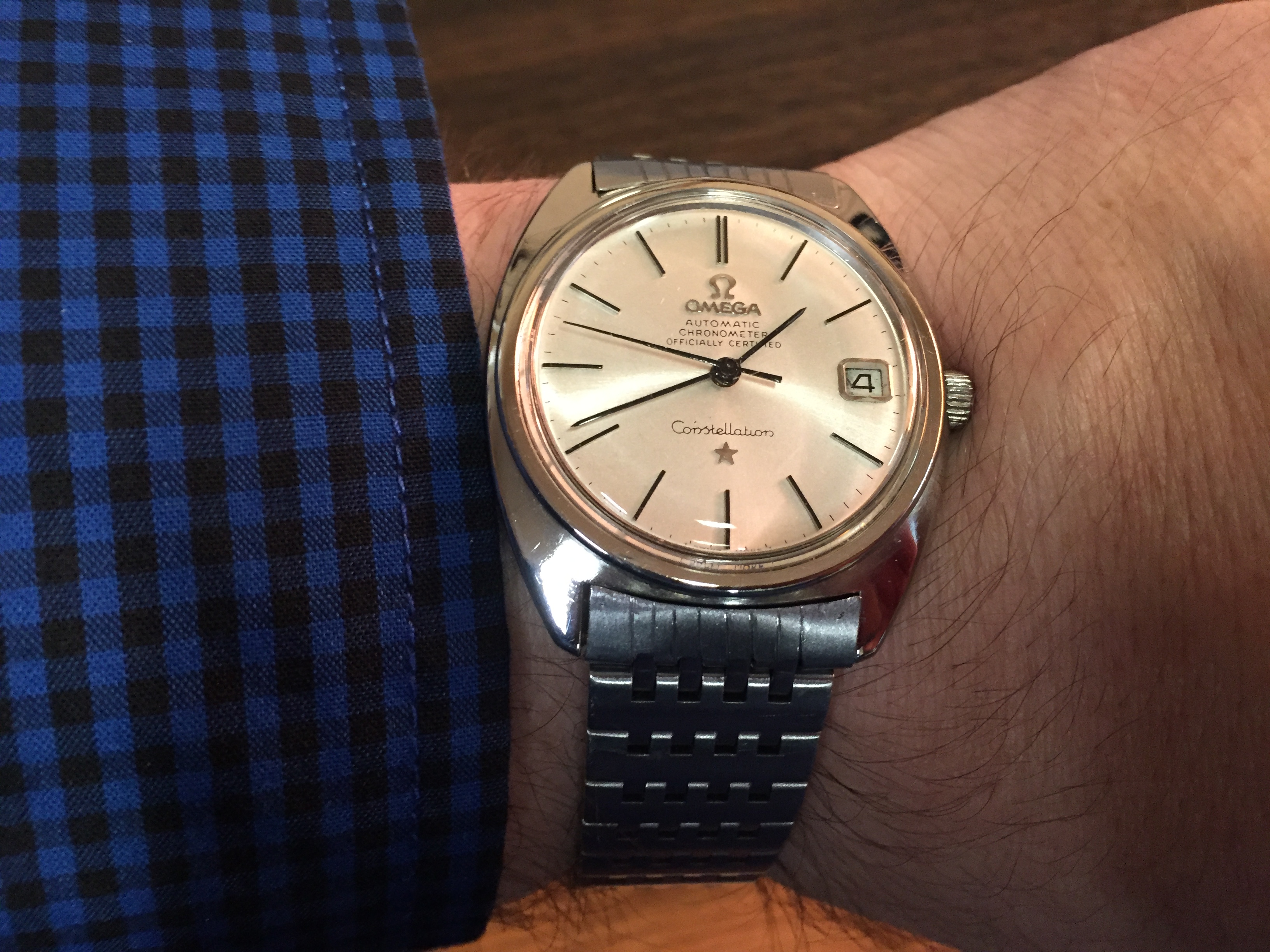 Just FYI the dealer selling the C-Shape Constellation on Chrono24 is now furious, and insists that the watch is NOS. Here’s what he says (I explained to him politely about the hands, the lack of lume dots, and the lack of “T Swiss Made T”).