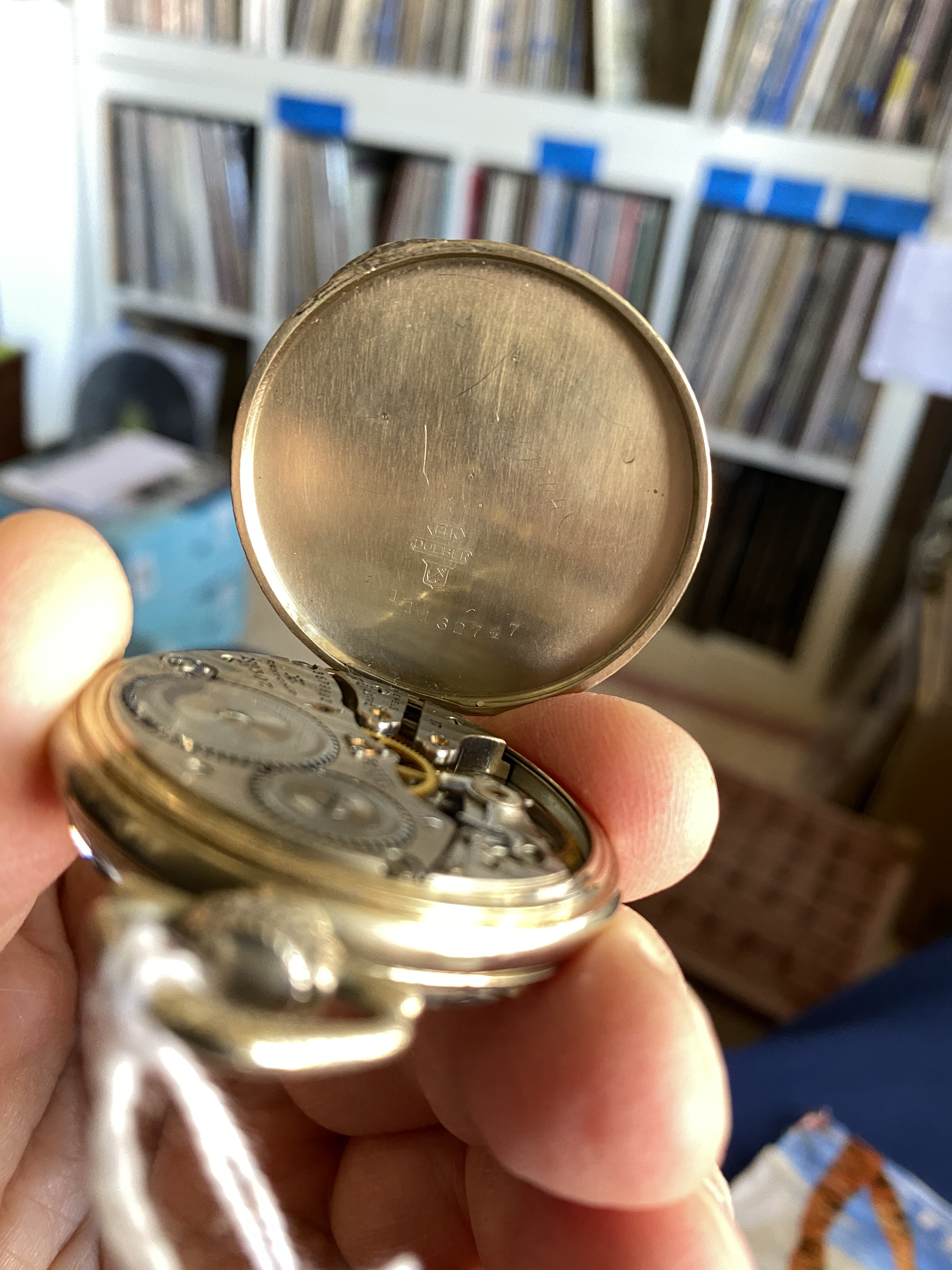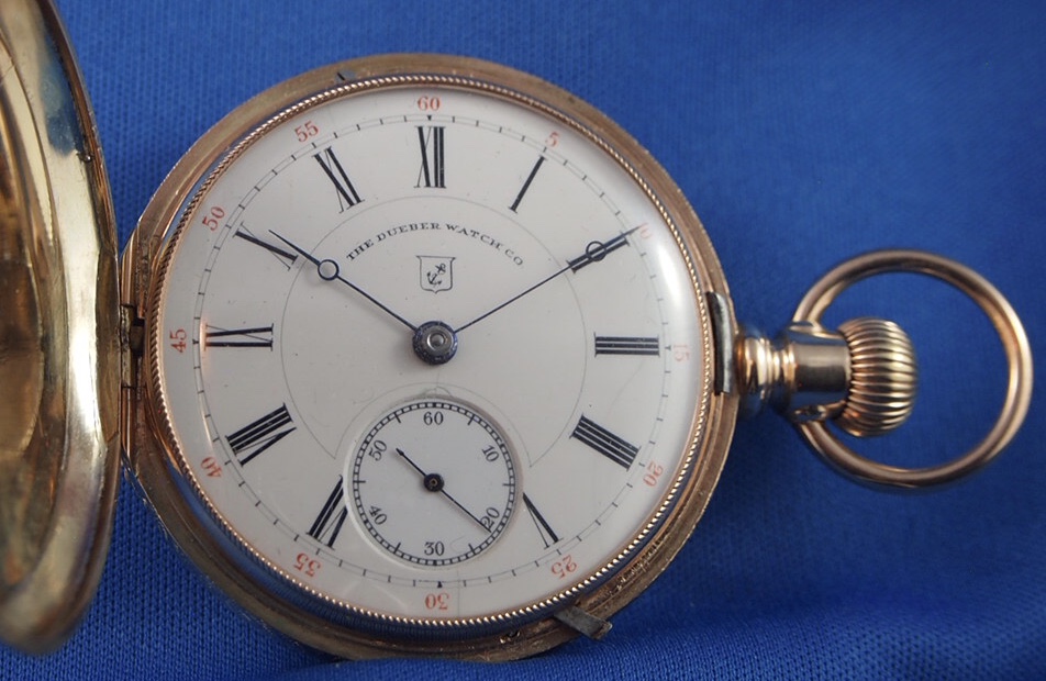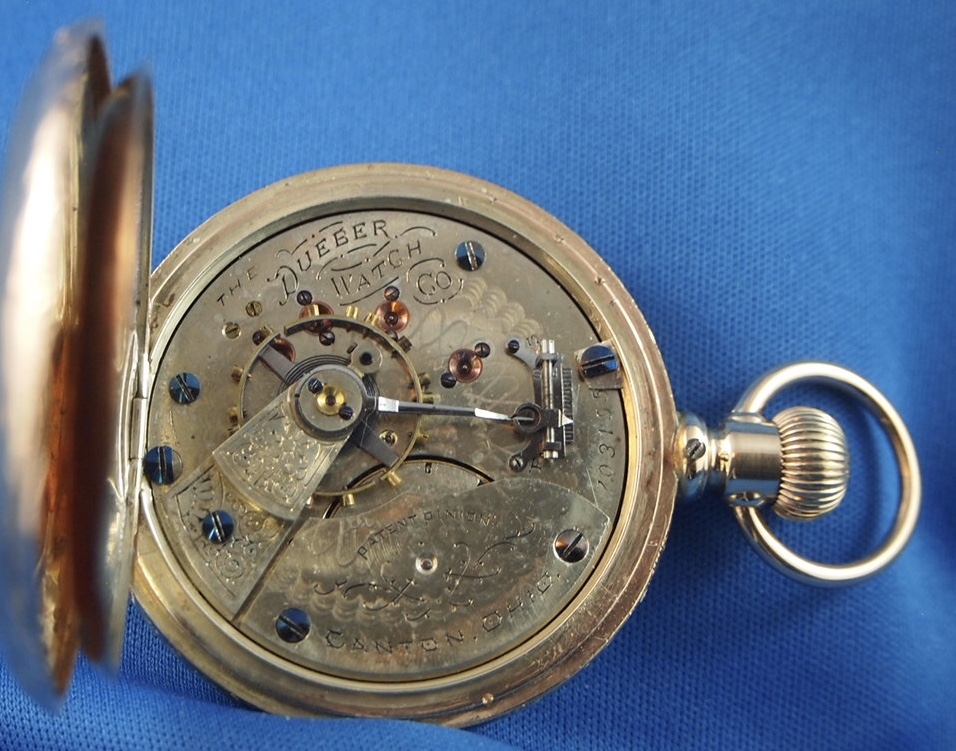 I have only one Dueber. An 18-size model in a hunter case. I tend to collect makers other than Hampden-Dueber watches. Mine is much older than yours. It runs fine on the odd occasion when I wind it (like, typically once a year when exhibited).