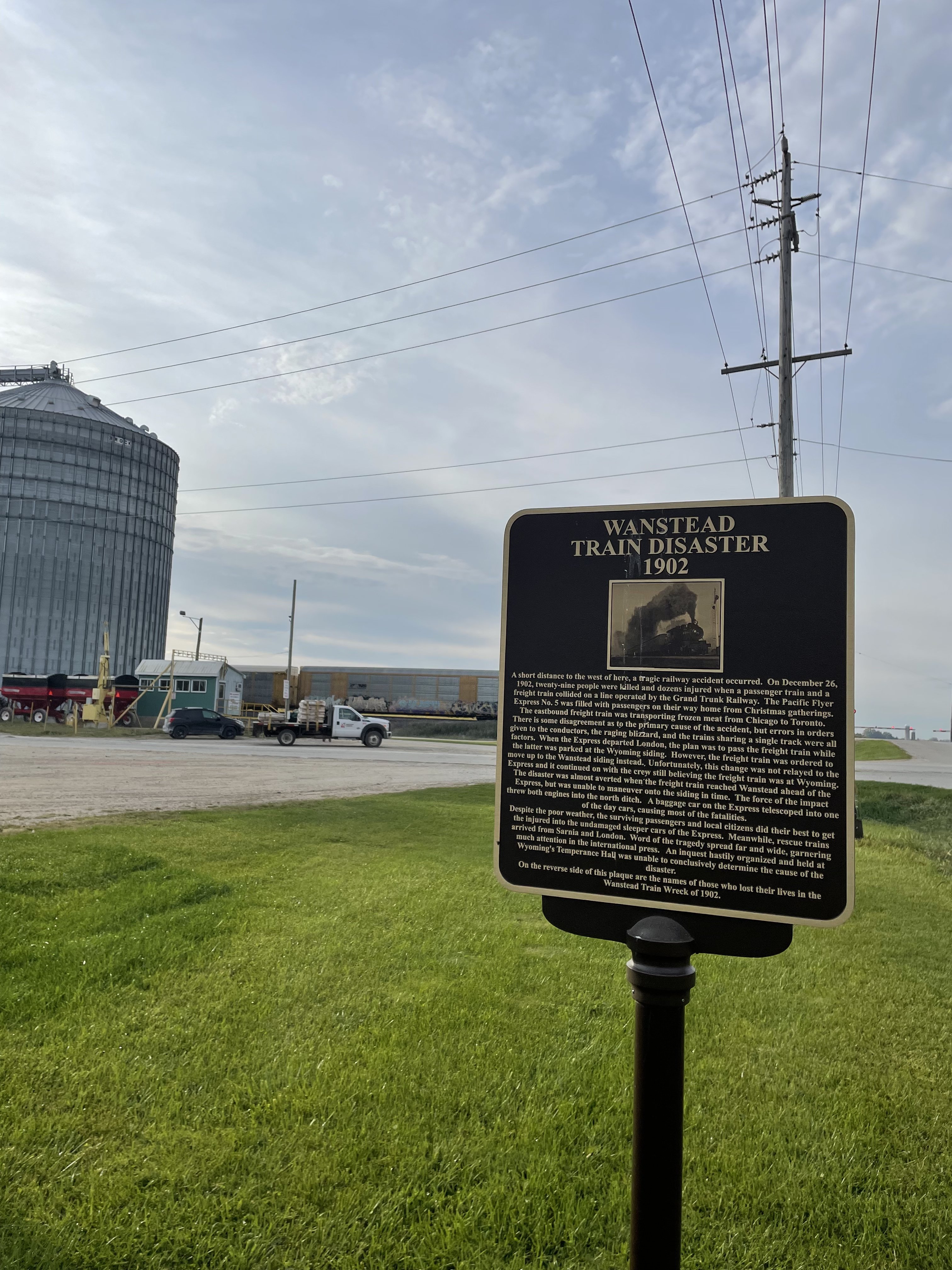 And I also drove past this marker for the Wanstead, Ontario train disaster of 1902. By 30 seconds I missed stopping to get the CN engine in the shot 😡