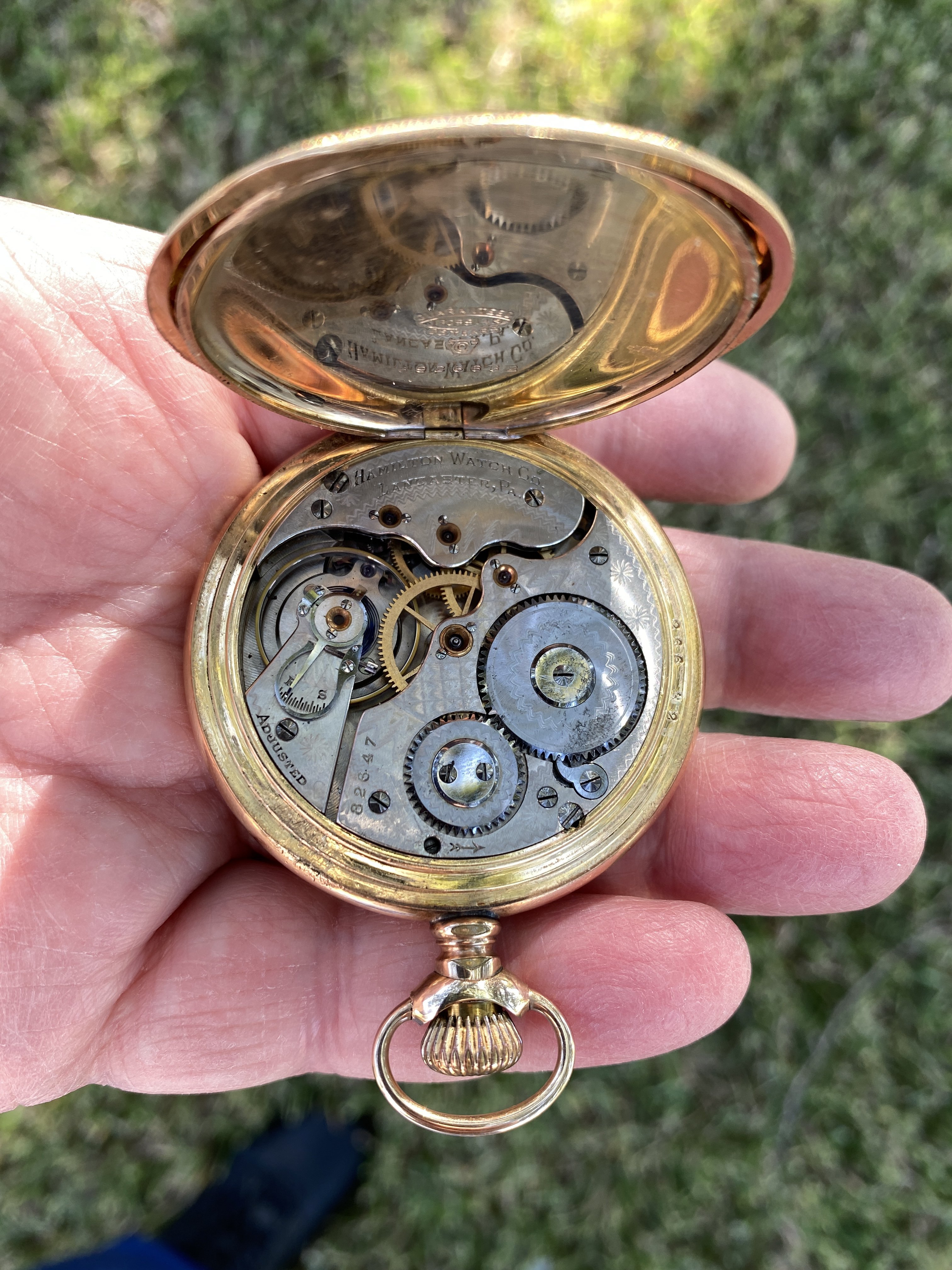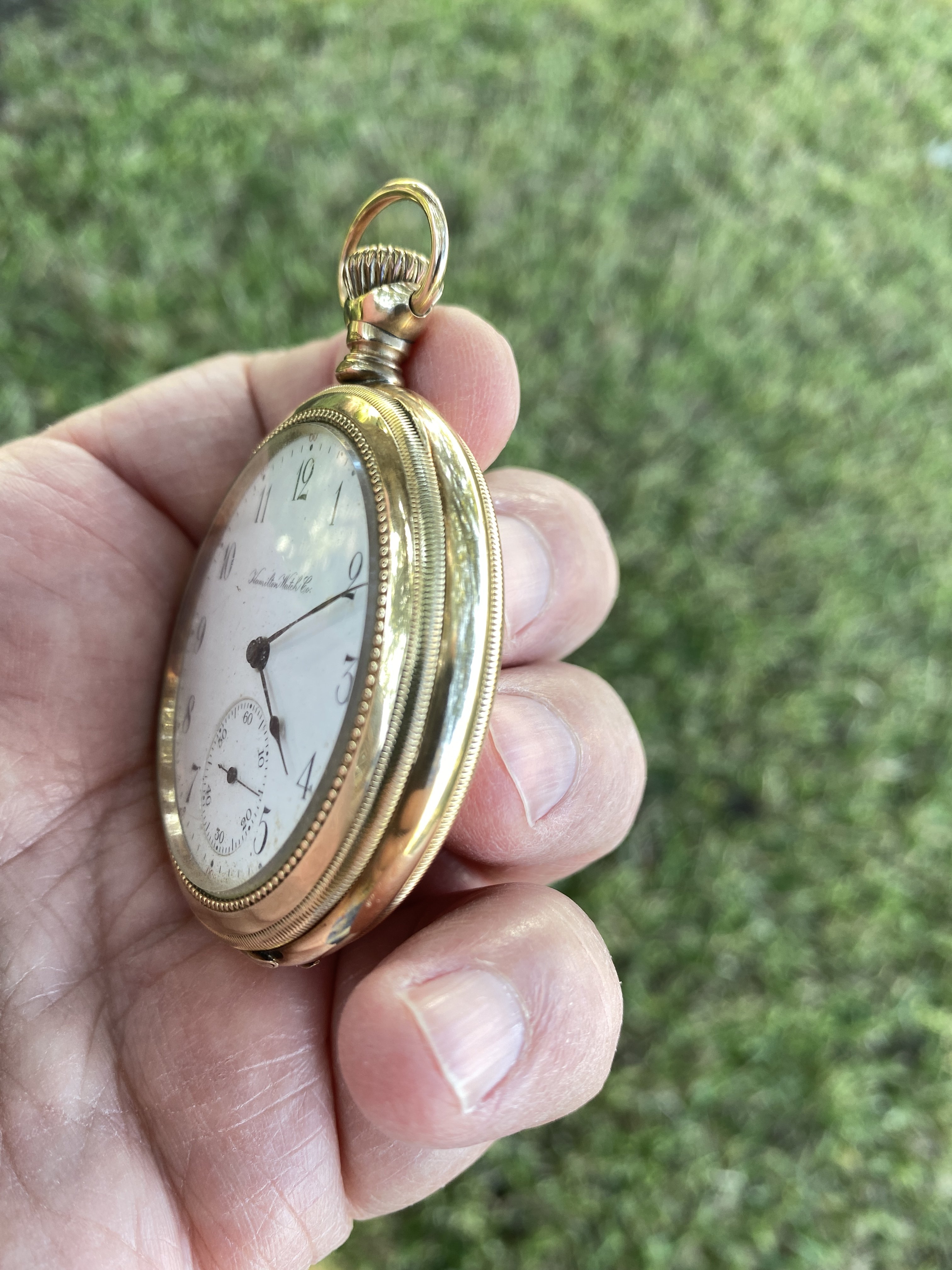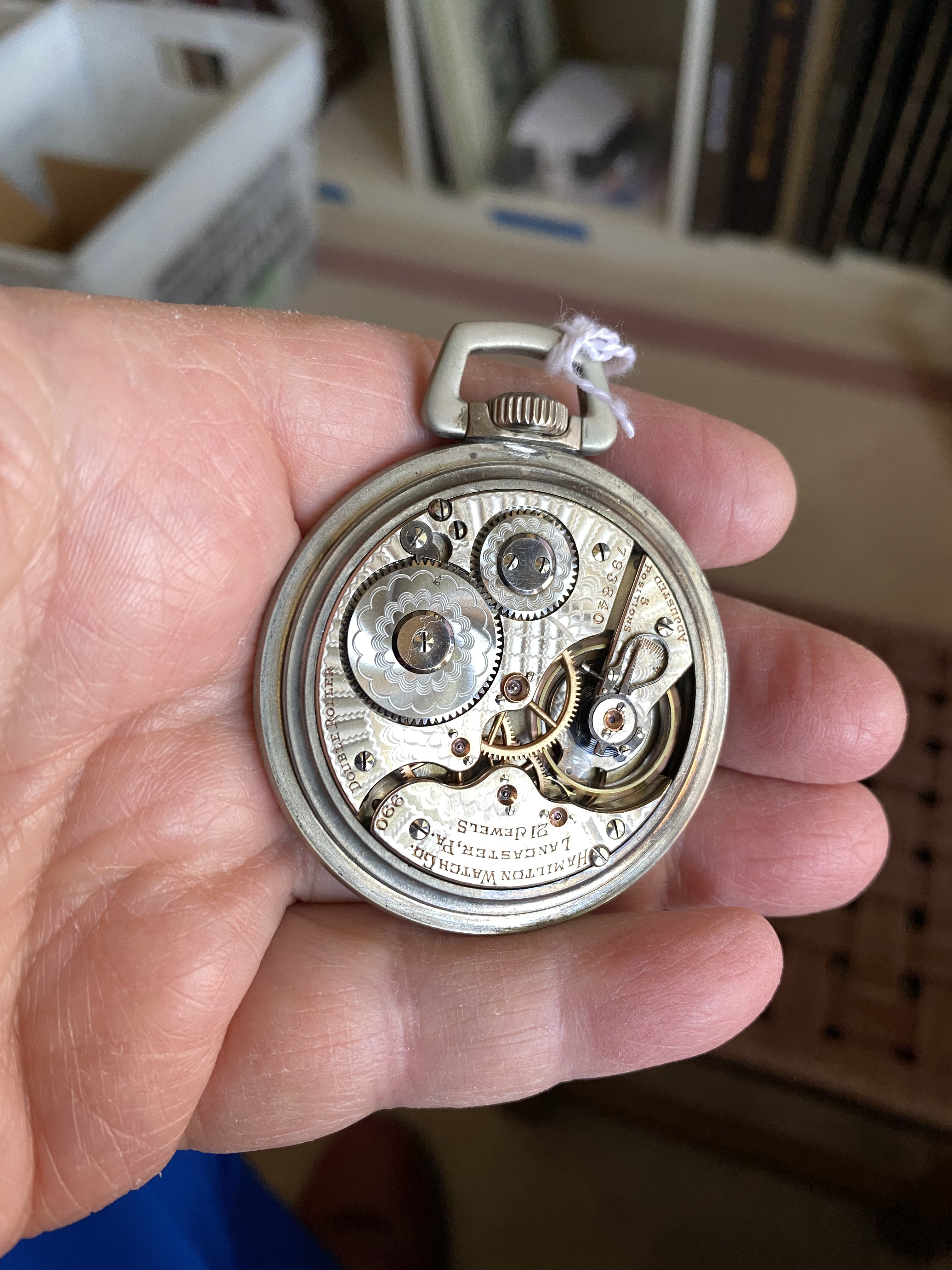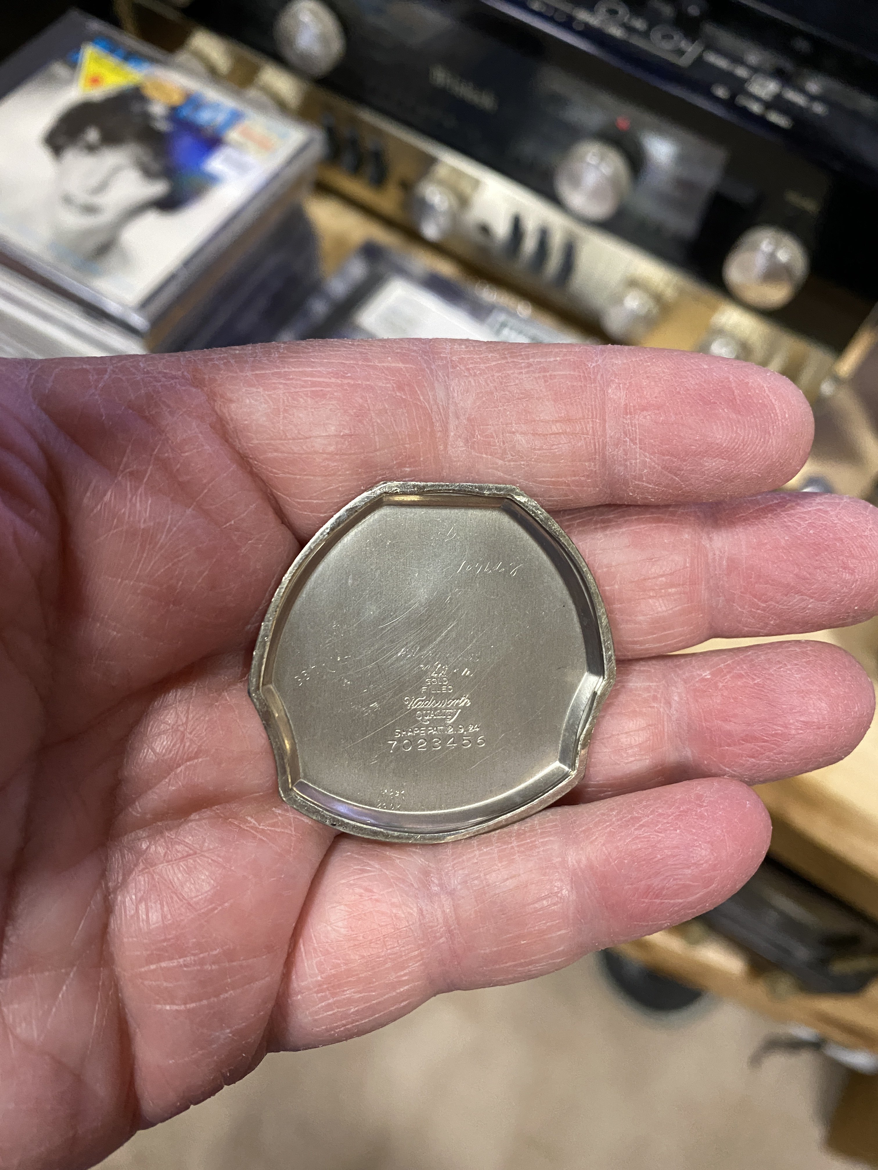 Came with this mid 1940's base metal case, but soon to be in a Hamilton display case.