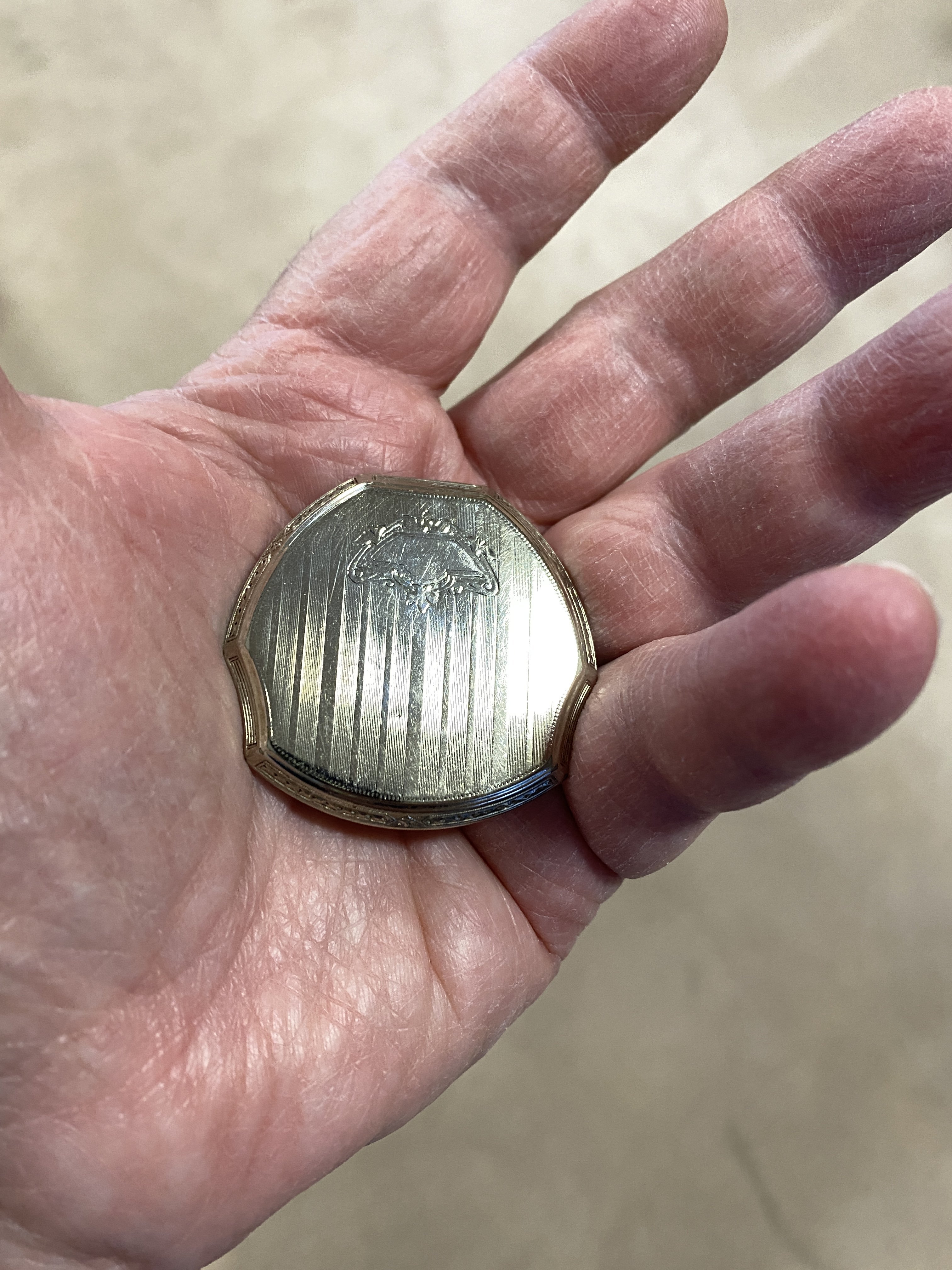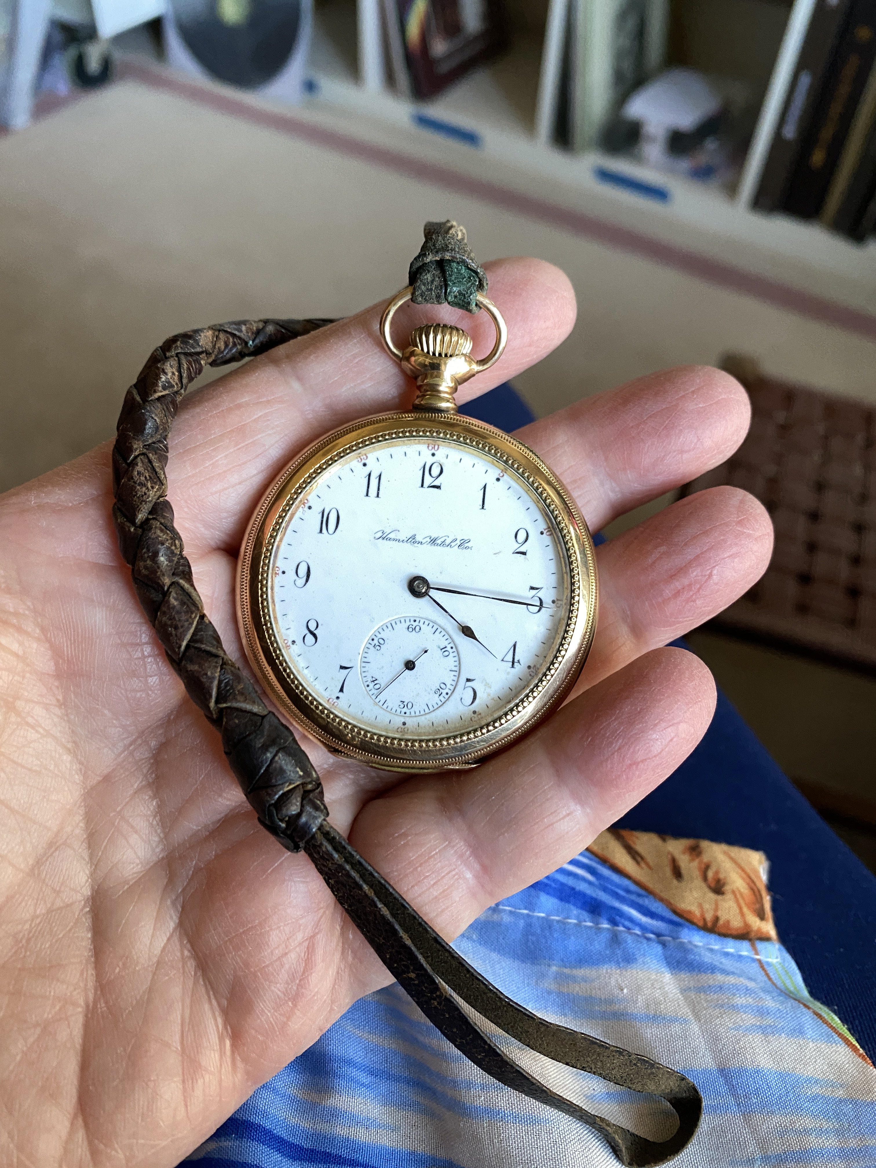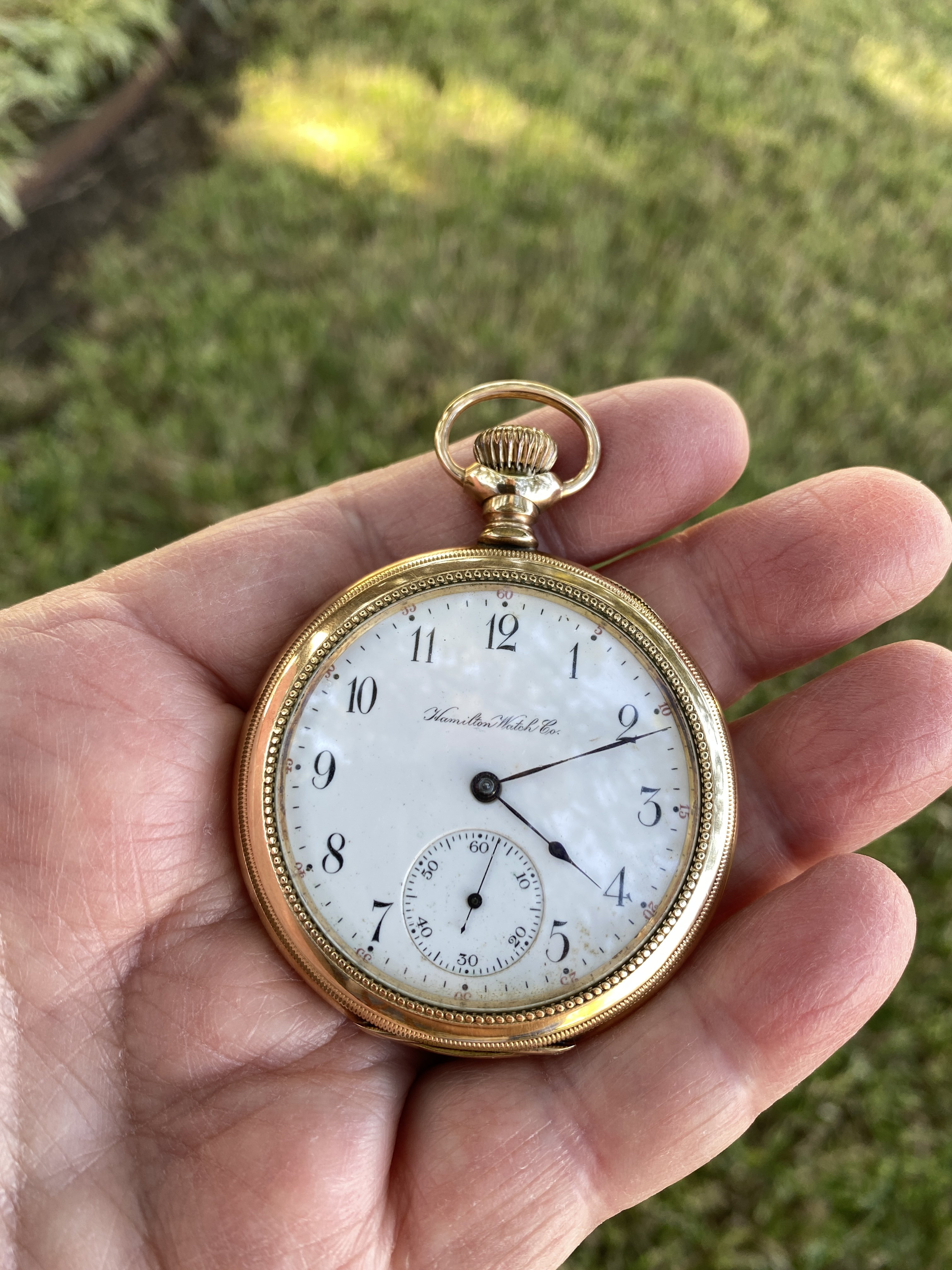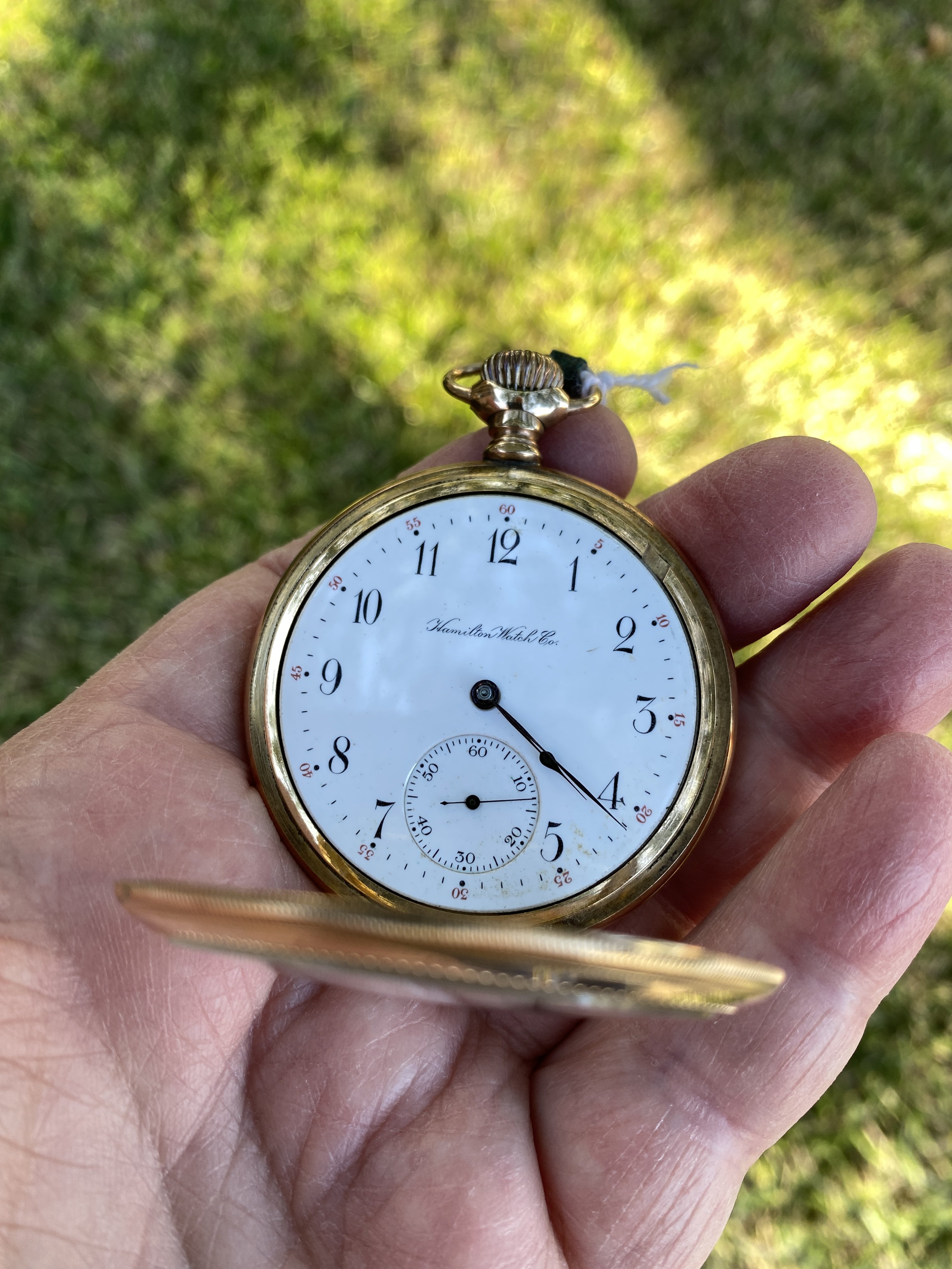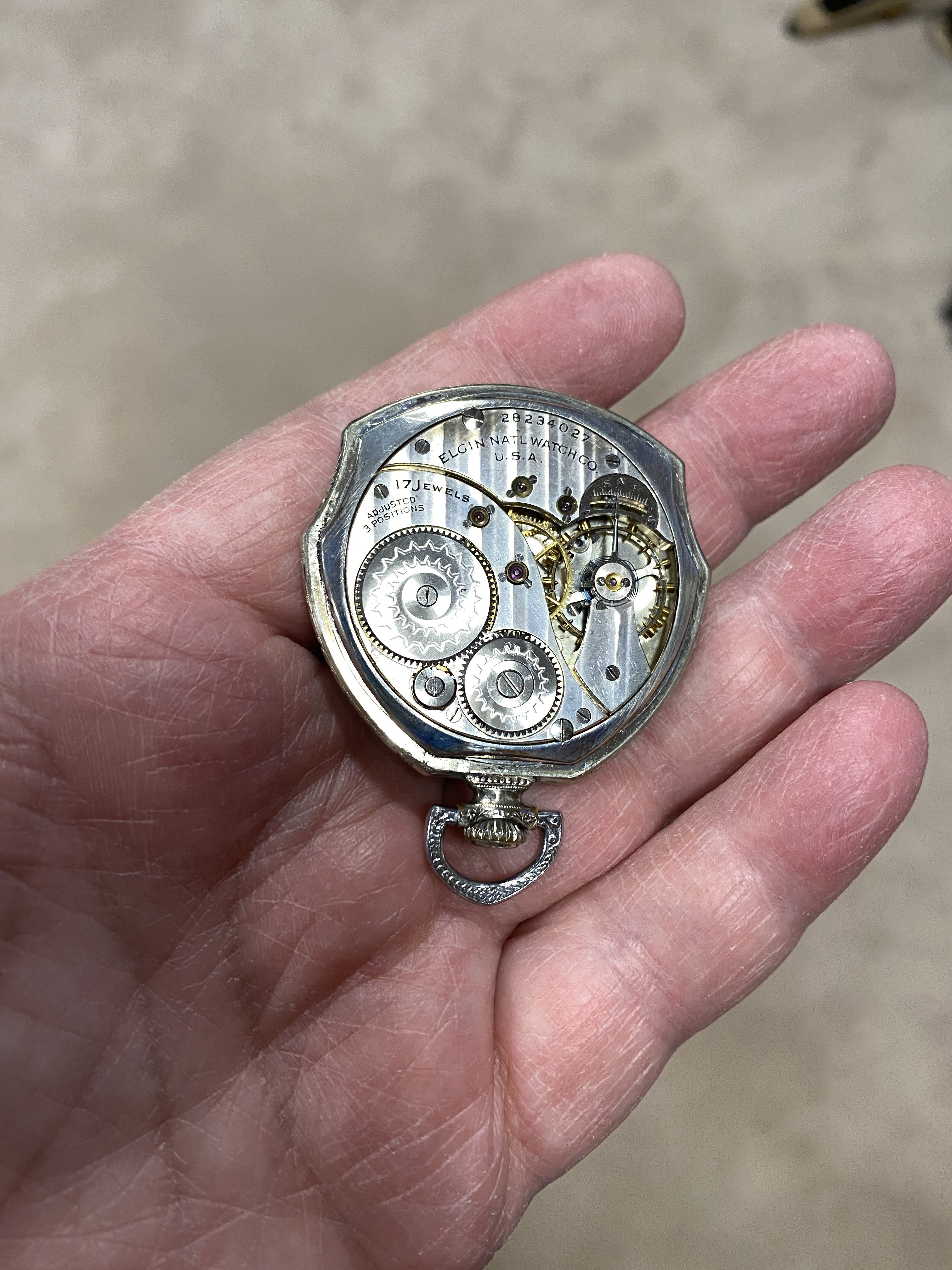Came with this mid 1940's base metal case, but soon to be in a Hamilton display case.