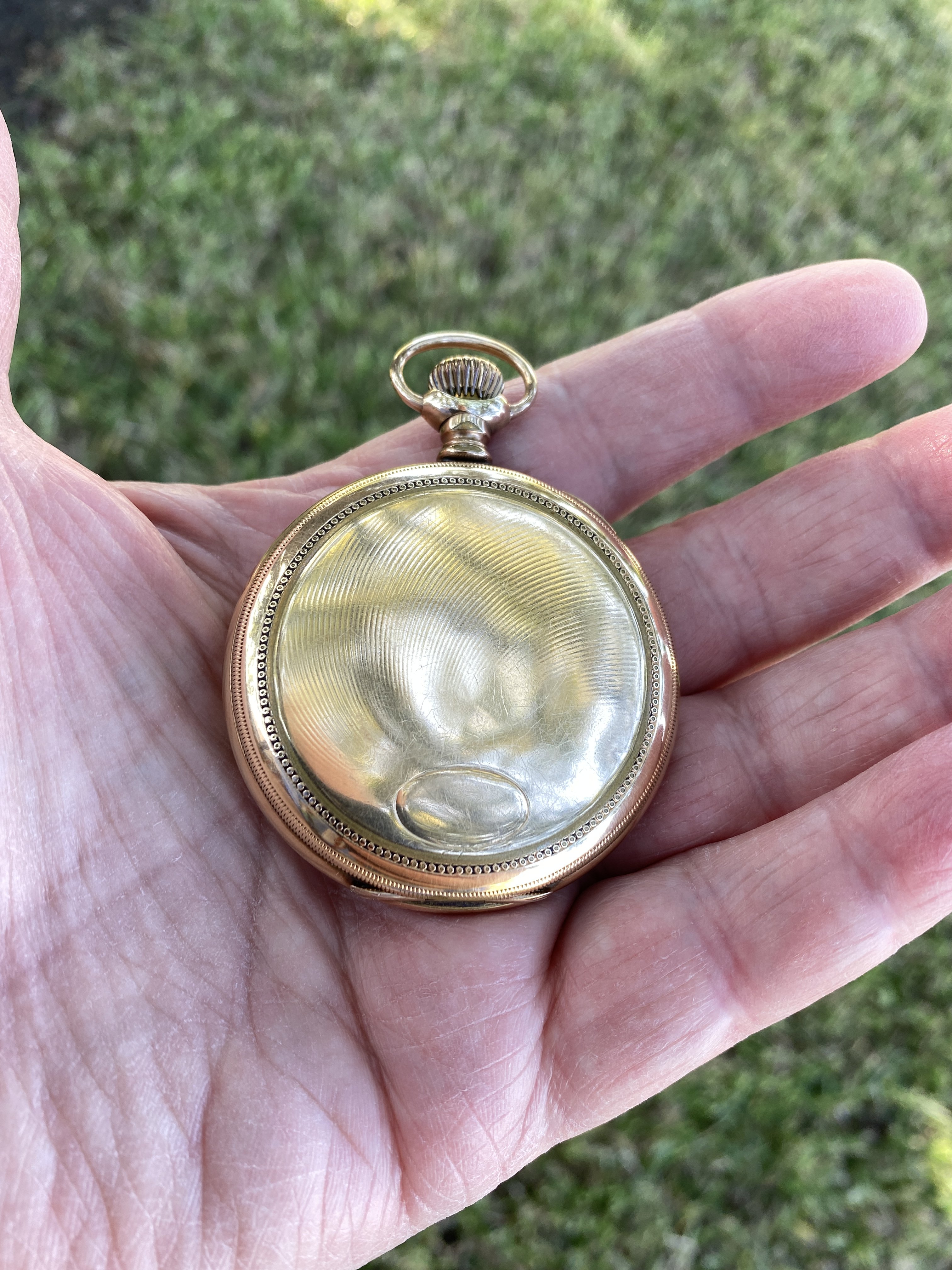 Gorgeous Keystone Watchcase......GF, beaded bezel, coin edges, triple-hinged, engine turned.....WOW.