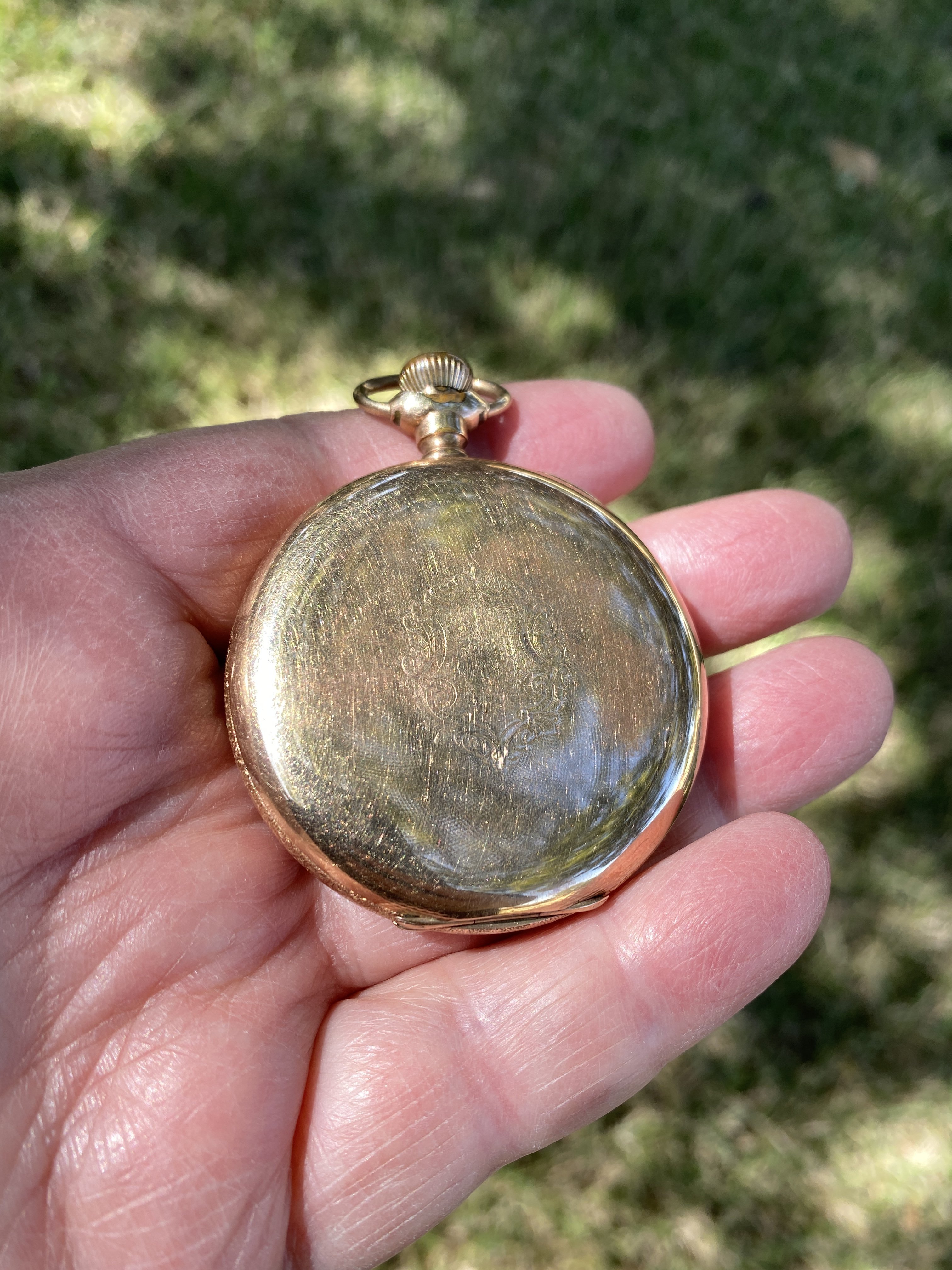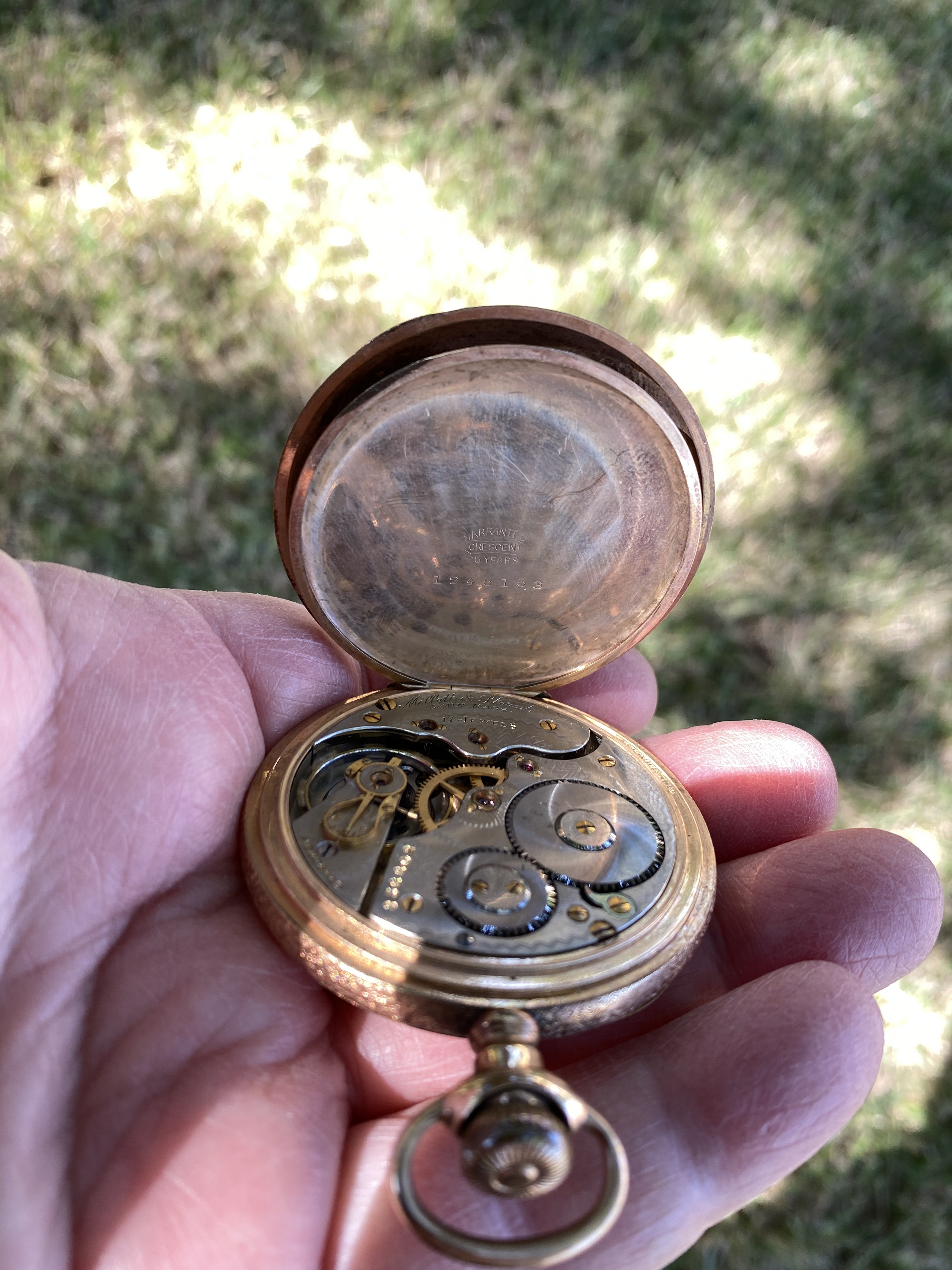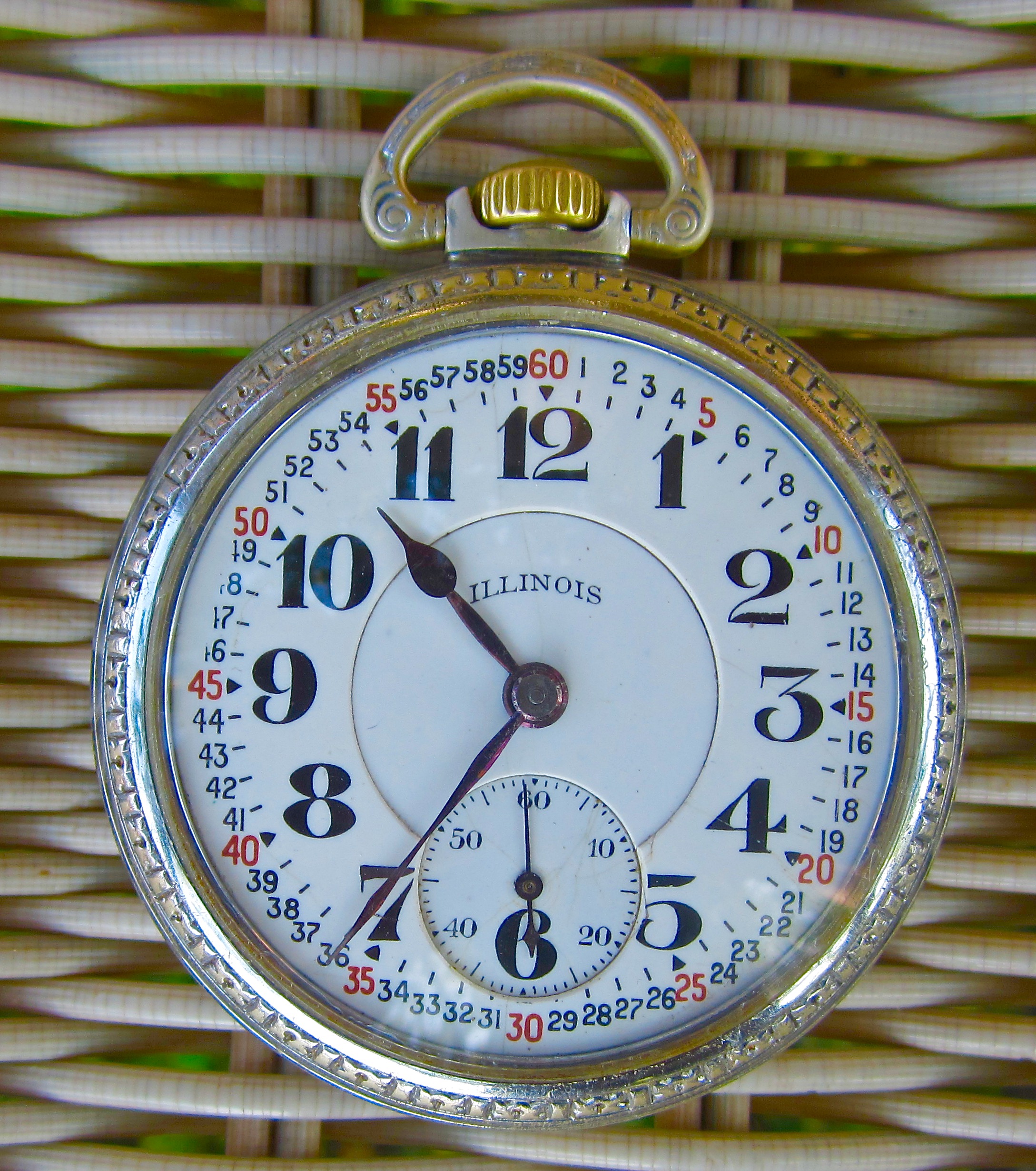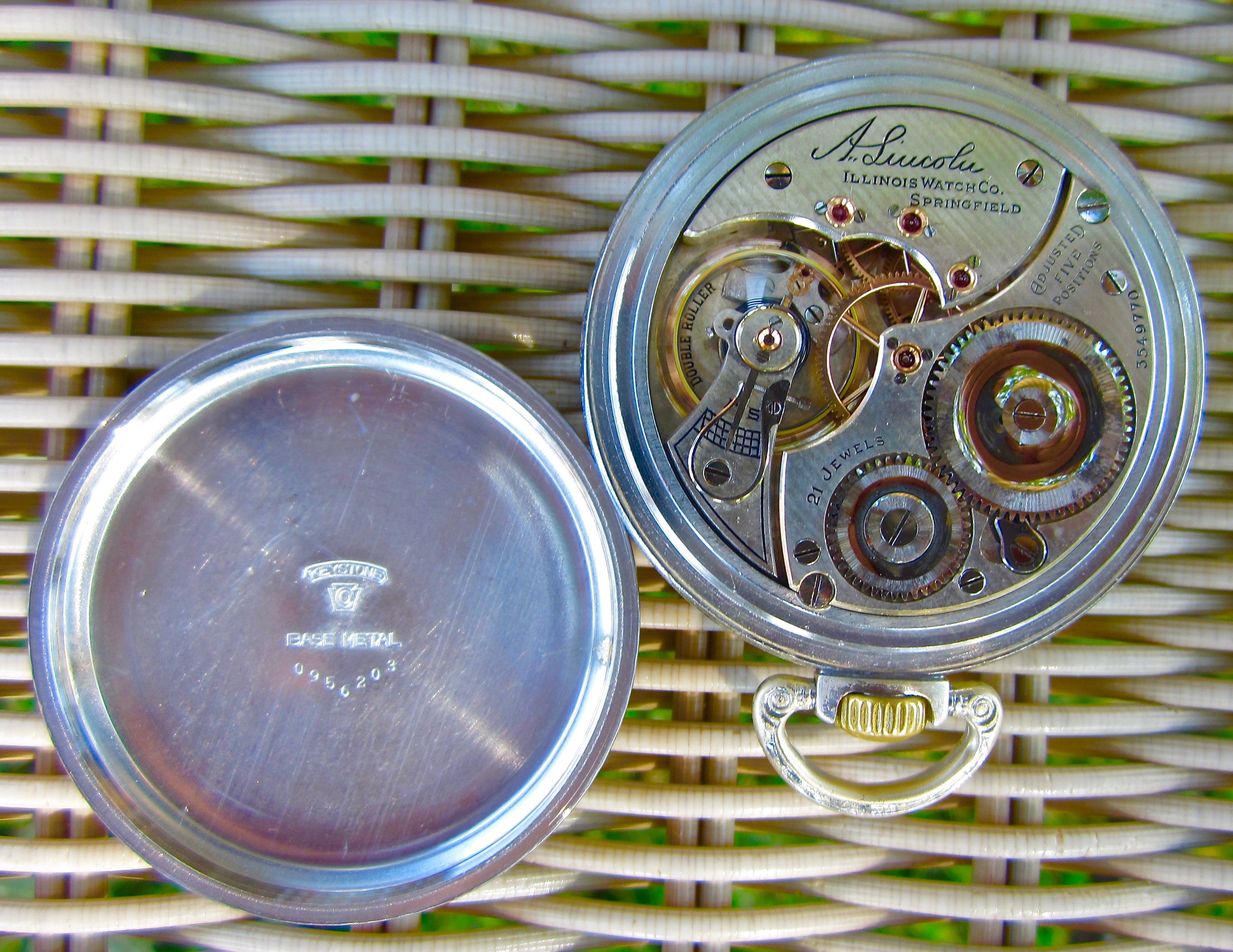 I had picked up an Illinois A. Lincoln in need of help. It had a badly glued in yellowed plastic crystal and a dirty movement. It would run however. Its case looks like it was someone's well worn work watch. Railroad perhaps? More likely it served in the overalls of a farmer or rancher.