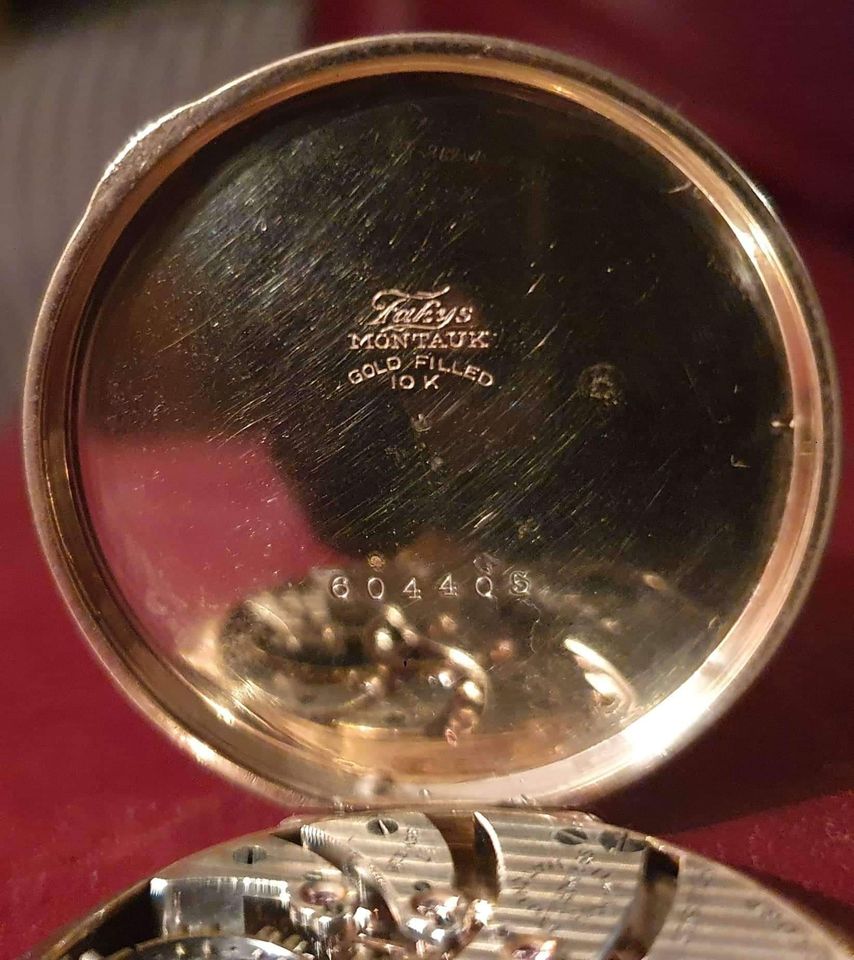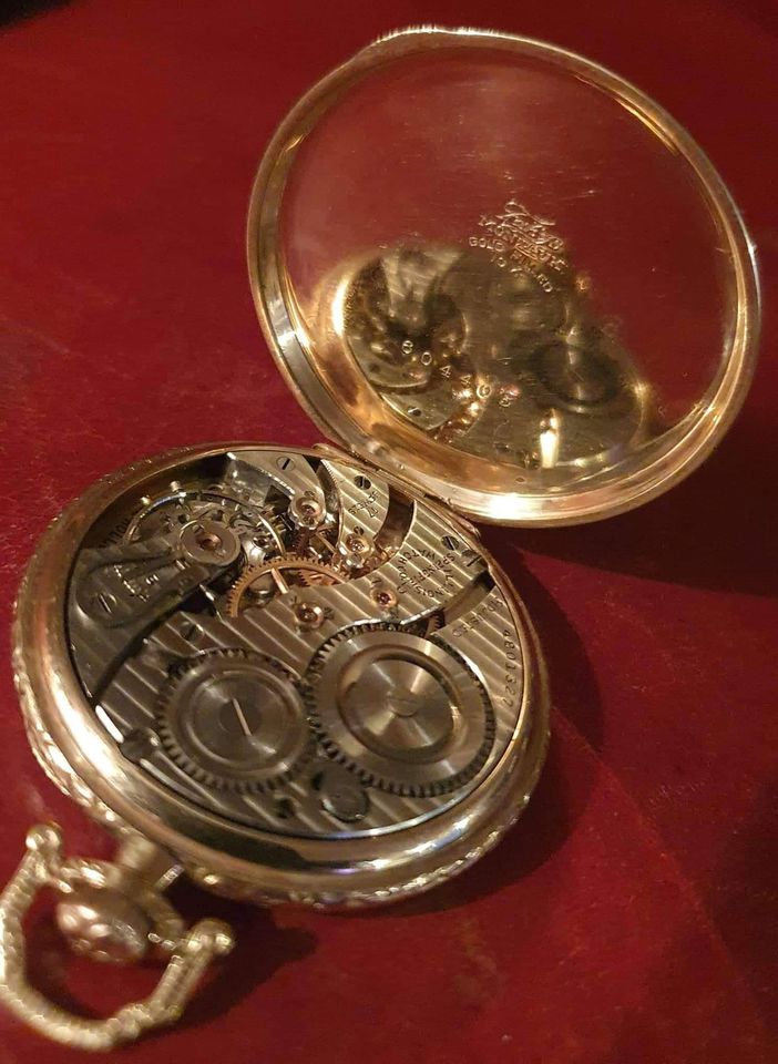 Not rare, not railroad grade, 12-size models are not extremely popular among collectors. This model introduced circa 1922, but this example was made circa 1927-28. Ten karat gold filled Fahy’s Montauk case. Watch appears to be in average to good condition. Very attractive movement.