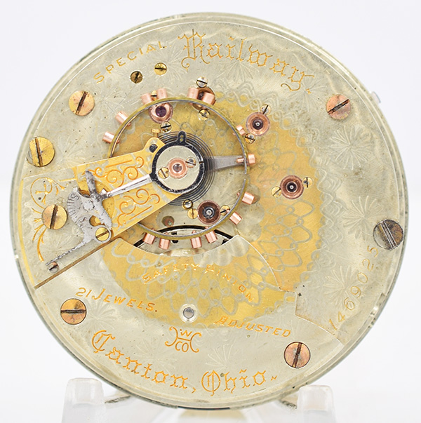 This Montgomery” (Illinois) watch with 24-jewels is rather a rare one. I have only ever seen one other over many years. It is an example of what John Dueber called a watch with “smokestack” jewels.