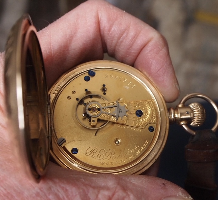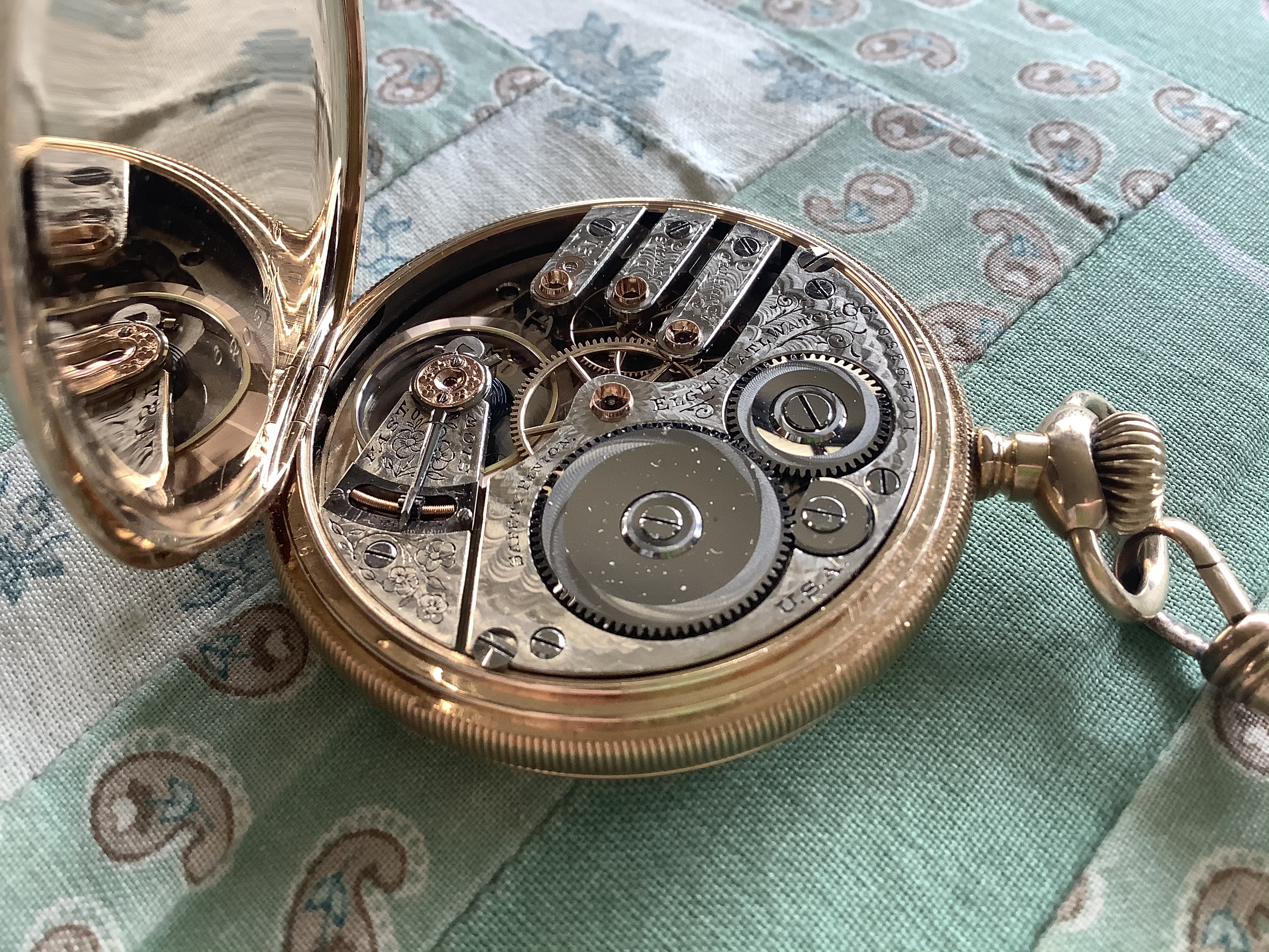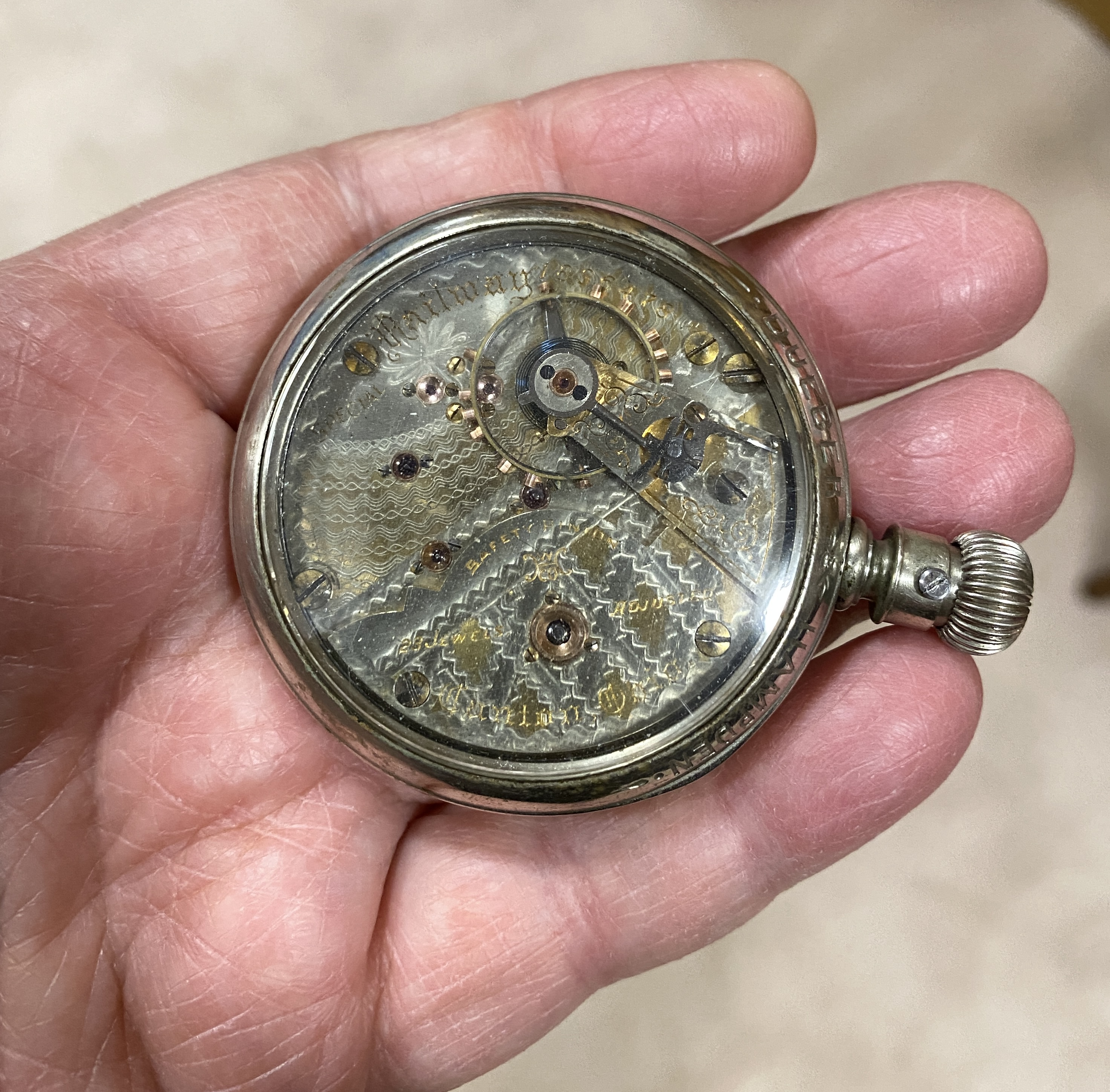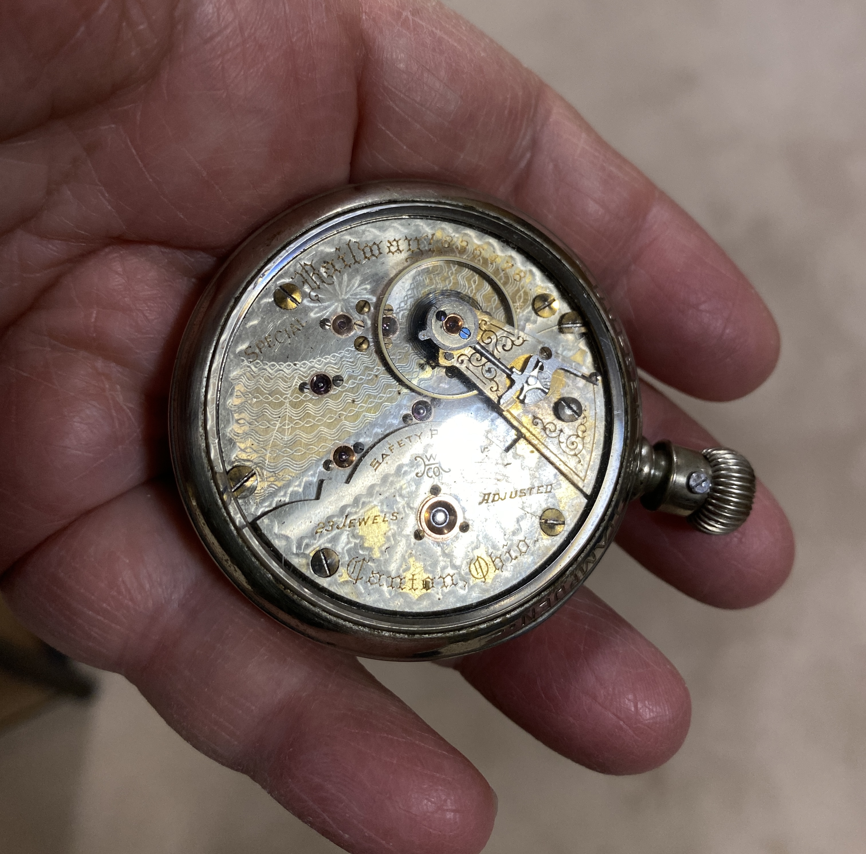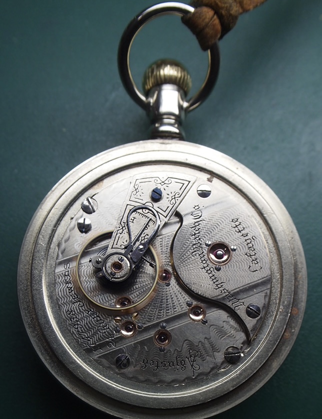 This “Washington“ Illinois) watch with 24-jewels is rather a rare one. I have only ever seen one other over many years. It is an example of what John Dueber called a watch with “smokestack” jewels.