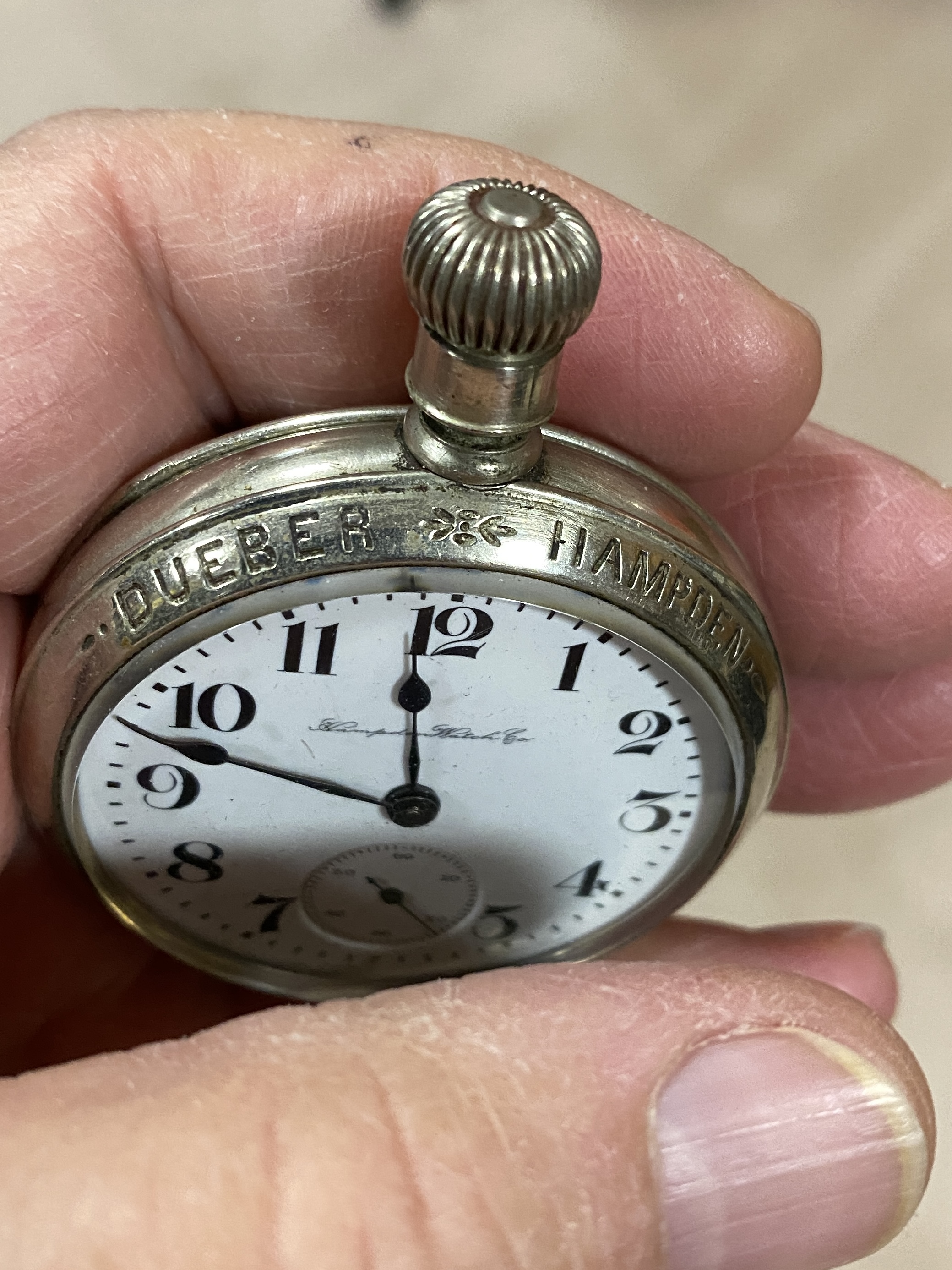 The Hampden Watch Co. was acquired by John Dueber of the case making firm, the Dueber Watch Case Co. Hampden became the Dueber Hampden Watch Co. Because Hampden had never produced a watch with more than 23-jewels, John Dueber countered the ads for higher jewel count watches produced by others by introducing the term “smokestack jewels” into Hampden Watch advertising. Essentially implying that these added jewels did nothing to improve the performance of those watches.