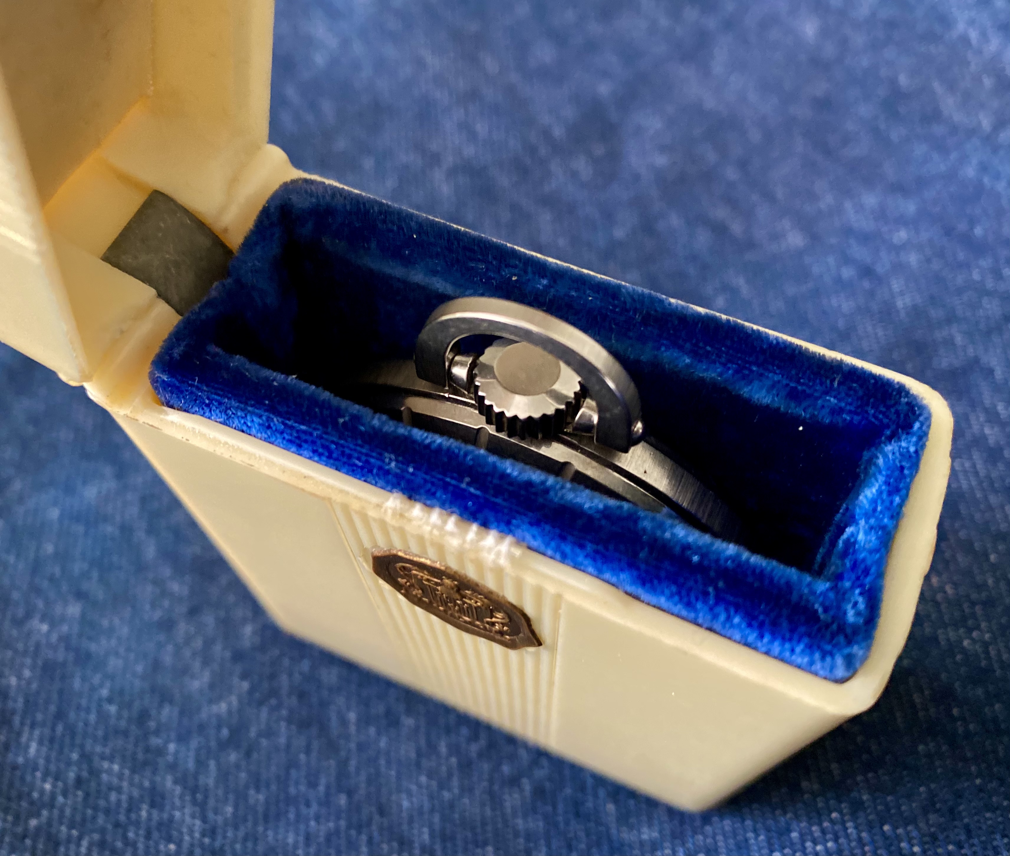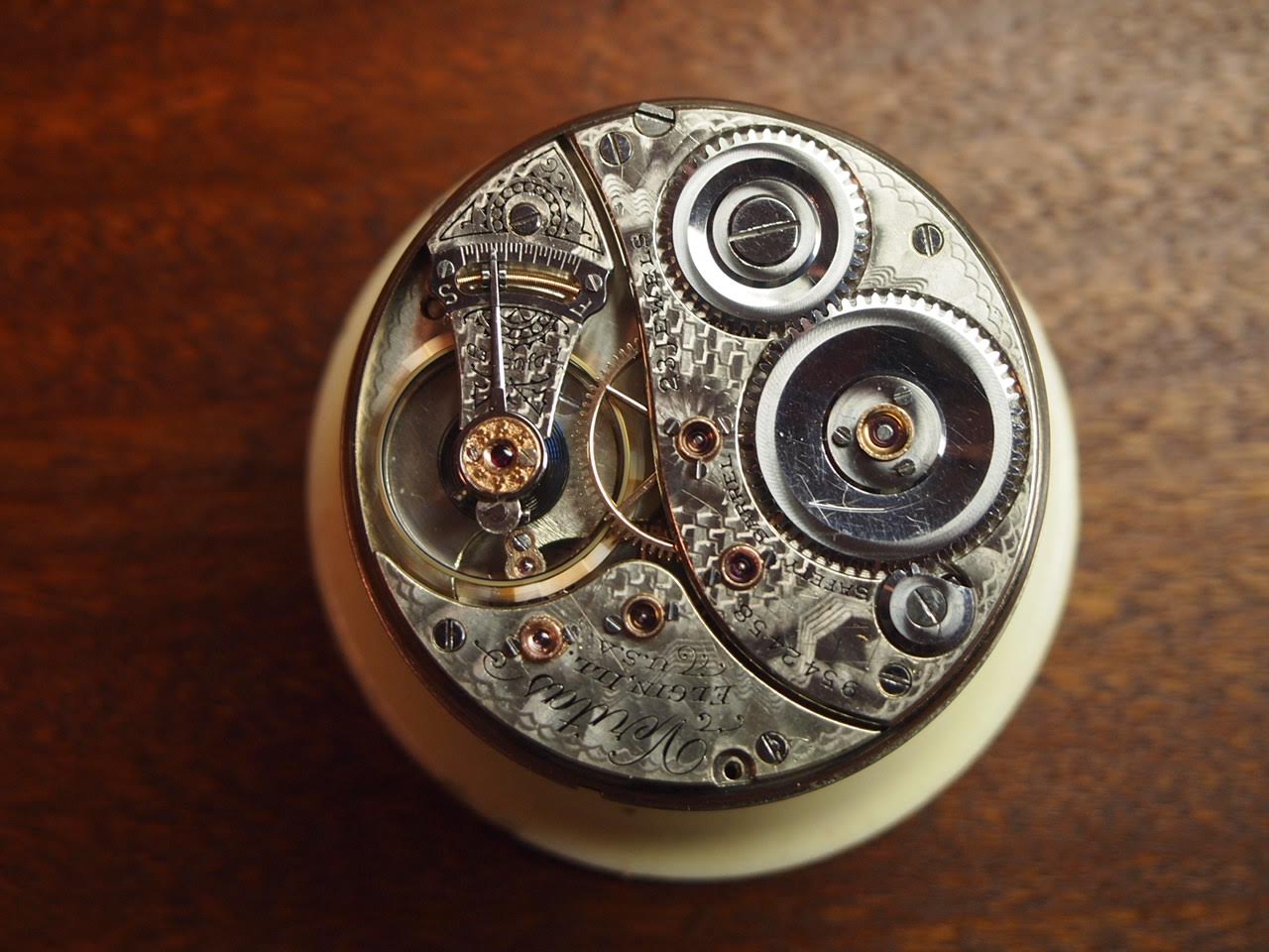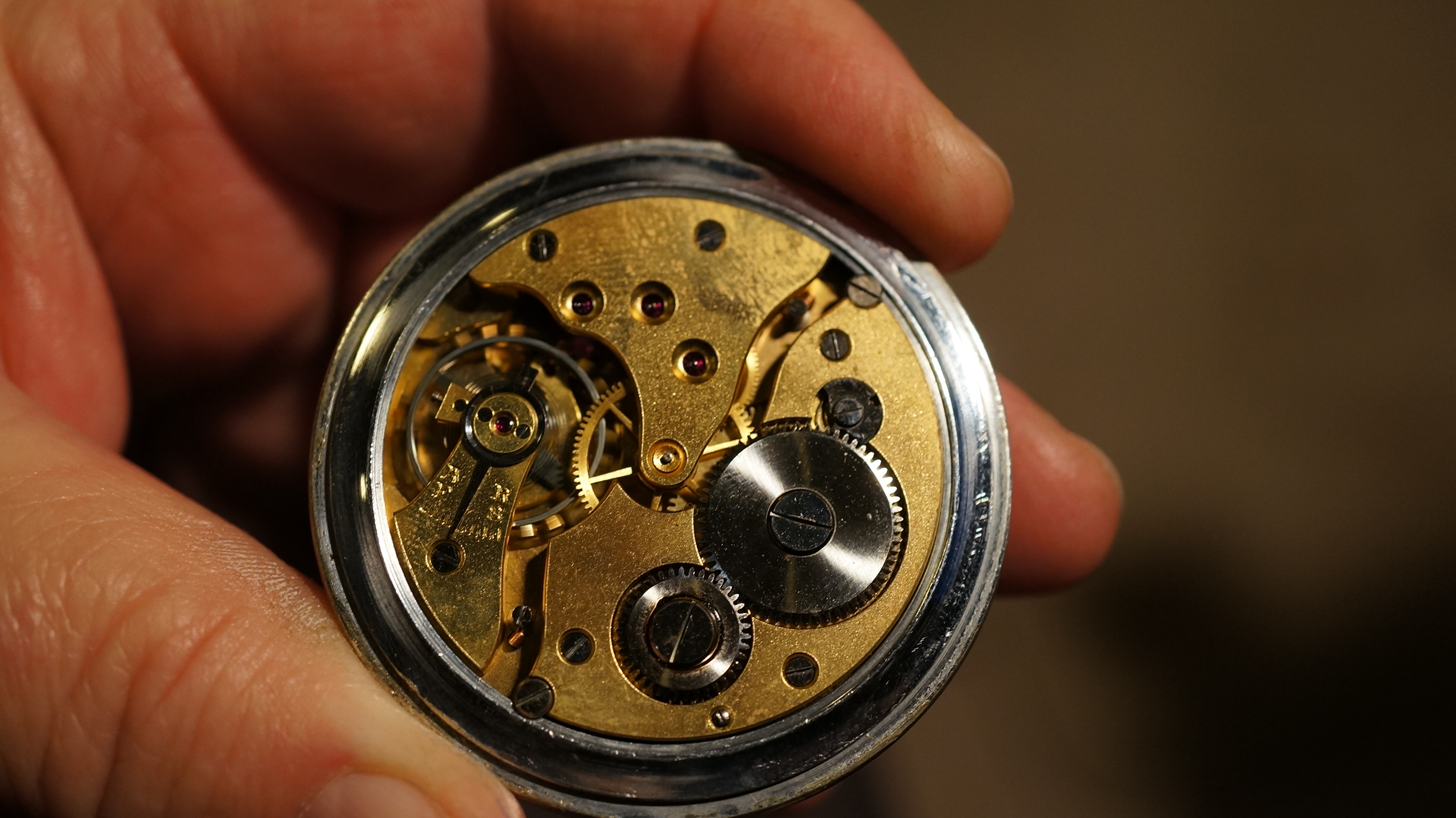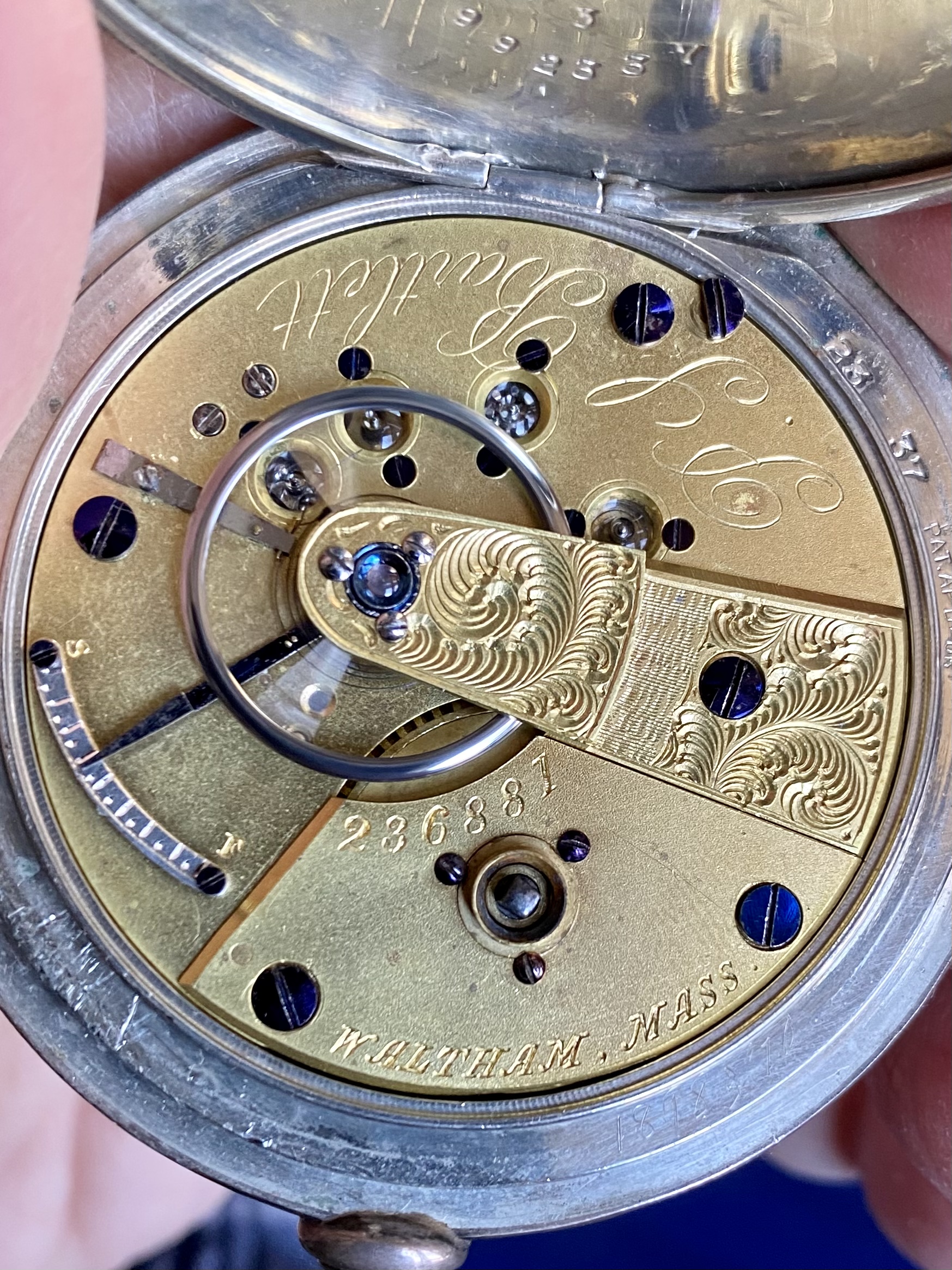 That is the stainless steel case model # 15 from circa 1950. I have its twin. This is the second one of these that I have owned. Maybe 25 years ago, a Canadian Railroad Historic group contacted me that a valued member had retired from his day job, and was leaving their group. They wanted to send him off with a genuine railroad watch to remember them by. They wondered if I had anything I might sell them. I offered the my 992B in the steel model #15 case for $150.00. They weren’t prepared to spend that much! But eventually, they came around, and I sold it to them. I bought the watch at an NAWCC Mart for $75.00 U S, but it had a broken balance staff. I fixed it up.