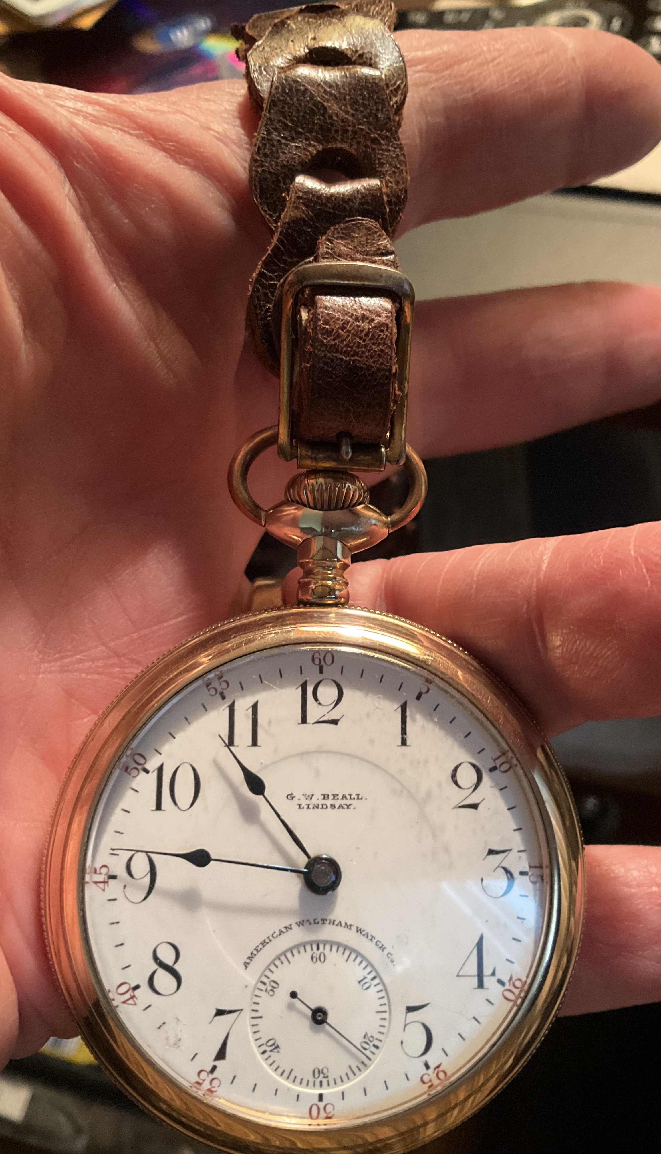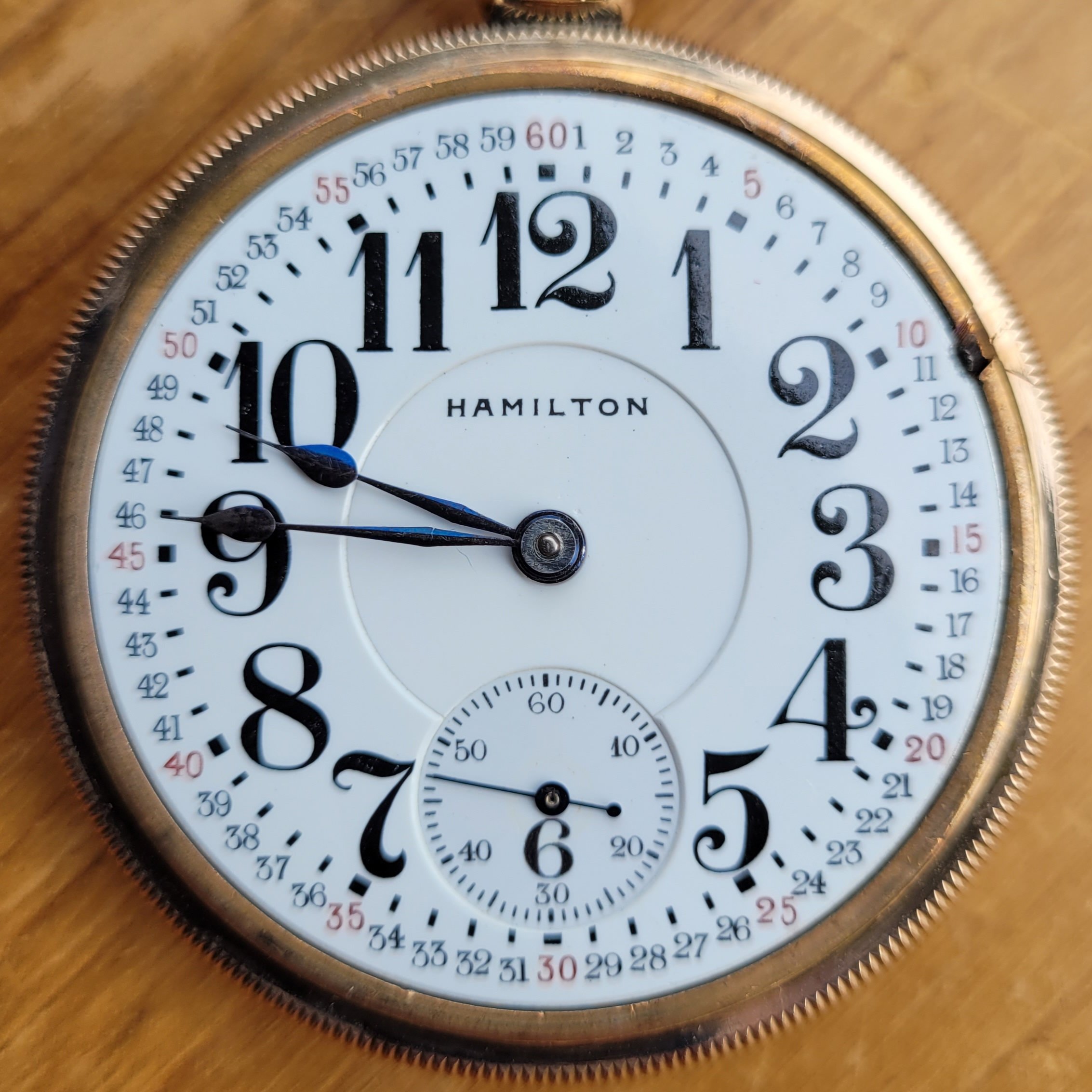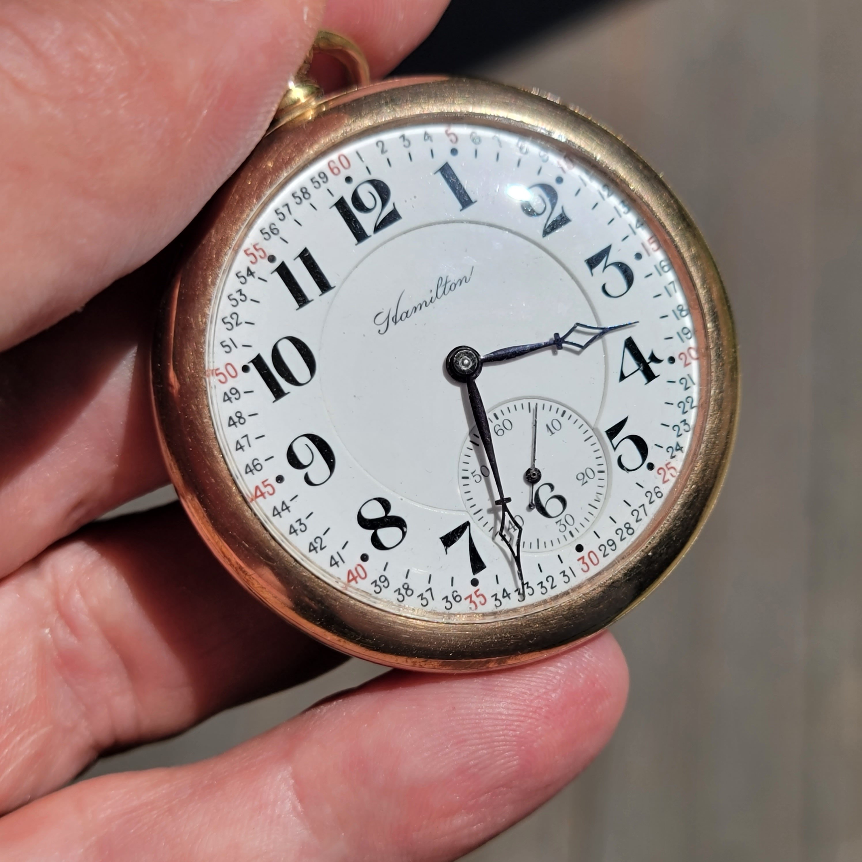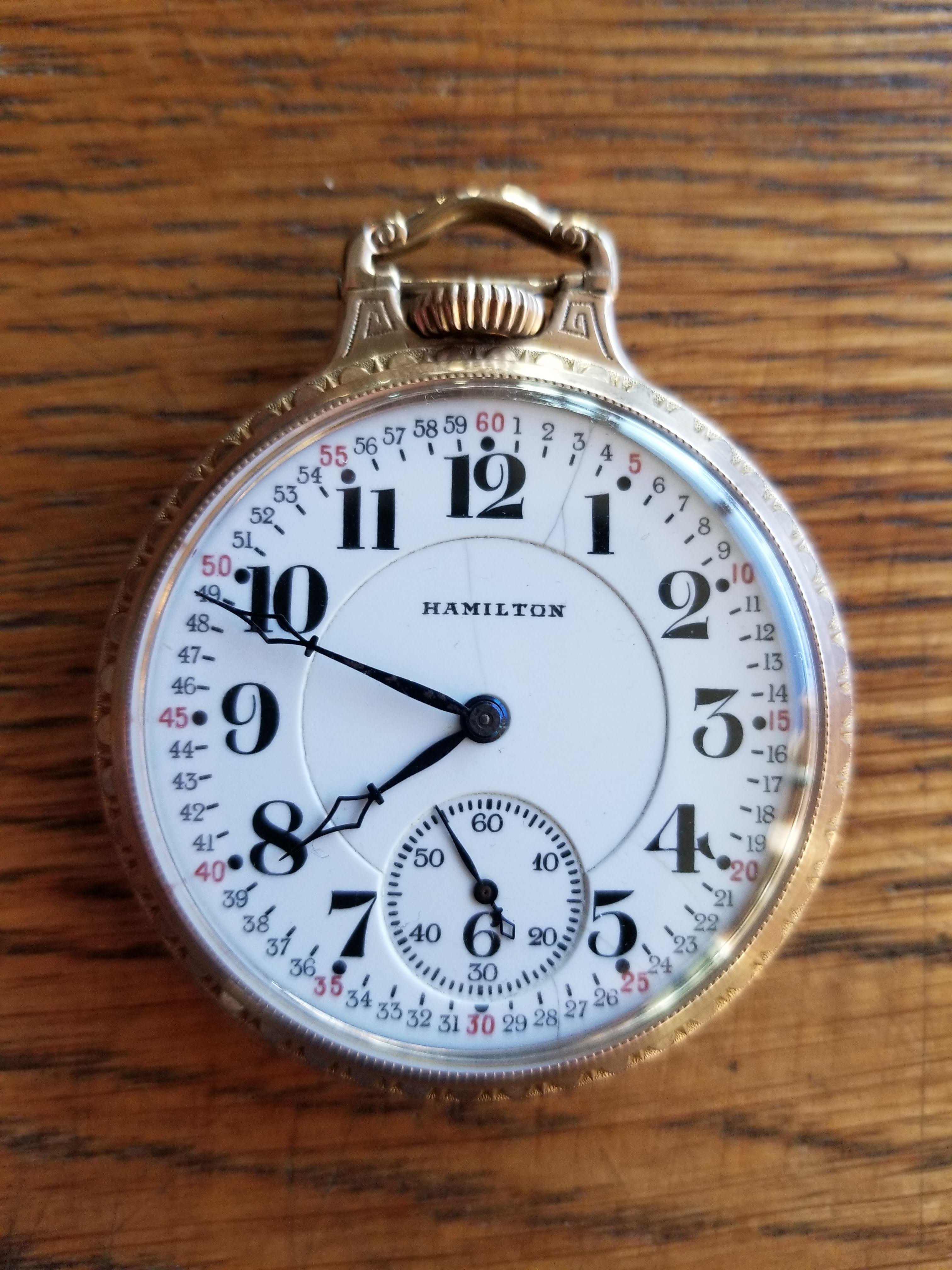 hunter case, one with a cover on both the front of the case, and the back. I think I see a mark on the flange on the inner lip of the case, around the movement, that indicates an alien case screw mark from a previous tenant. The colour of the case has a pink tone which is characteristic of a lot of English made cases.