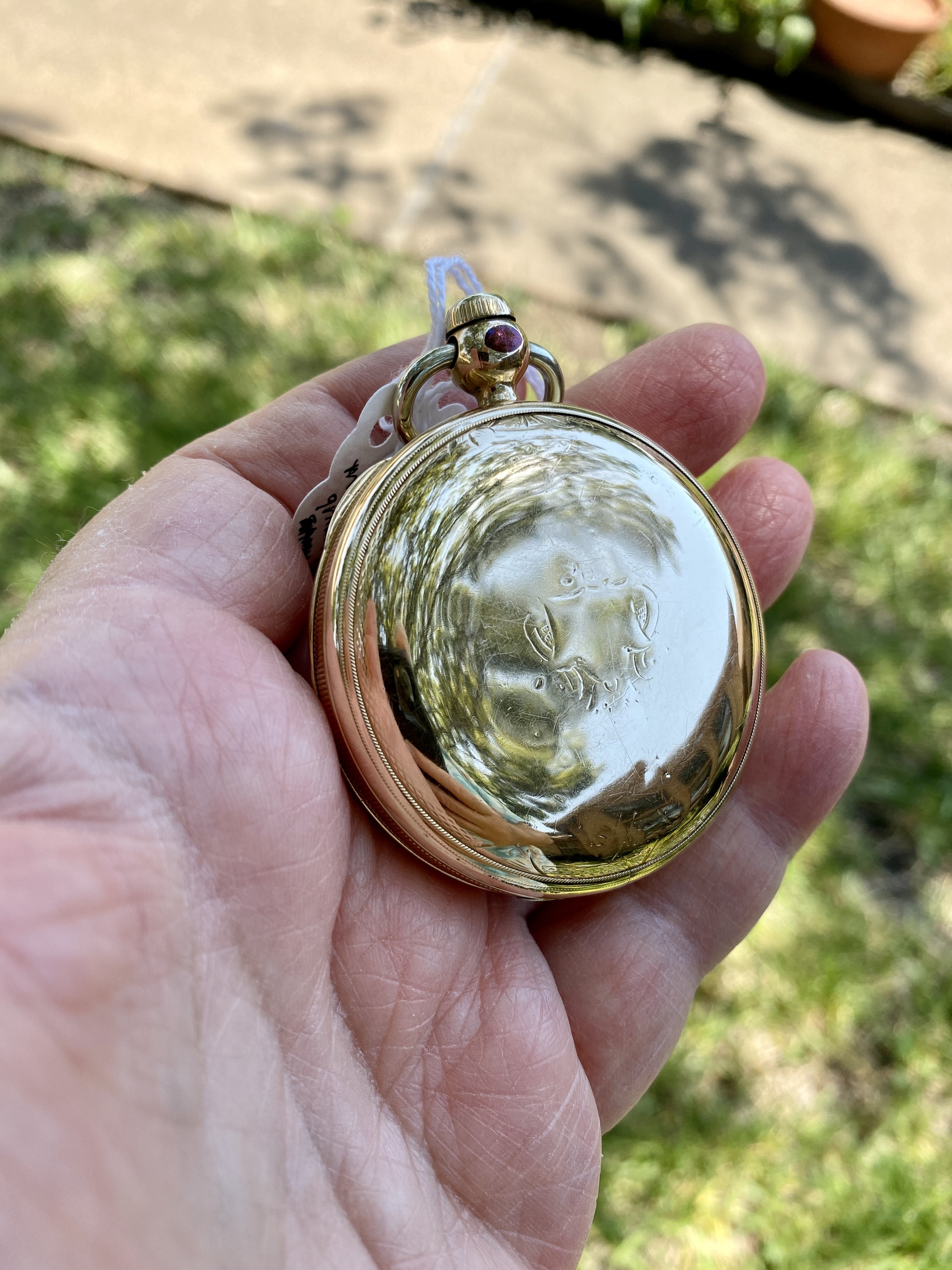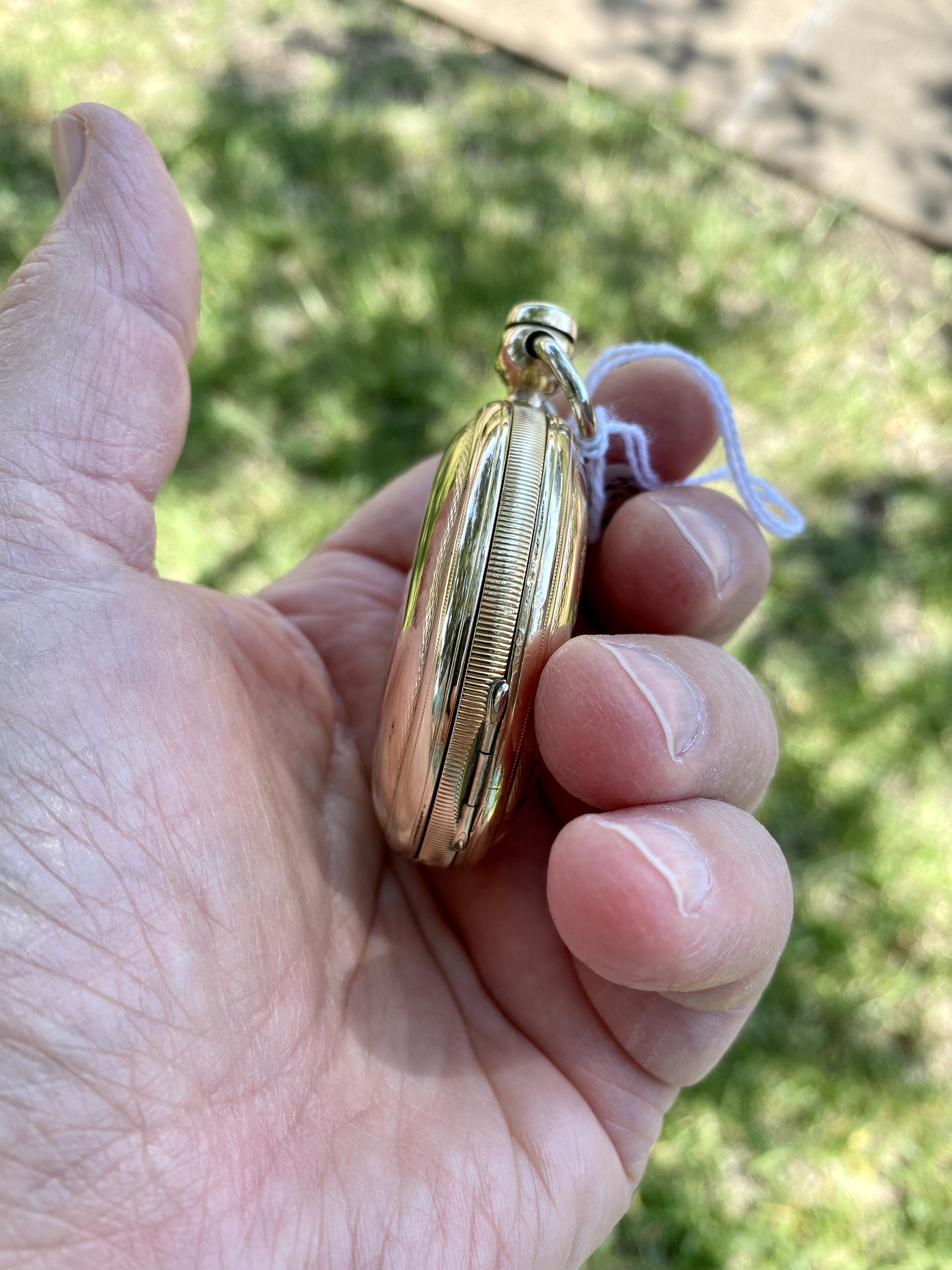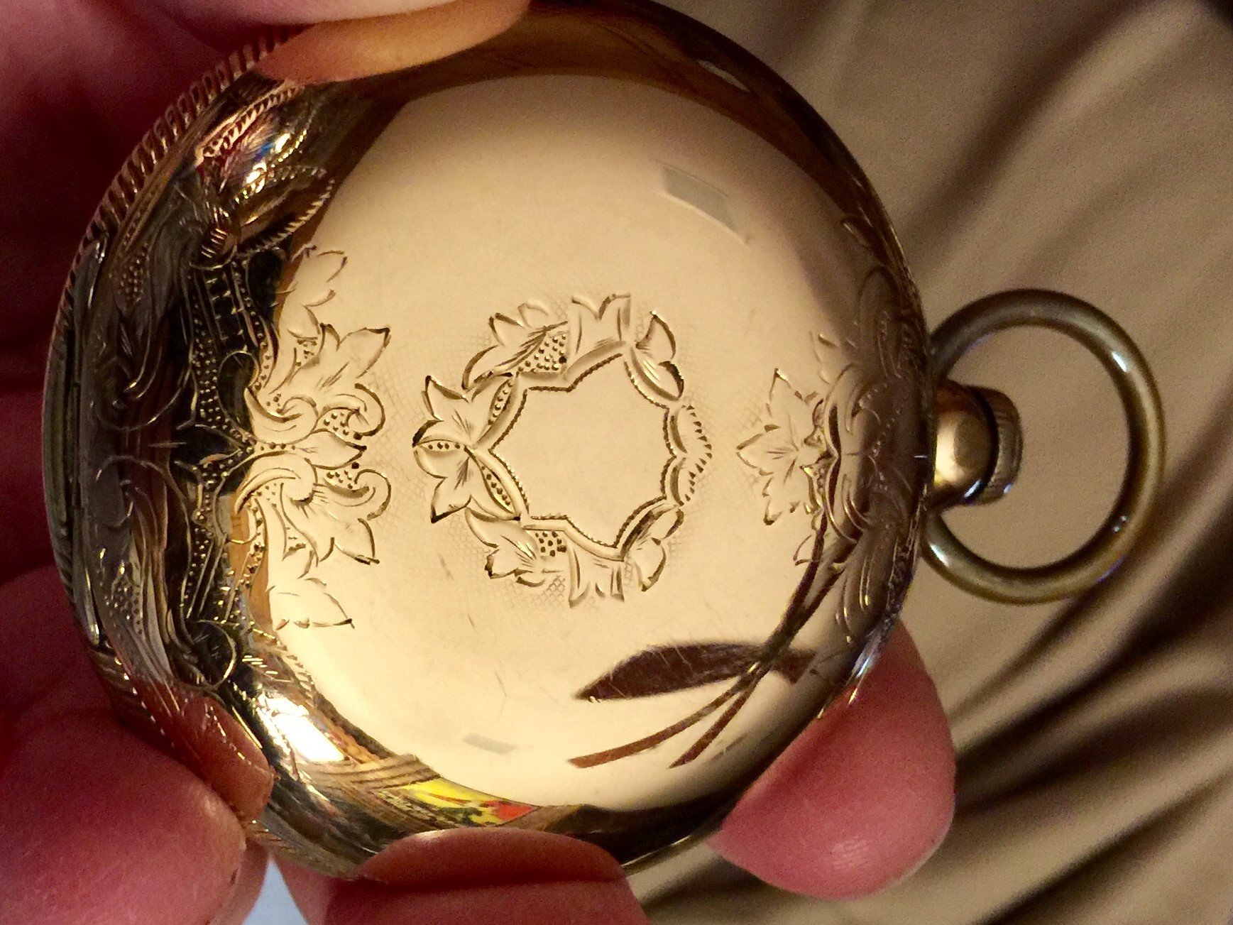 Since you posted the pocketwatchdatabase info on your watch, it confirms that the movement is an 1888 model, made for a hunter case (not an open faced case). If I am correct about this being an English case (with an American movement), this was done to beat English import duties at the time.