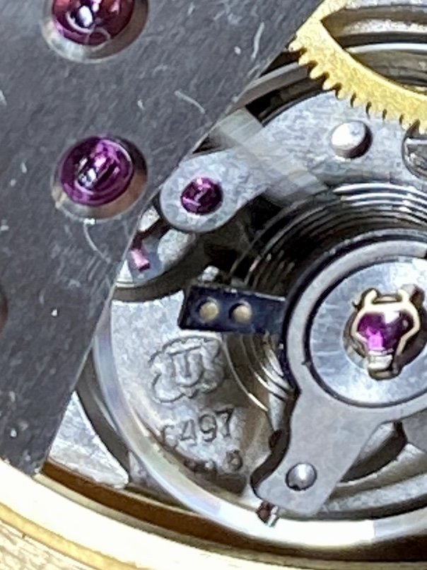 Unitas 6497 movt, 17j, pendant set, robust, reliable and an easy service….been around forever as a pw movement and many years as a Wrist watch, Panerai OP series being one( very modified).