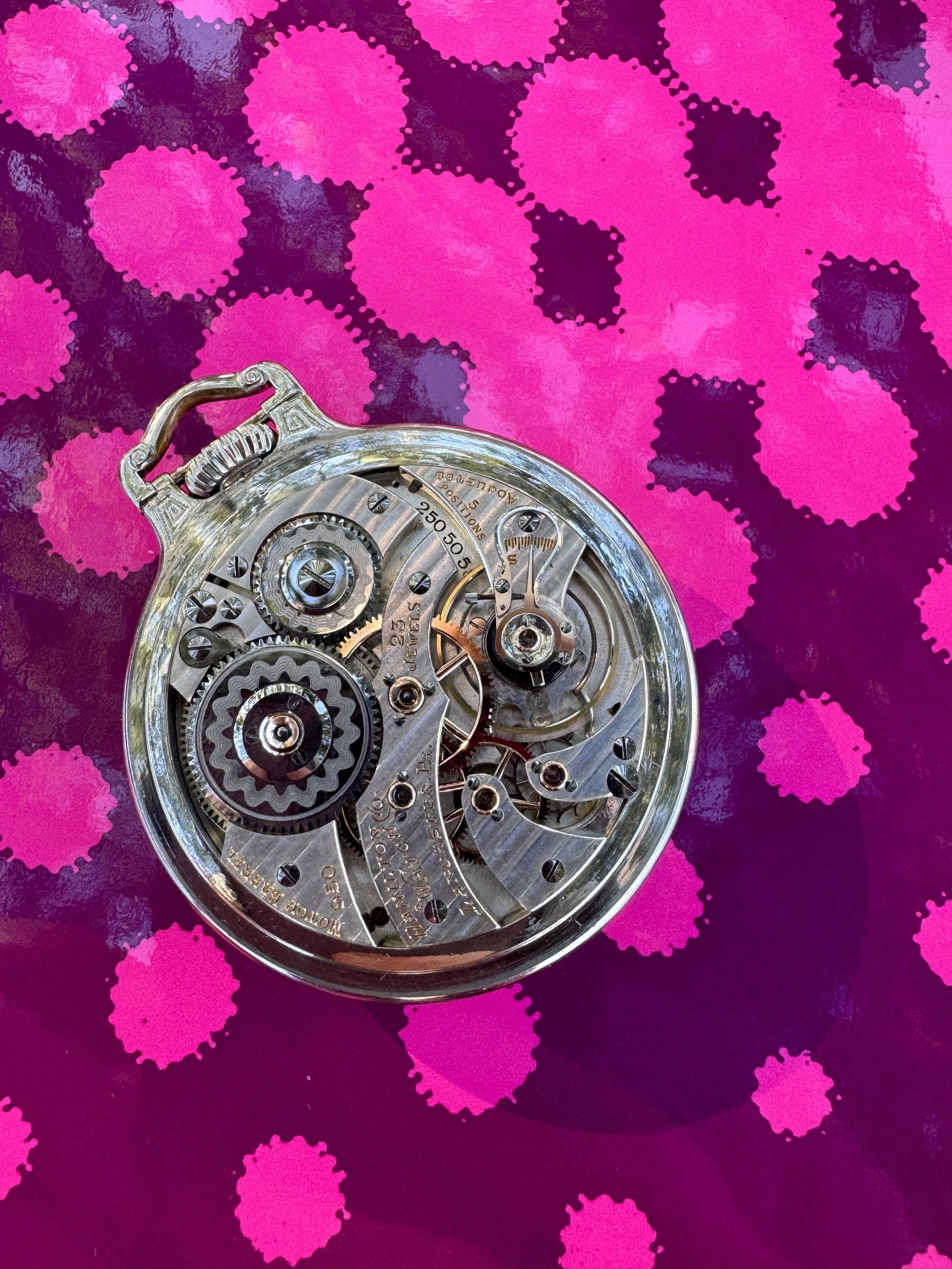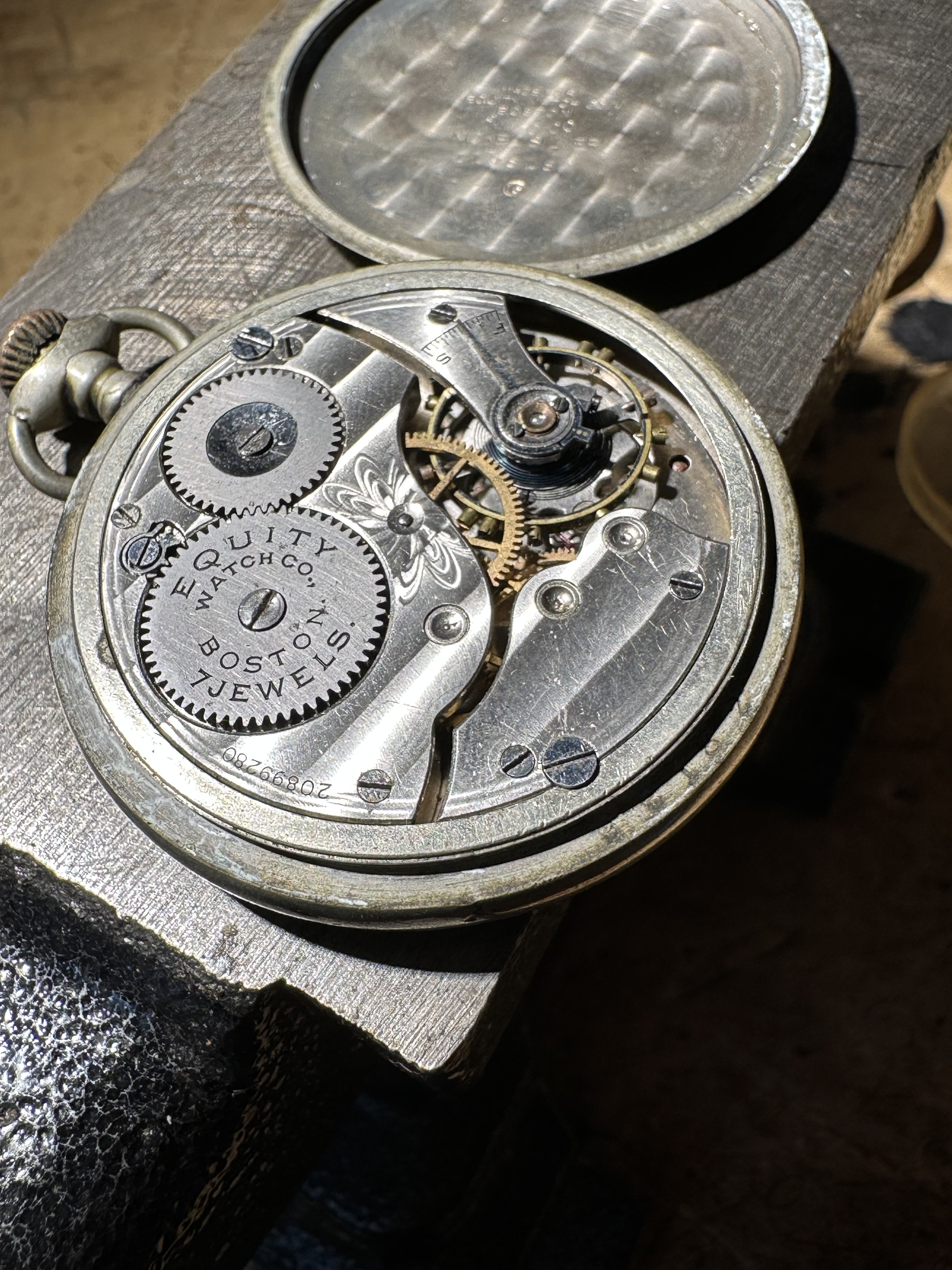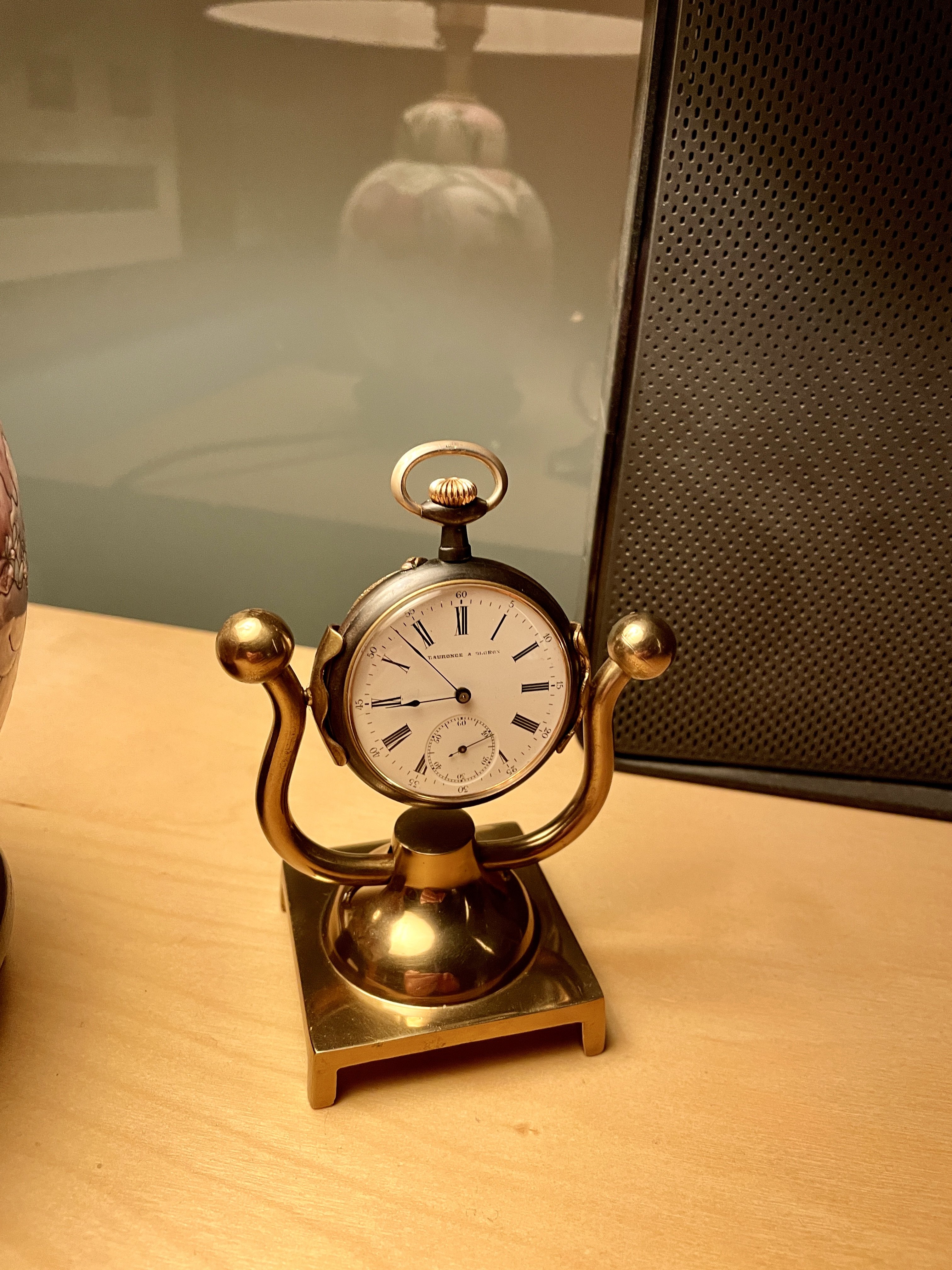 Previous owner wanted to see/show this absolutely gorgeous movement so had a custom display manufactured.