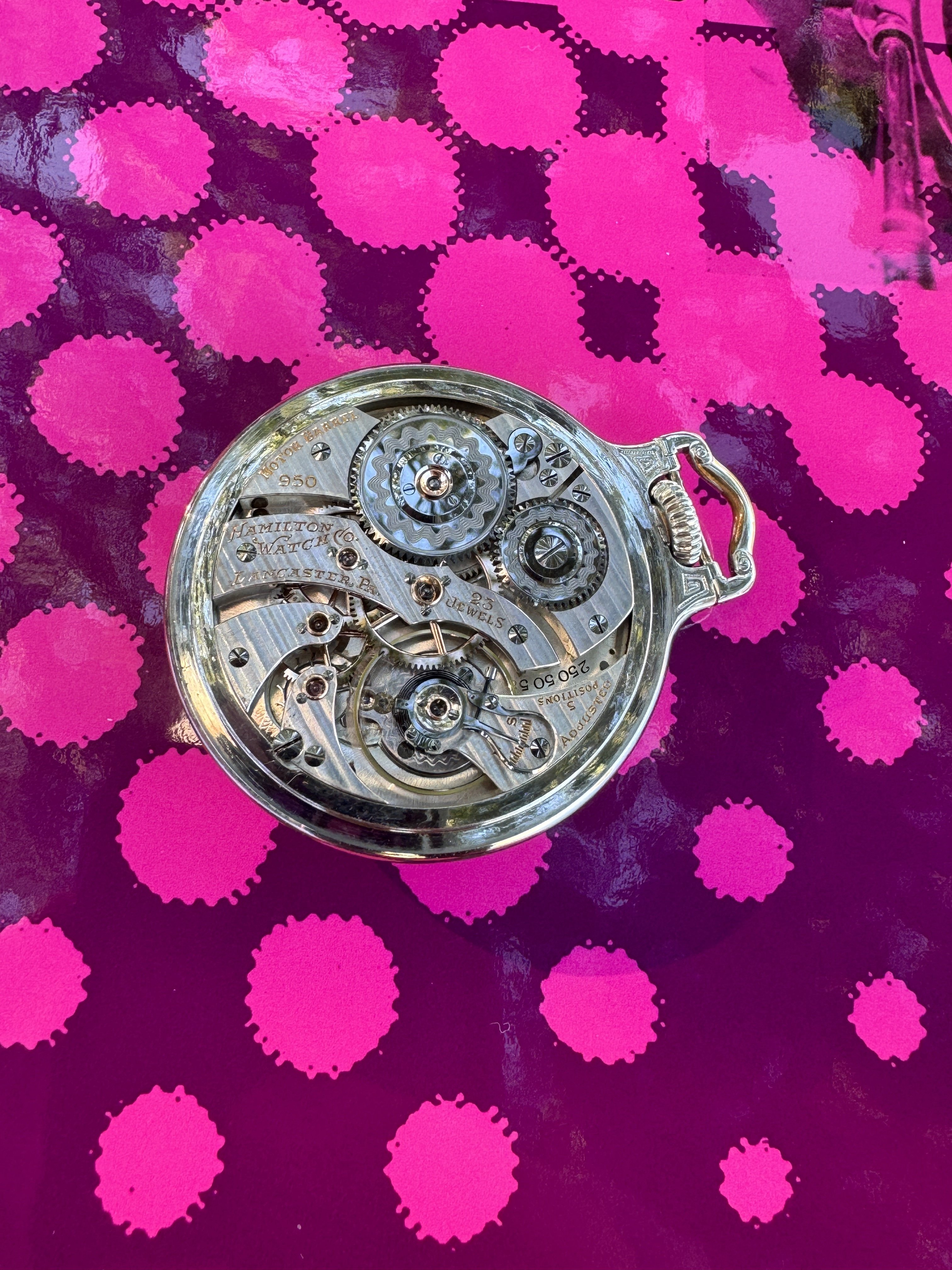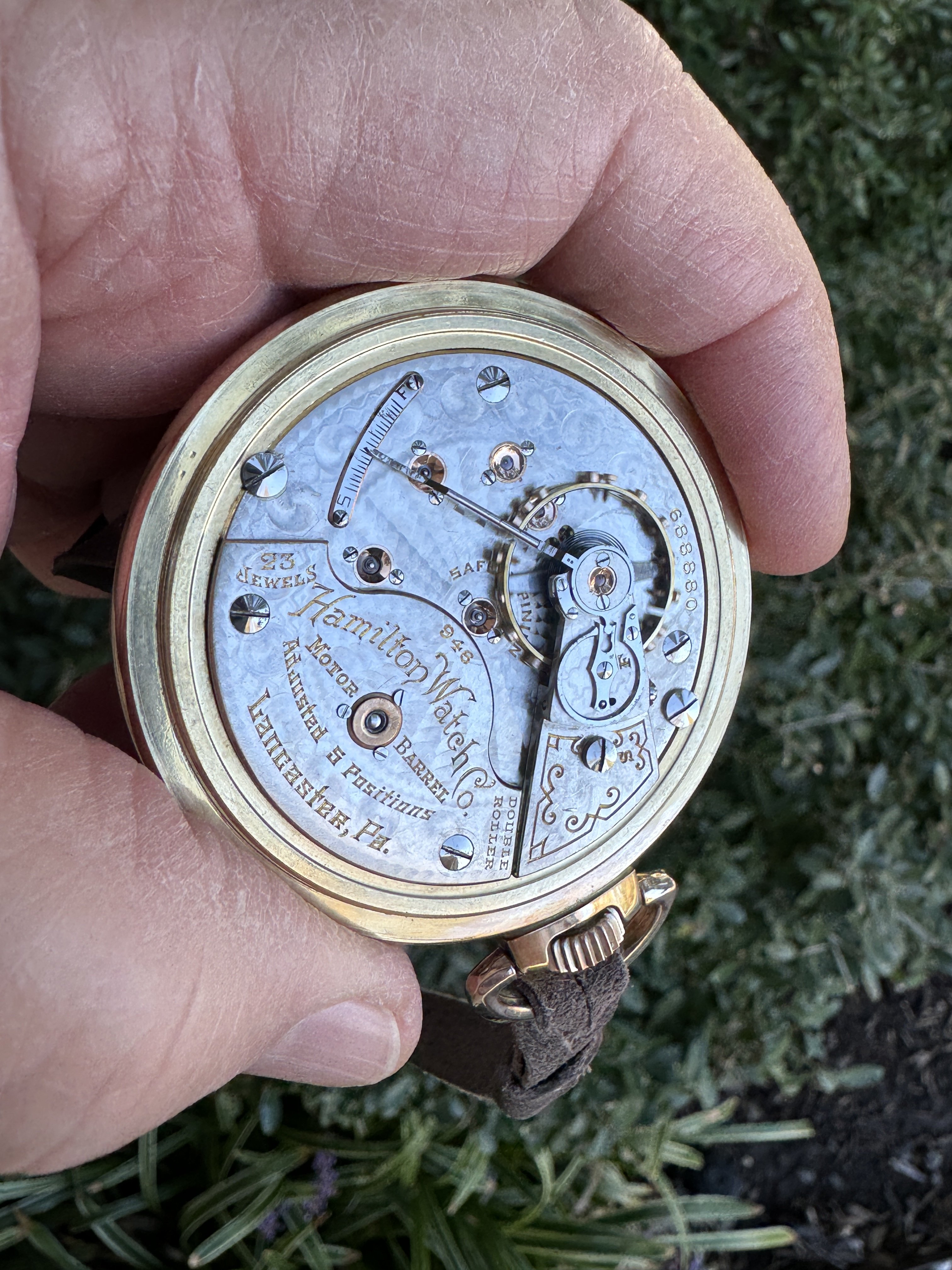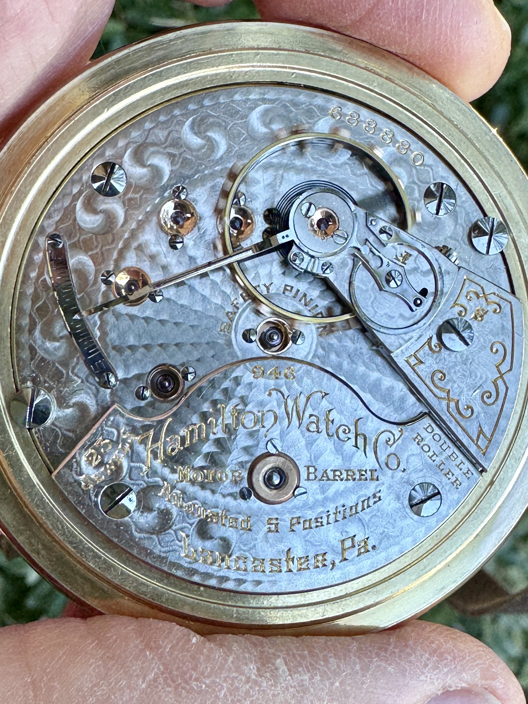 Previous owner wanted to see/show this absolutely gorgeous movement so had a custom display manufactured.