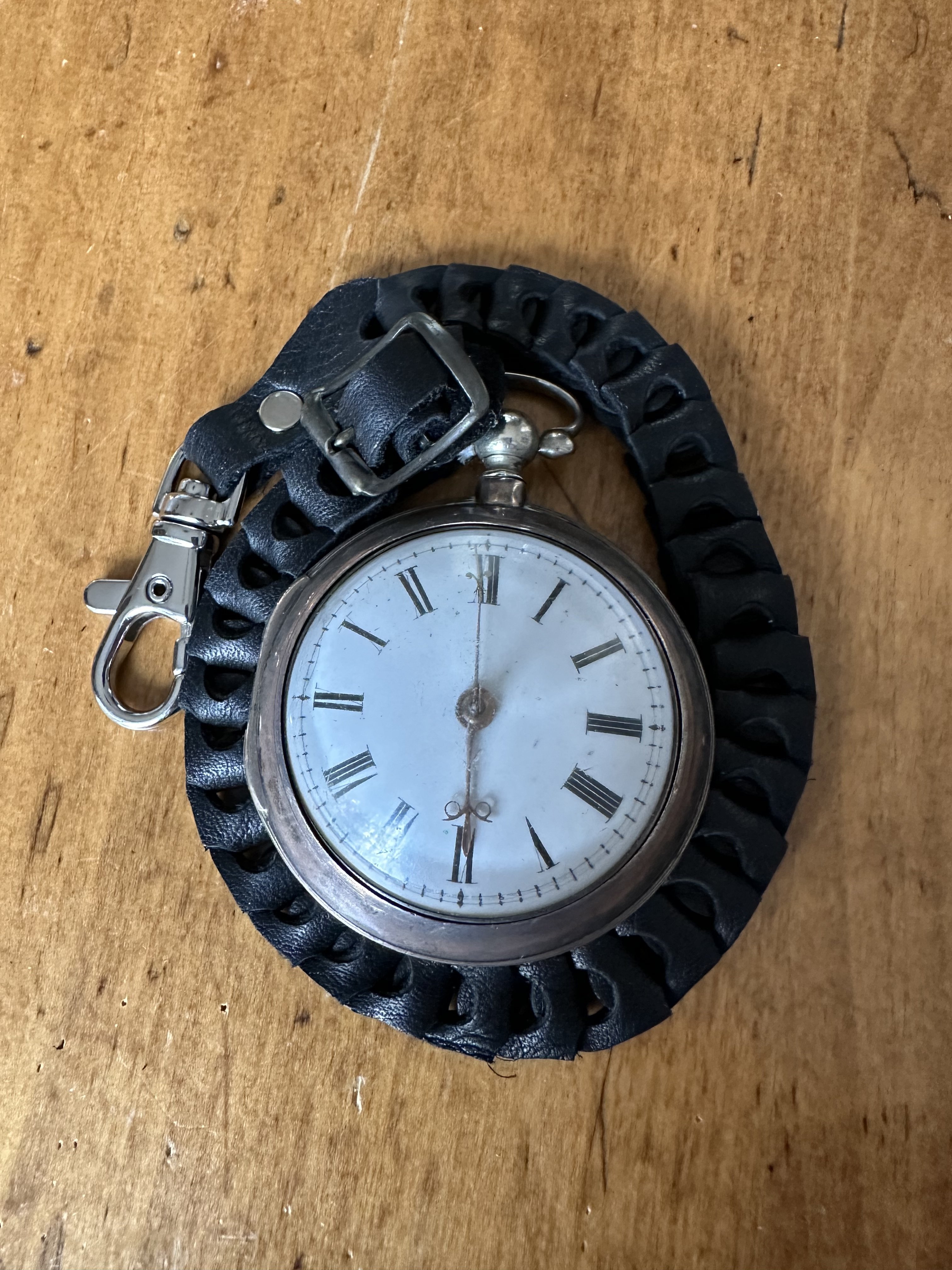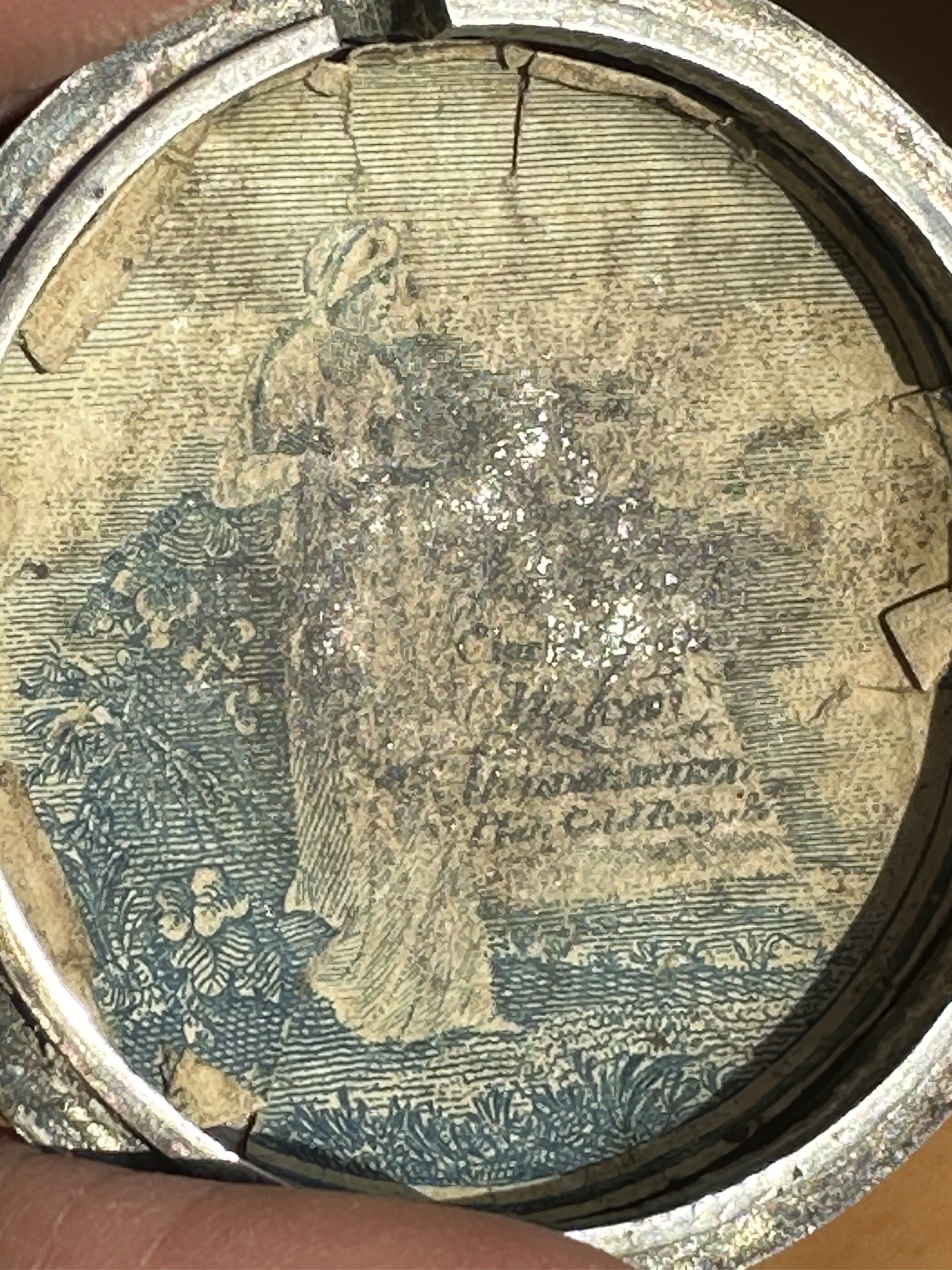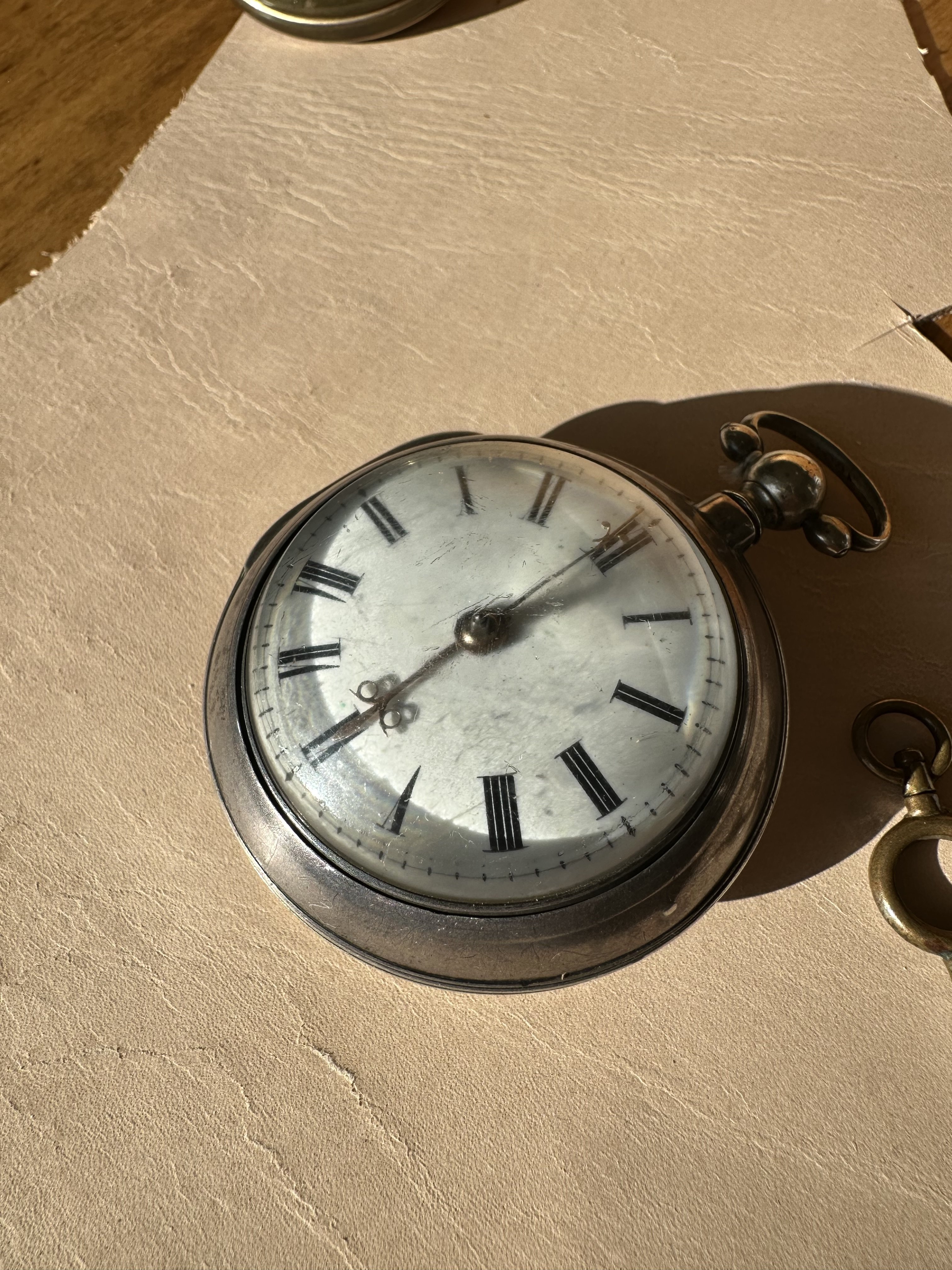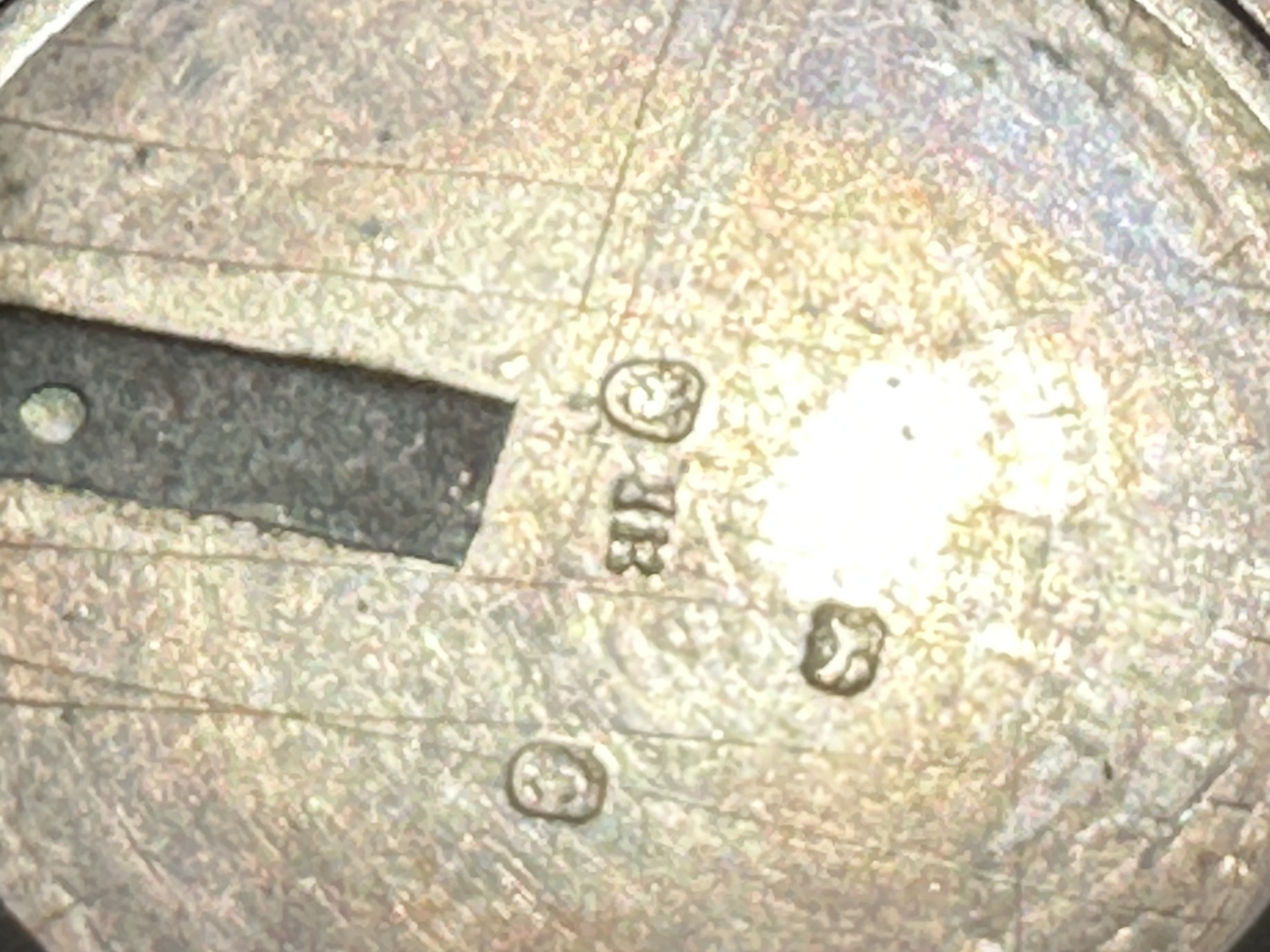 The hallmark is London, the date letter C in that cartouche appears to be 1798-99. What appears to be the case maker’s mark (IB or IH, incuse) could be any one of about half a dozen case makers. If it is IH incuse, it could be John Hadley, 10 St. James Buildings, Rosomans Row (London?), reg’d 1789. If it is IB incuse, it could be John Bullocke, 40 Ironmonger Row, Old St. (London?), reg’d 1782. My initial guess of circa 1734, based on the Baillie listing for this watchmaker, was way early. But English maker’s names were often used for decades after the death of the scion, as these businesses often remained in the family. Unfortunately, the case maker’s stamp is not well defined. Thanks to Steve for daring to remove the case papers. These papers alone, often tell a story.