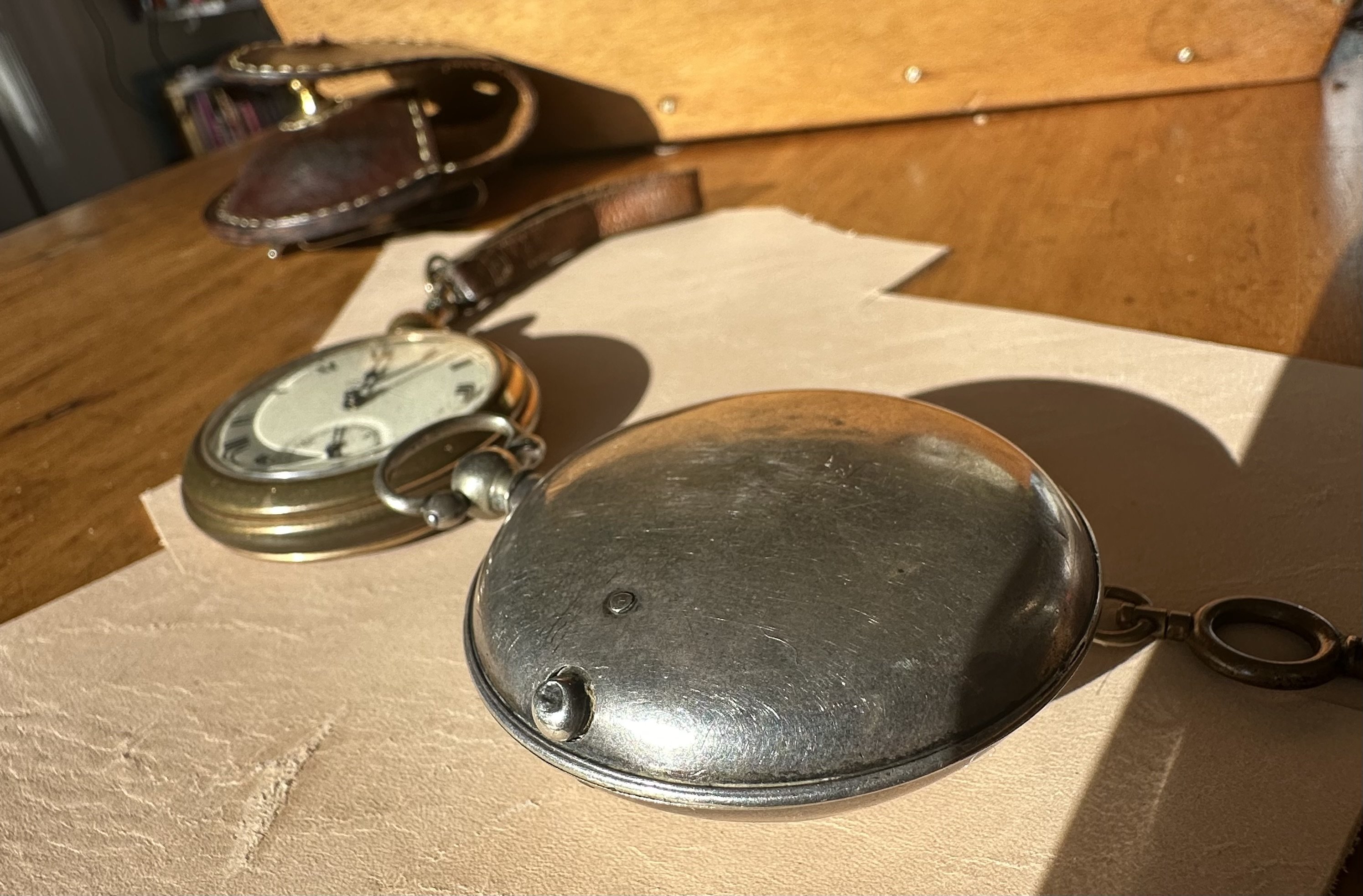 Have a look. My Smiths is only to show how thick the old one is. The watch reminds me of this movie… I should have perhaps taken shots of the inner and outer cases side by side. In my photos above the inner case has the key hole.