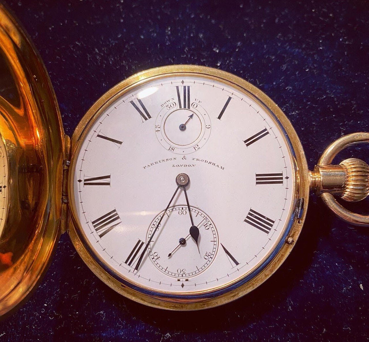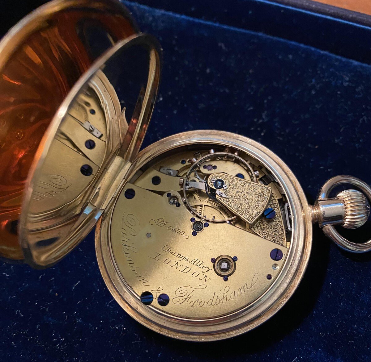 I am awaiting to get my newest purchase, a Parkinson & Frodsham chronometer, freesprung, duo-in uno hairspring, fusee with keyless winding, and up/down subdial. 😀