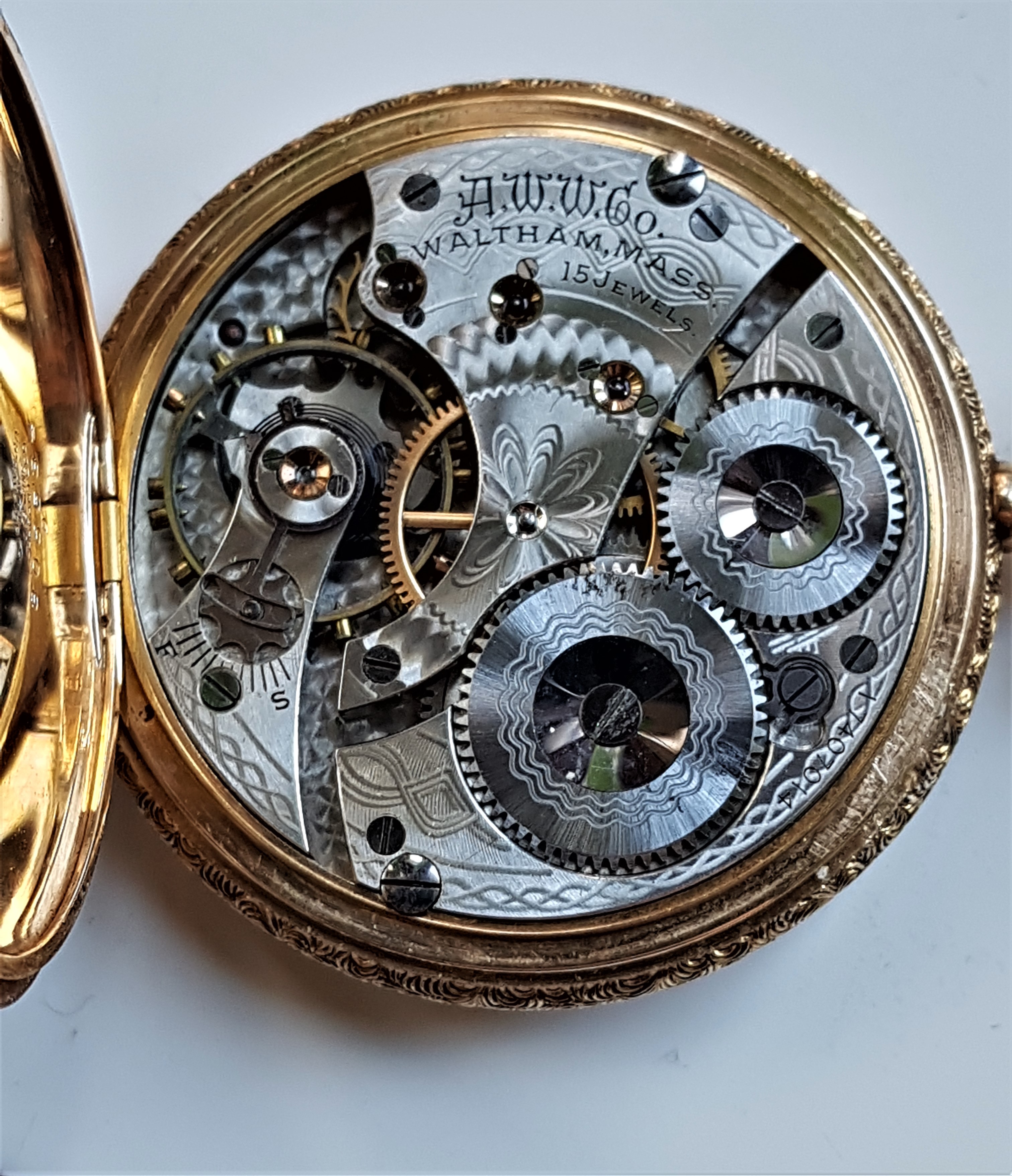 This I think is a fairly nice Waltham, grade 620 from 1908. Picked up at an auction so there is no great story to it. But I like it a lot.