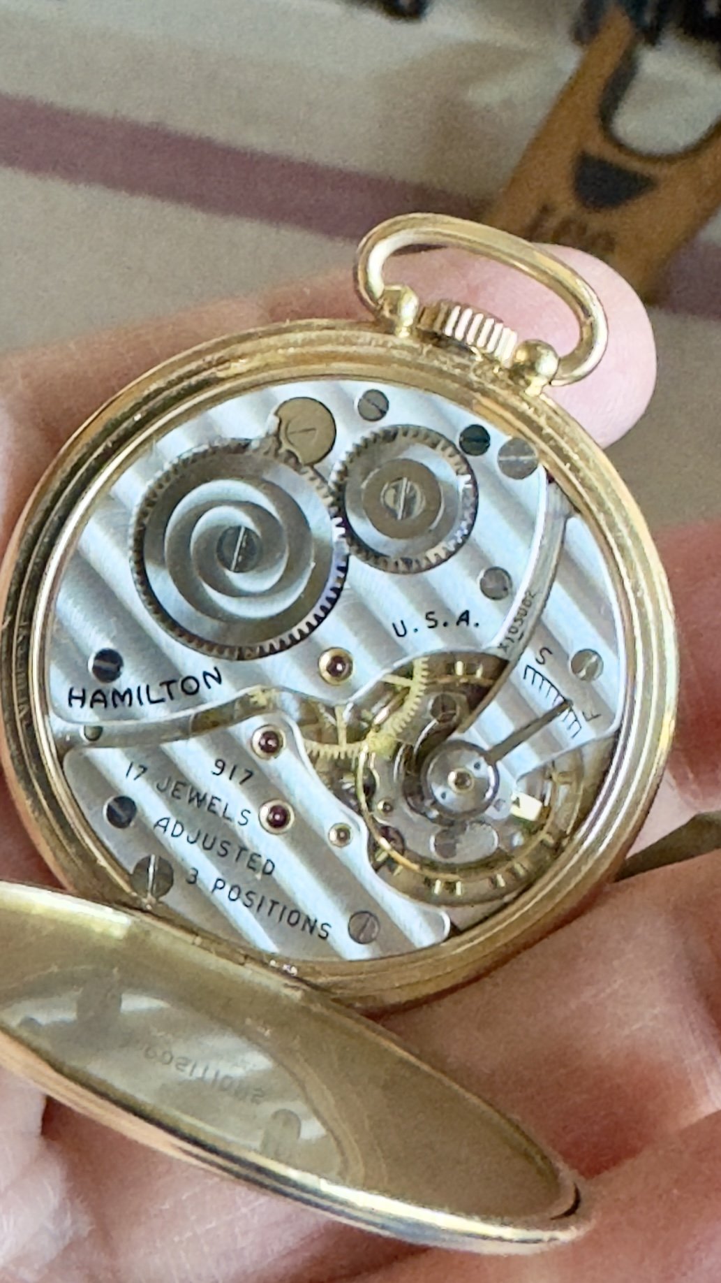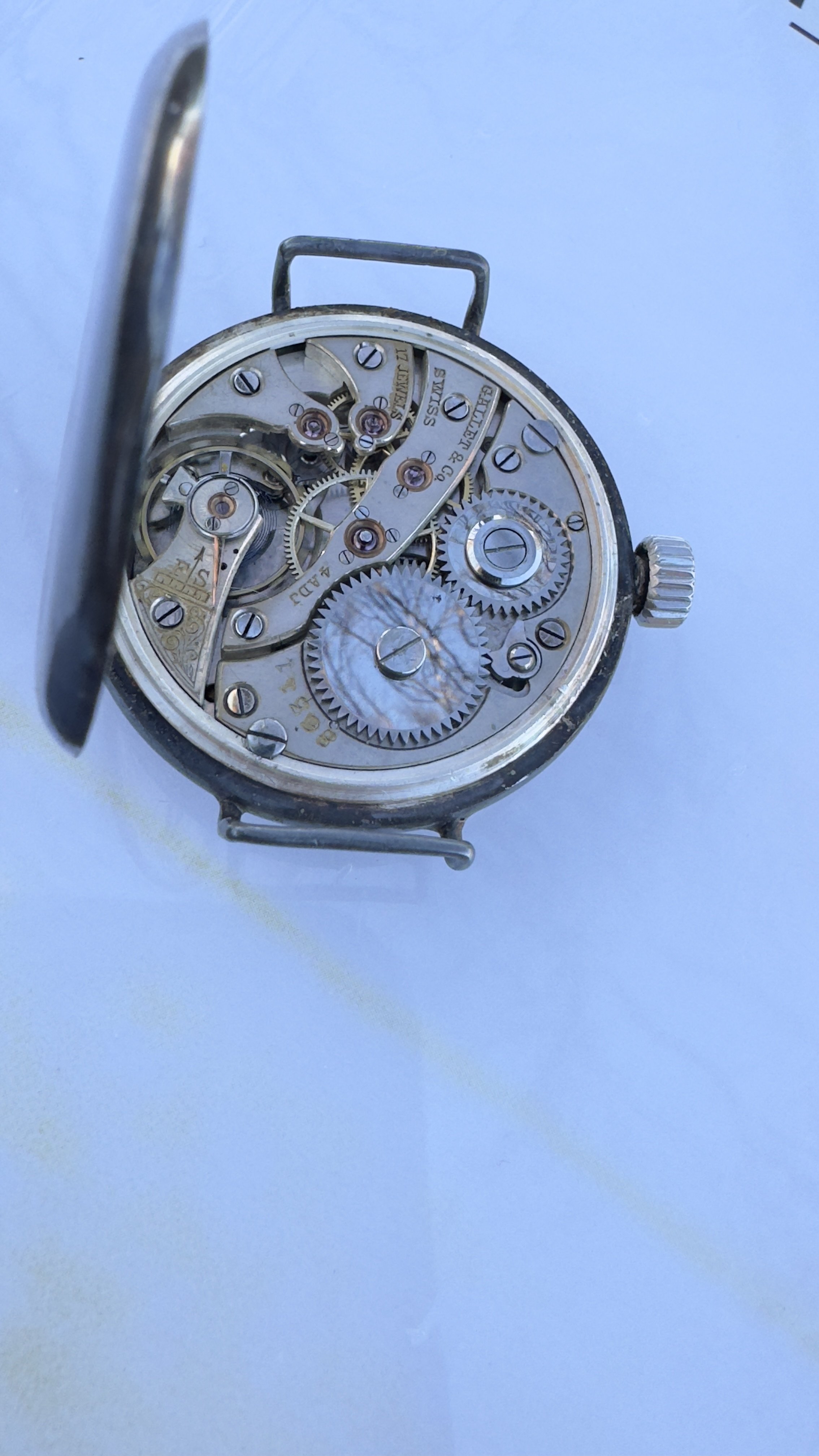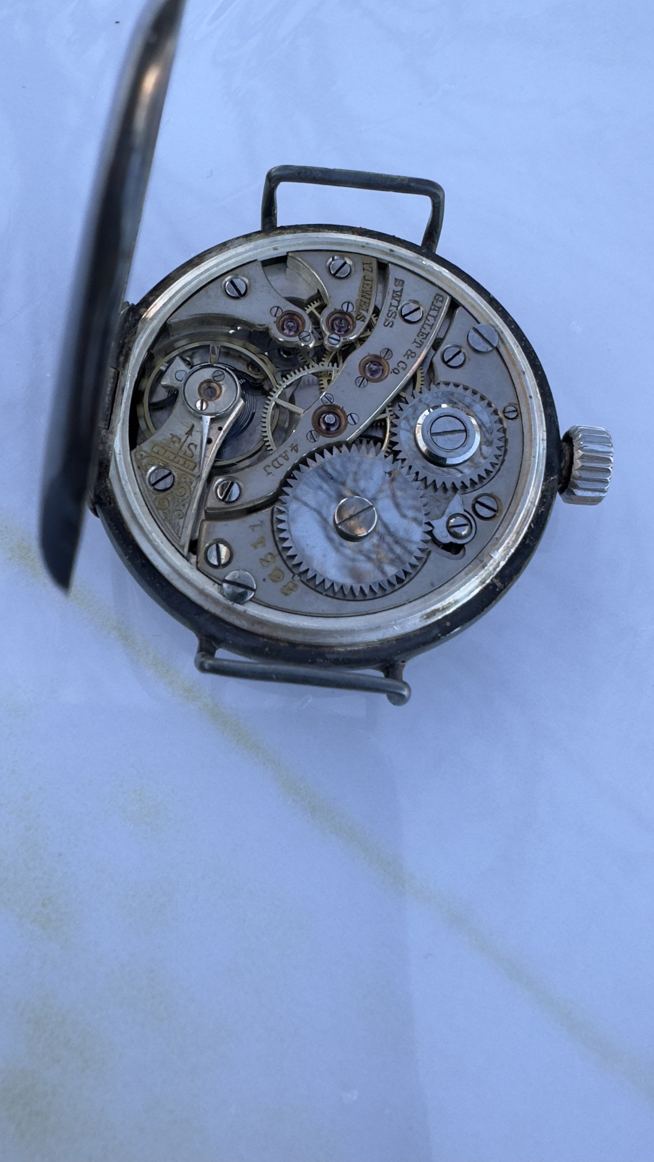 The surface is not smooth, you can feel the grooves with a fingernail (but refrain from trying, you will have to remove any nail debris afterwards again). At some juncture in the future I will attempt to clean the dial center, not really easy. And remove corrosion on the regulator and other parts, the regulator will then have to be blued again. For the time being I will leave it as it is.