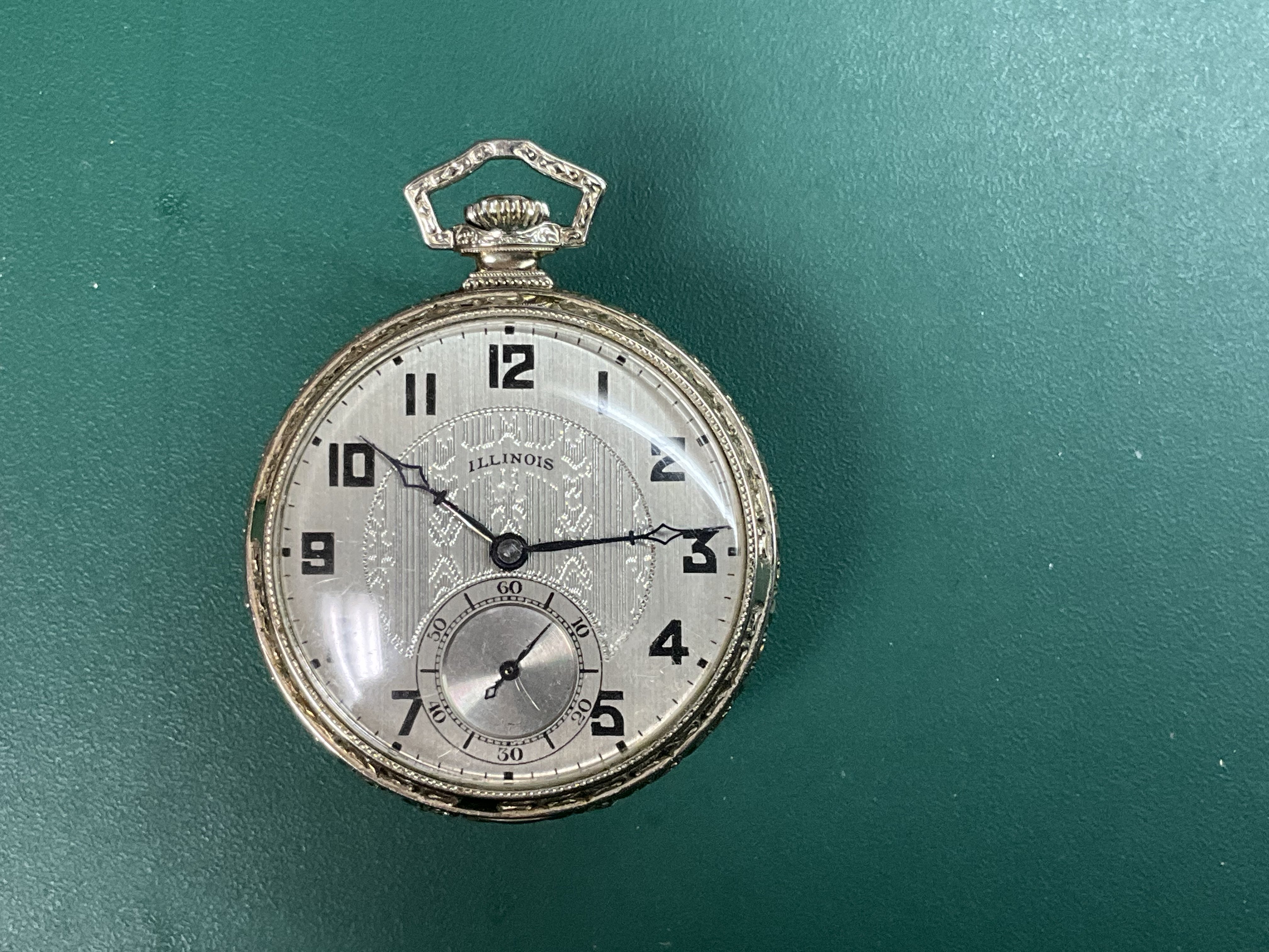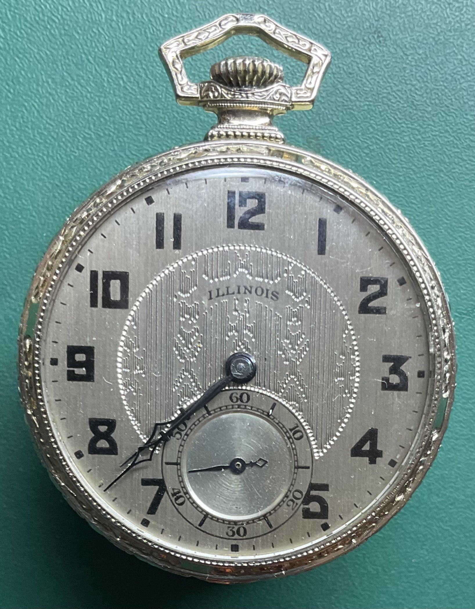 The only watch I have that rivals the two Illinois pocket watches posted by @DaveK and @Duracuir1 is my Elgin “opera” watch from about 95 years ago. This watch has a 6/0 size Elgin wrist watch movement in a 14-karat white gold case. (Aside: This watch is from my wife’s family. A female ”shirt tail” (remote) relative’s husband passed away. The watch was to be buried with him. The mortuary removed it from his pocket after the funeral. After he was buried, the mortuary returned it to the widow! She was furious!)