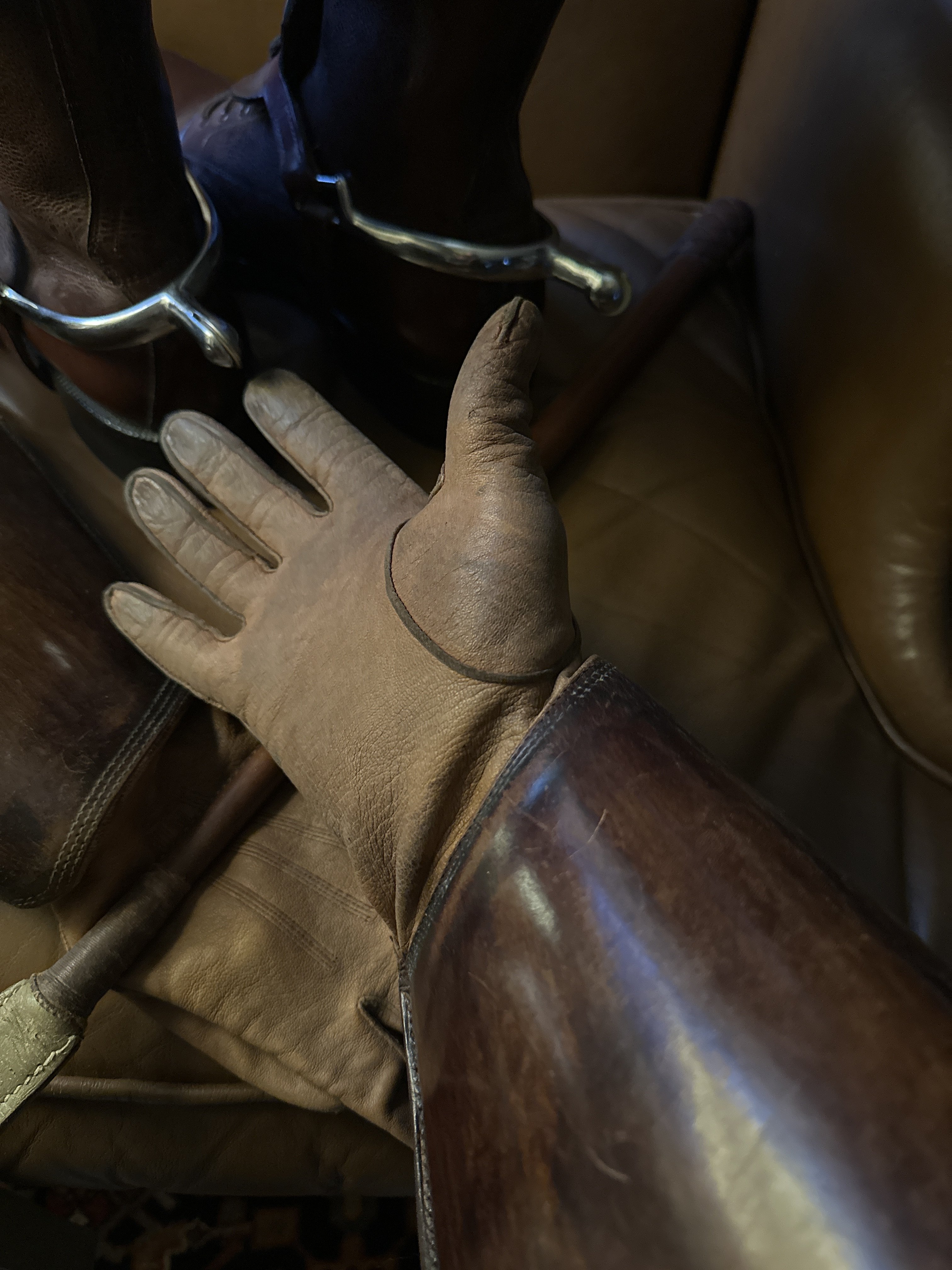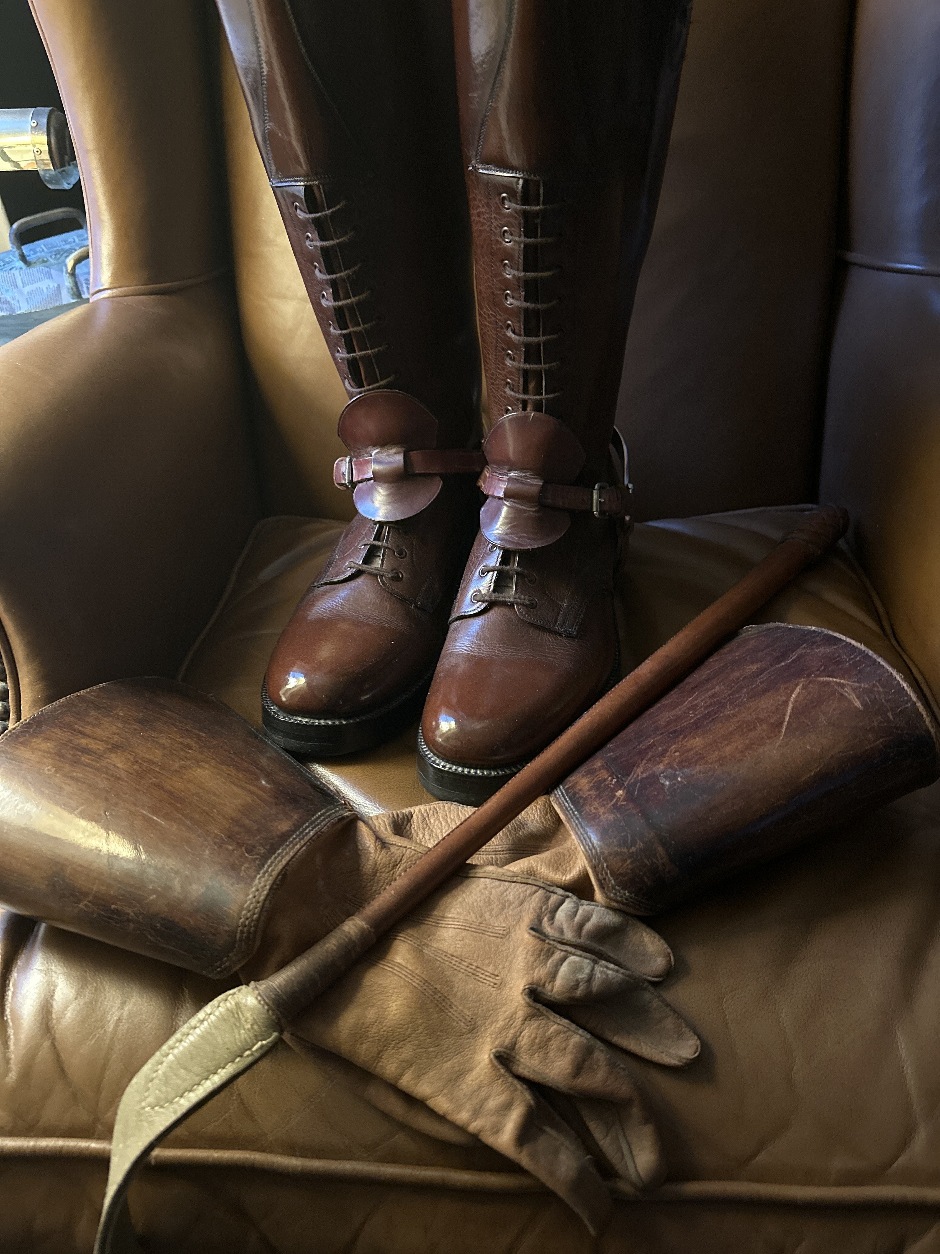 The riding crop was issued to my dad in 1962, along with the long shank spurs. The boots were issued to me in 1989. The leather was pebbled and I had to iron them before polishing. The drill instructor had us run 2 or 3 miles in these during the summer.