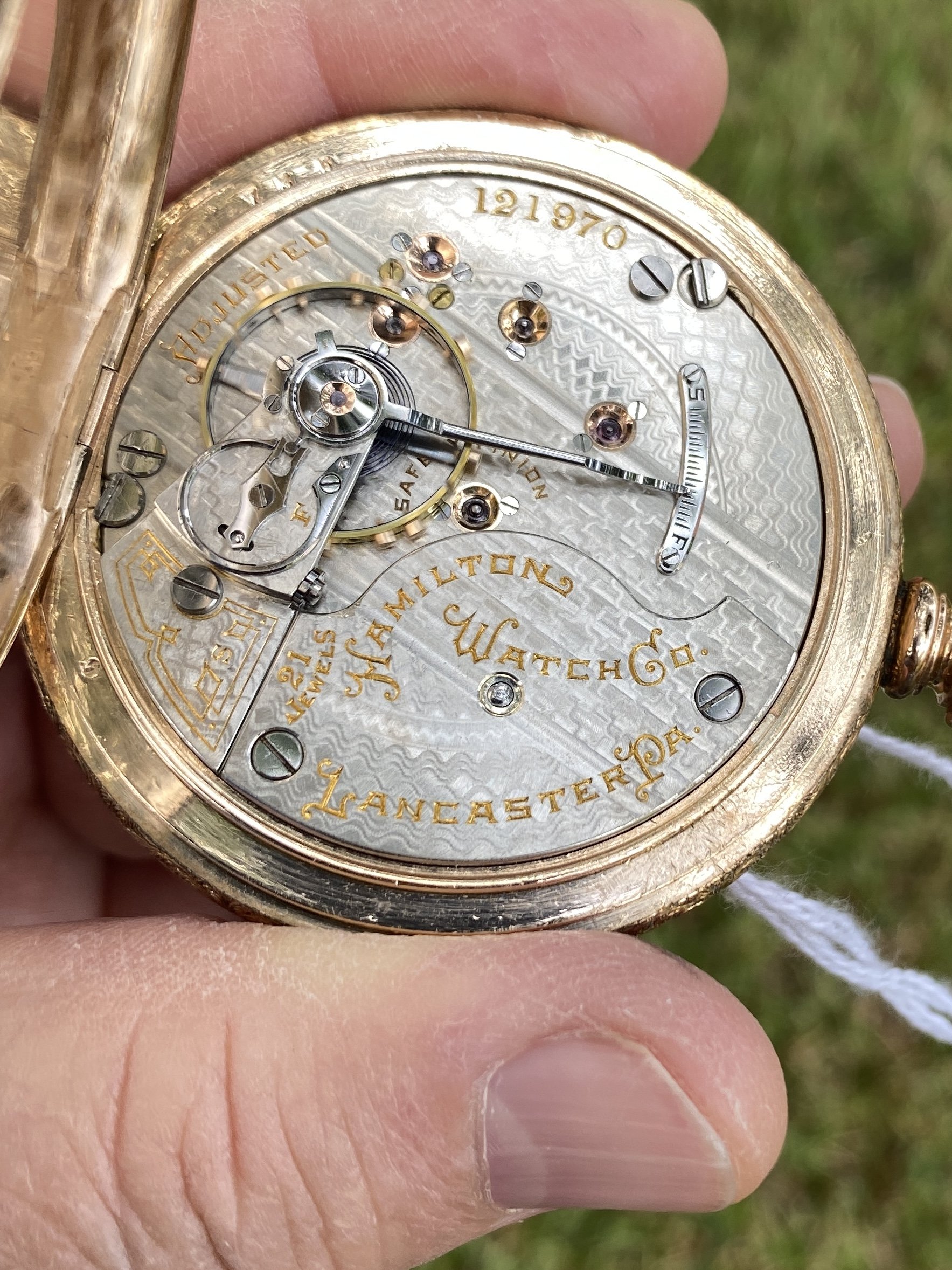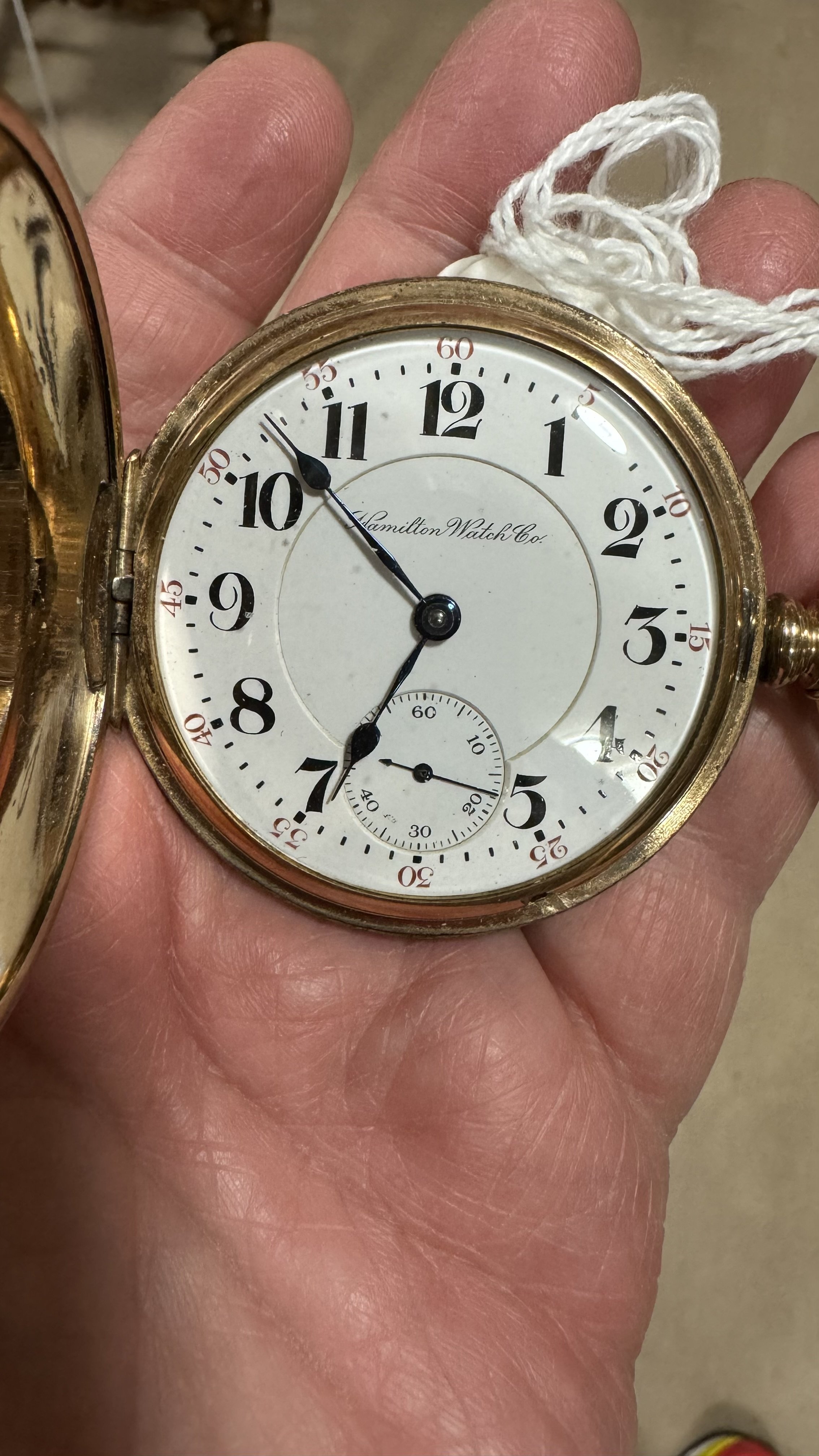 My first pocket watch is one I inherited from my late father, 45 years ago. He was a watchmaker, and while he was not a railroad watch inspector, he had a large clientele among the local railroad engineers, conductors, firemen, and on and on. This was the watch he used as a bench chronometer. It is a Hamilton grade 992.