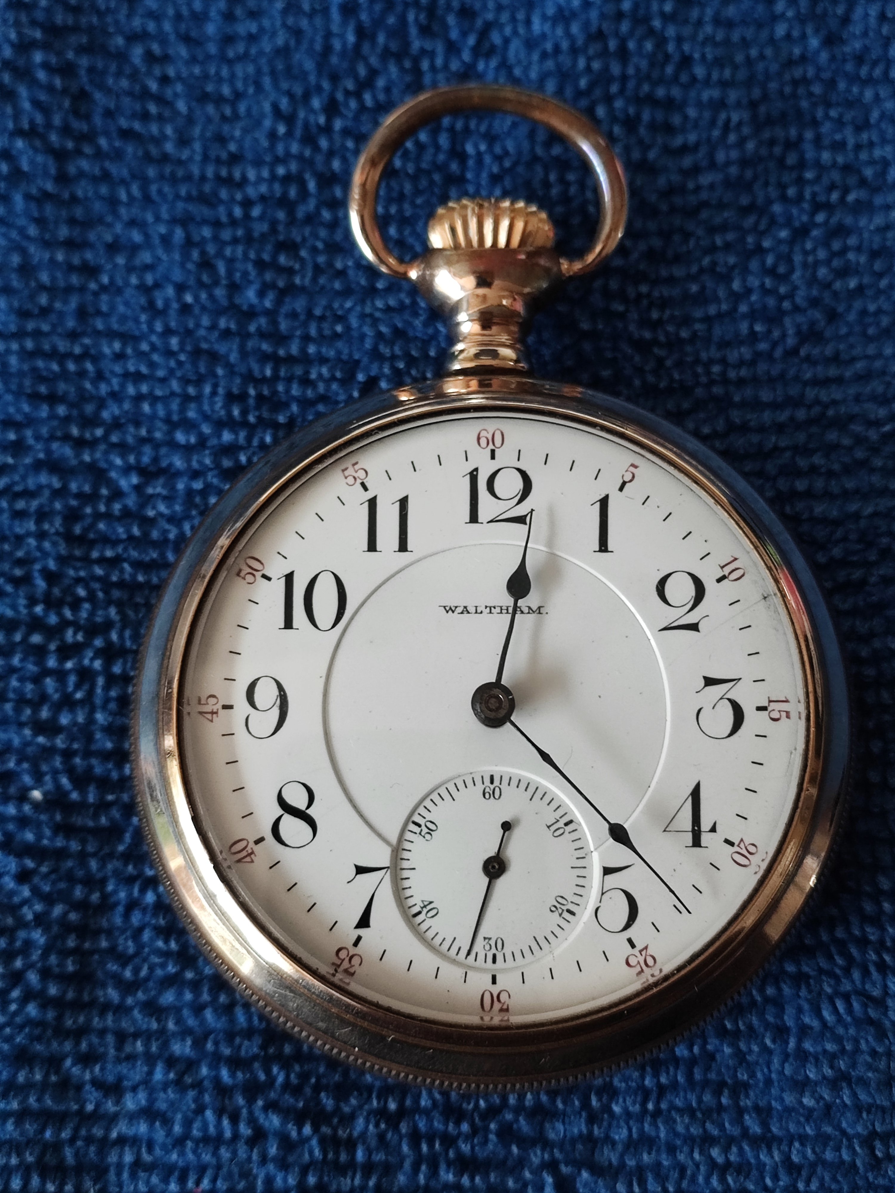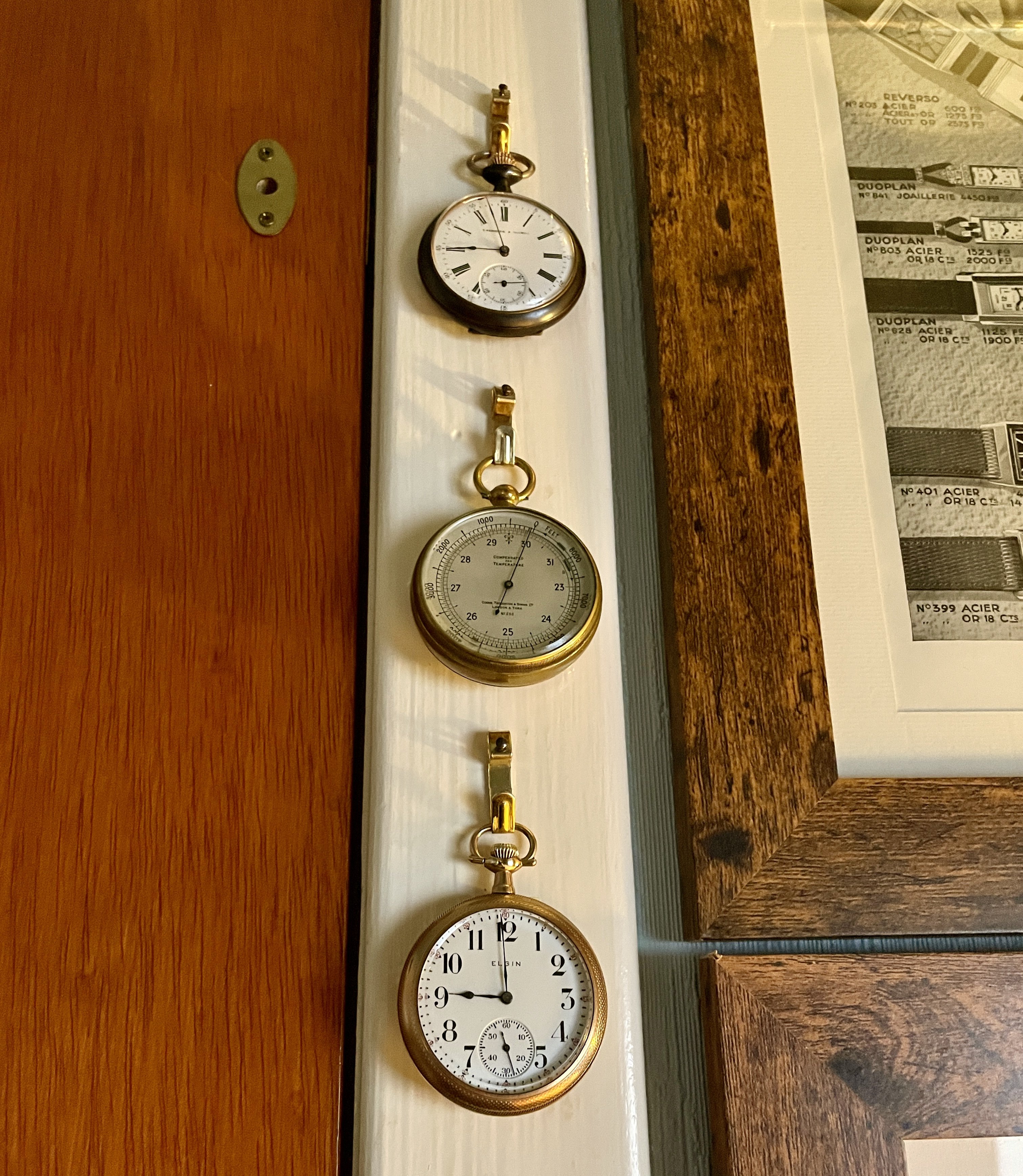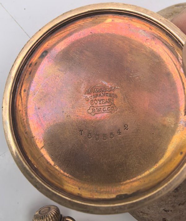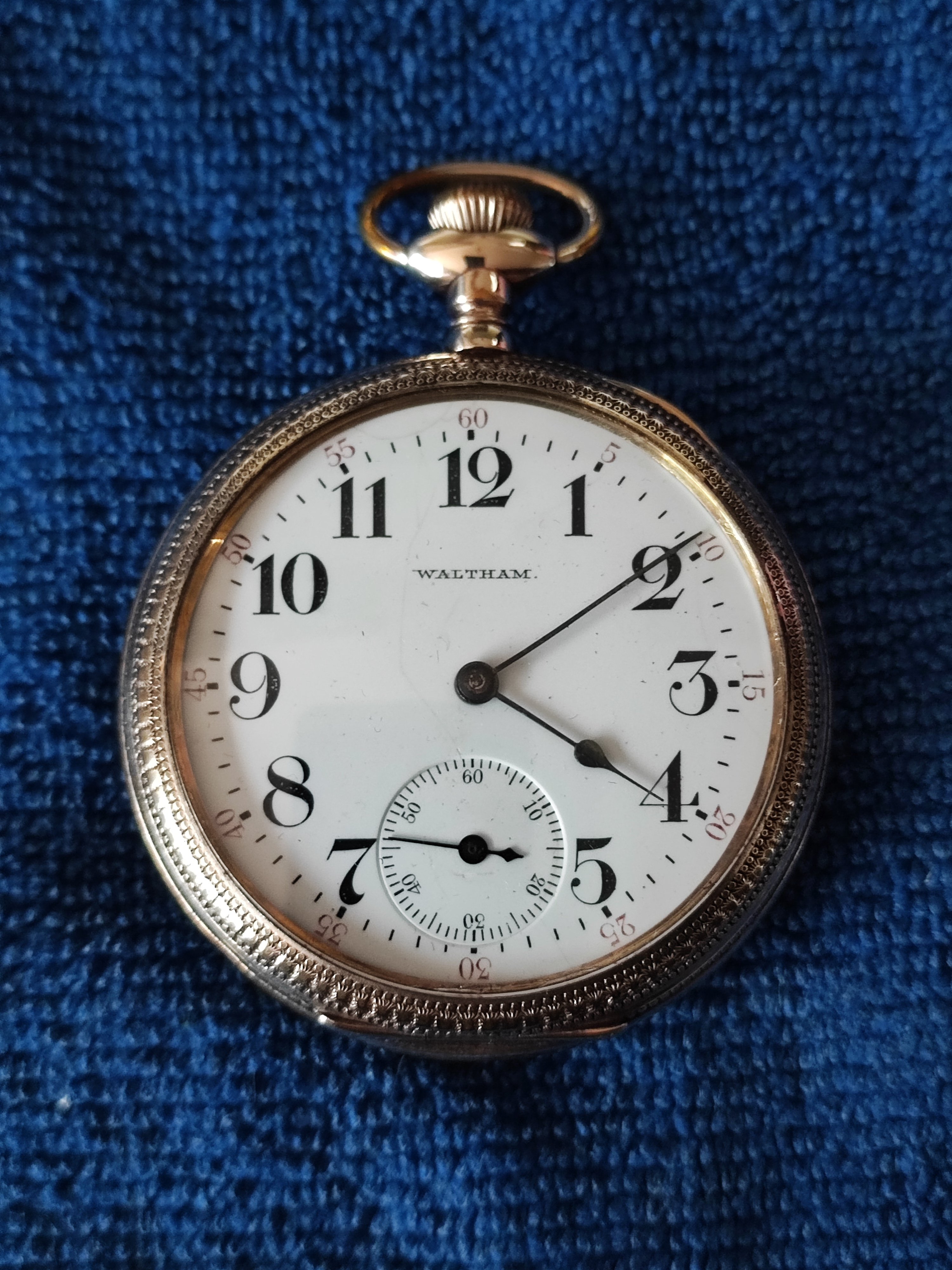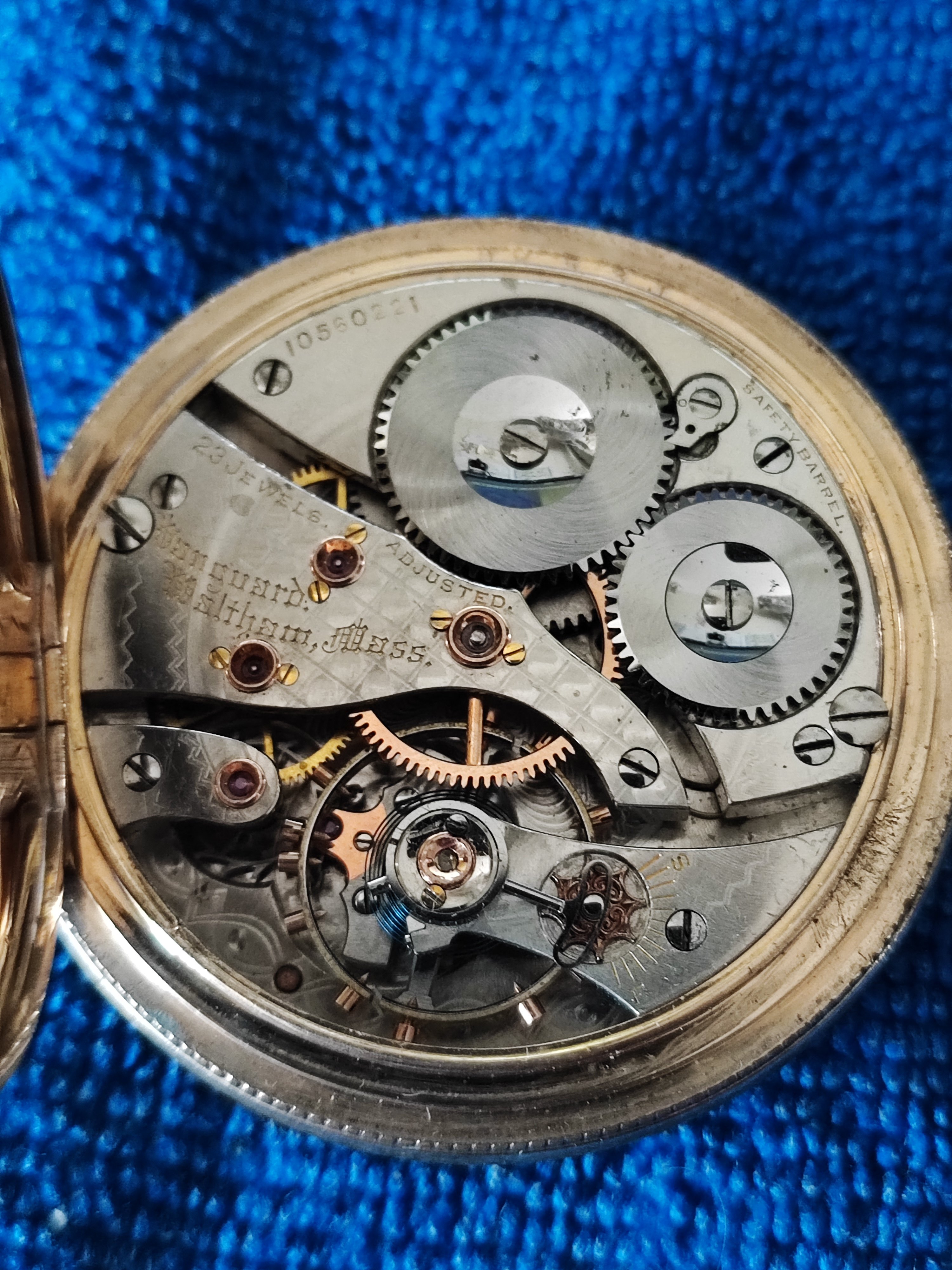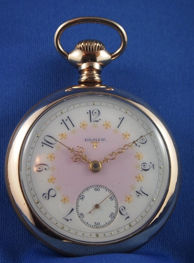 There can’t be too much beauty, can there! My 18-size, 19-jewel Elgin B W Raymond which was never used on a railroad. In your opinion, why might that have been with this watch? This one is from the second run of this model, made in 1903. A watch from Mrs. Cs family.