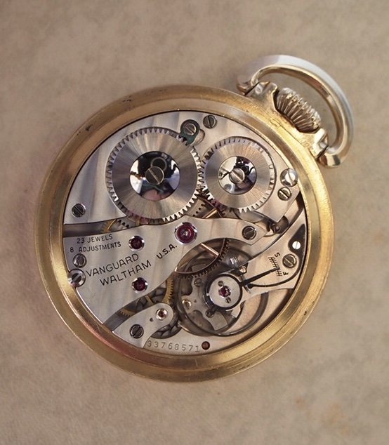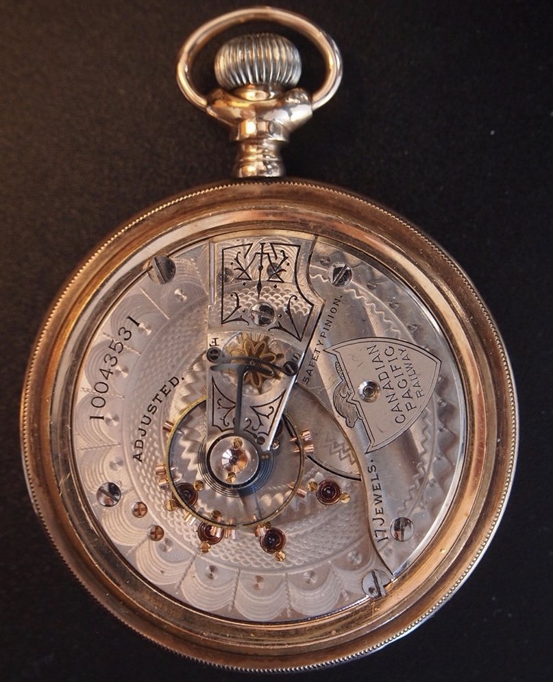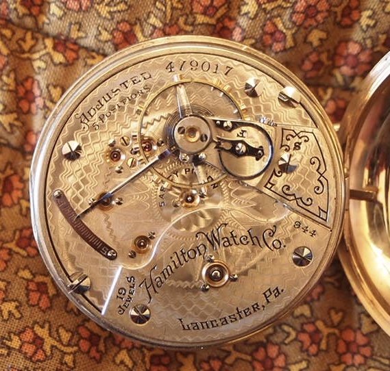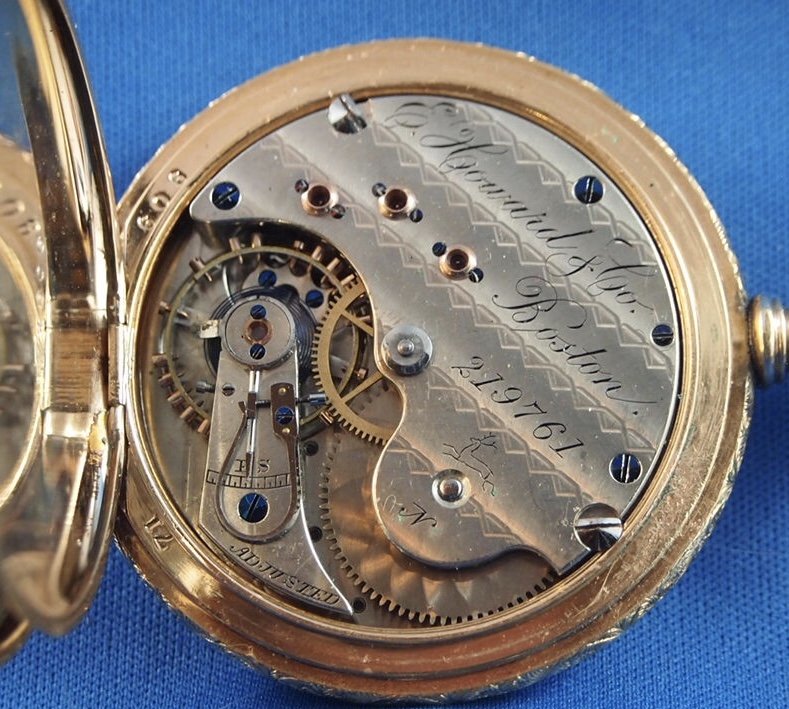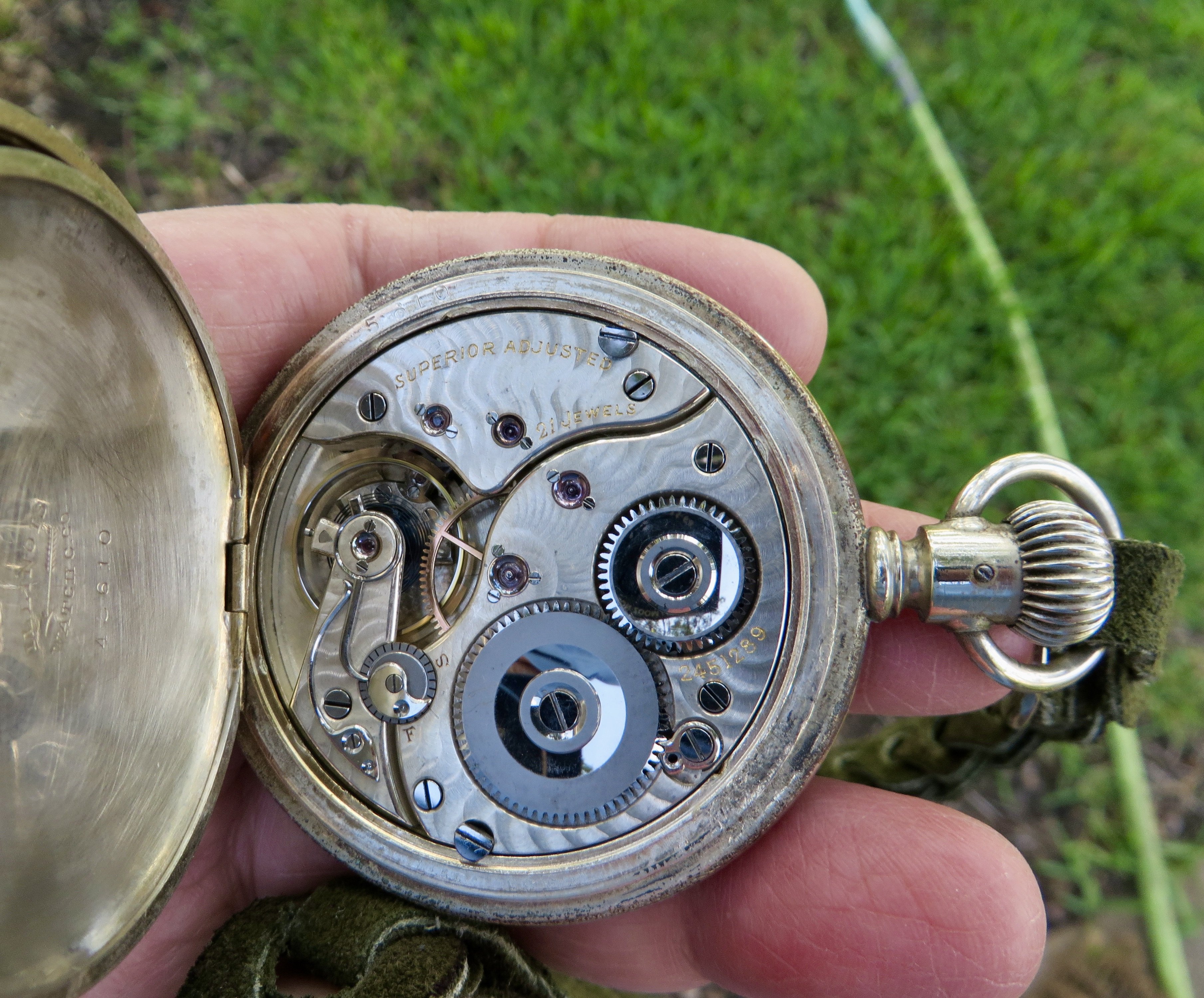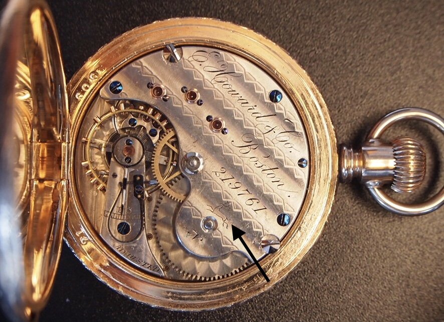 Cleaned up and with a new glass, it would be a worthy addition to your collection. Pretty much a twin for a 1908 model. One characteristic that helps define the 1899 model from the 1908 model is the winding stop click. Note the arrow pointing at the Breguet click on the later model. This one is a 23-jewel Vanguard model.