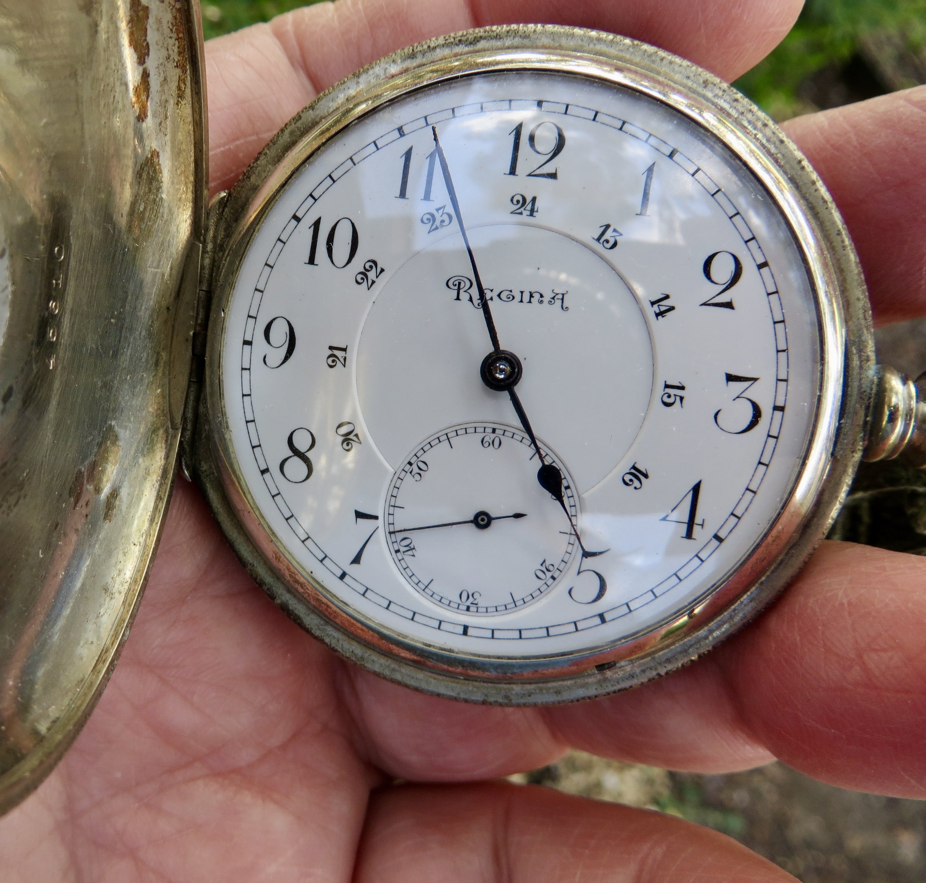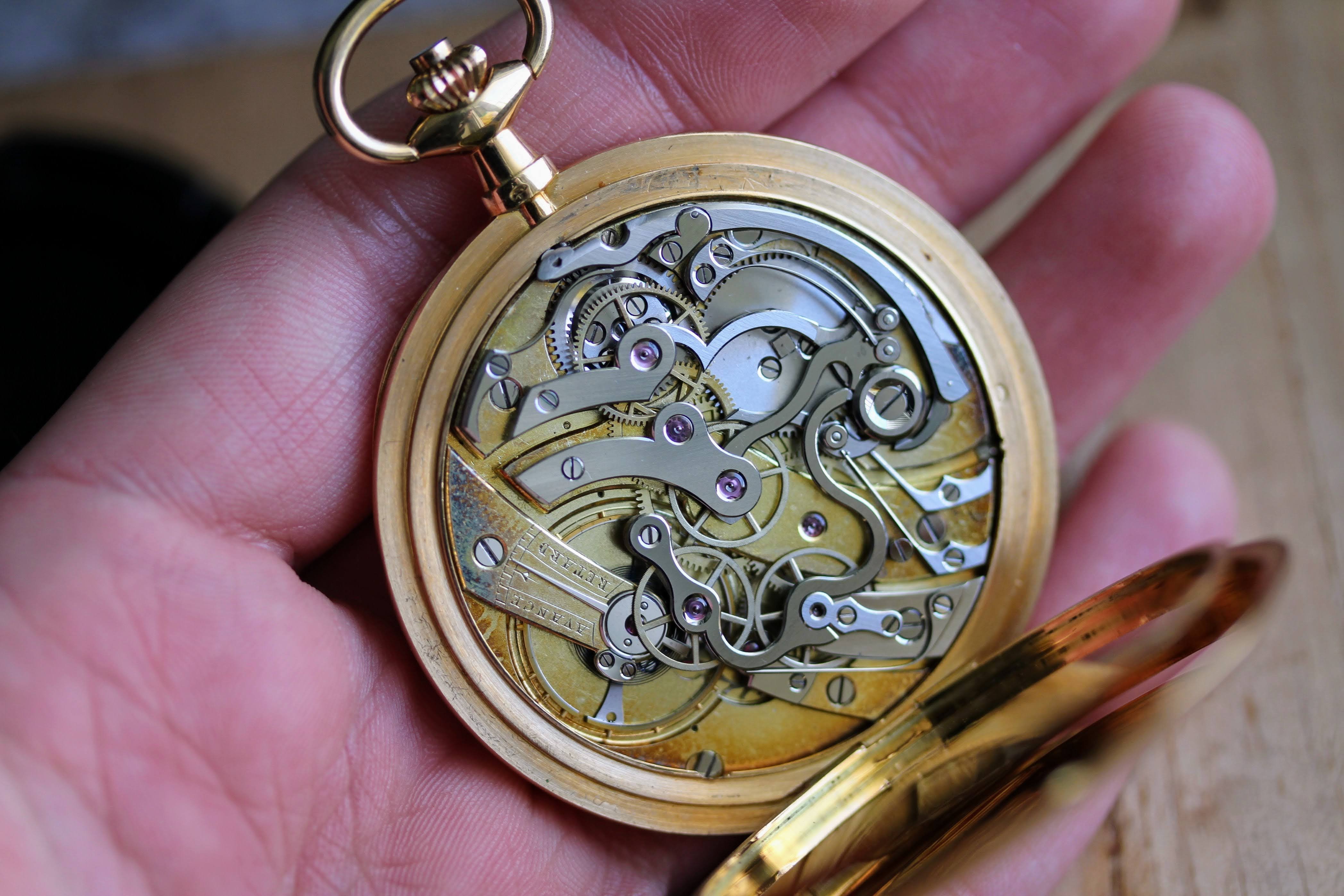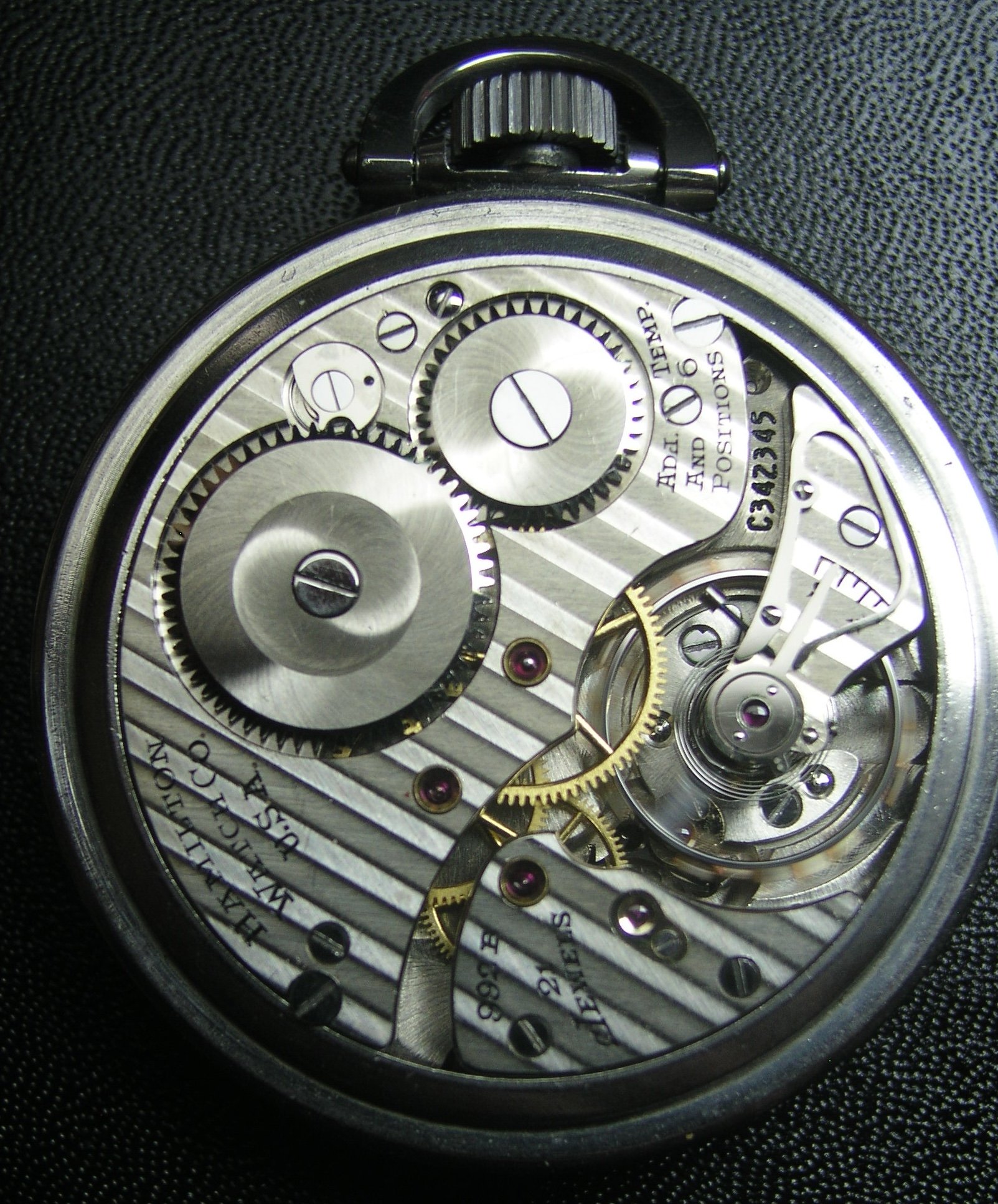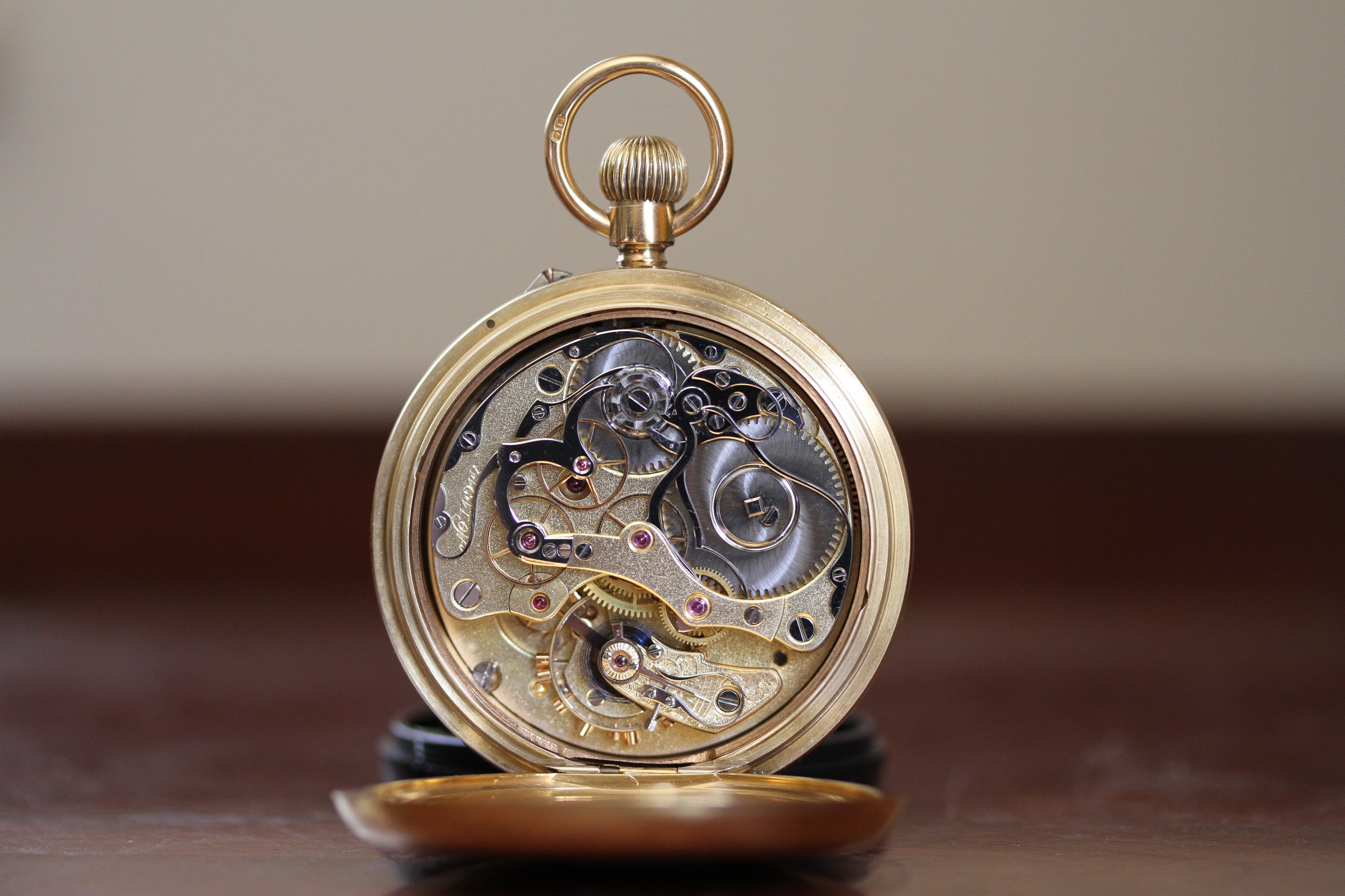 Cleaned up and with a new glass, it would be a worthy addition to your collection. Pretty much a twin for a 1908 model. One characteristic that helps define the 1899 model from the 1908 model is the winding stop click. Note the arrow pointing at the Breguet click on the later model. This one is a 23-jewel Vanguard model.