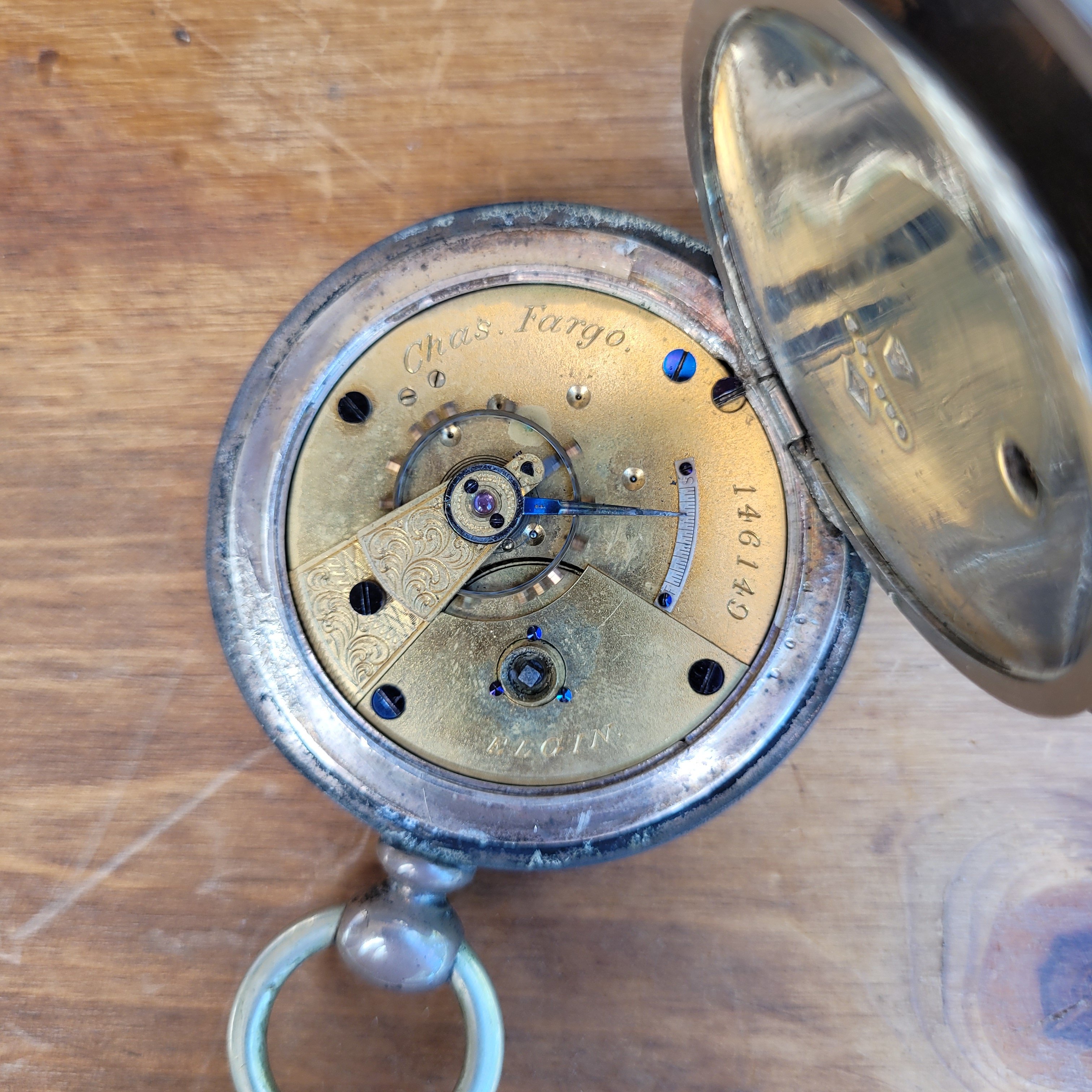 An 1869 Elgin, Model 1, Chas. Fargo, 7J . This is my oldest American Watch. It runs but needs a good service.