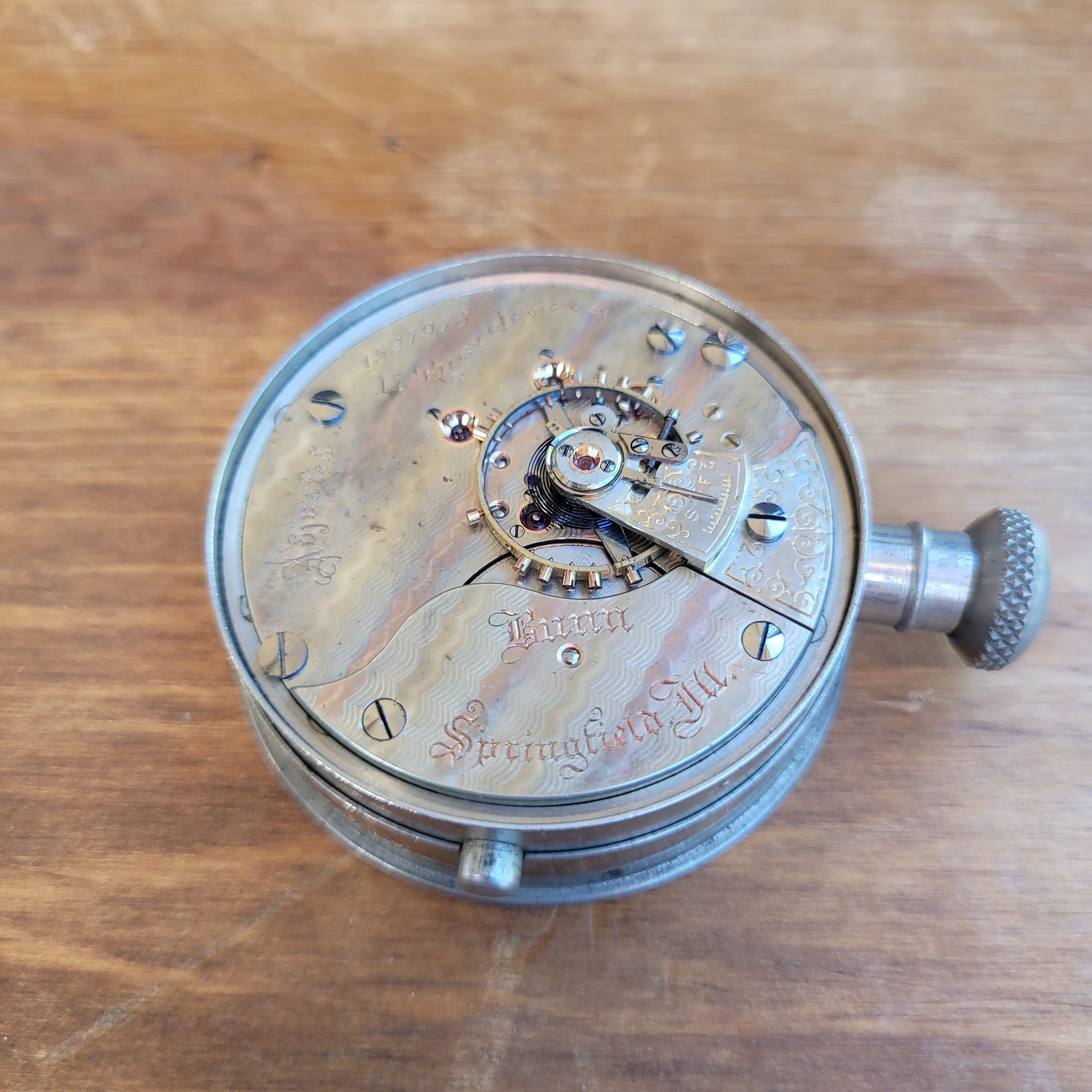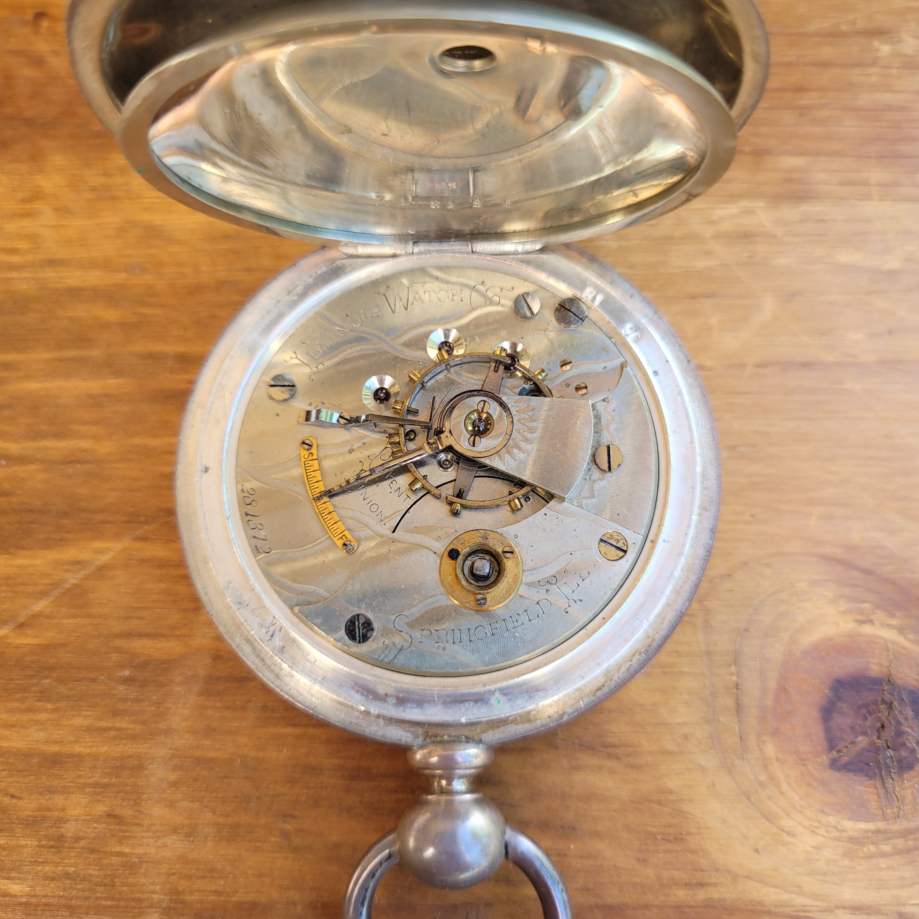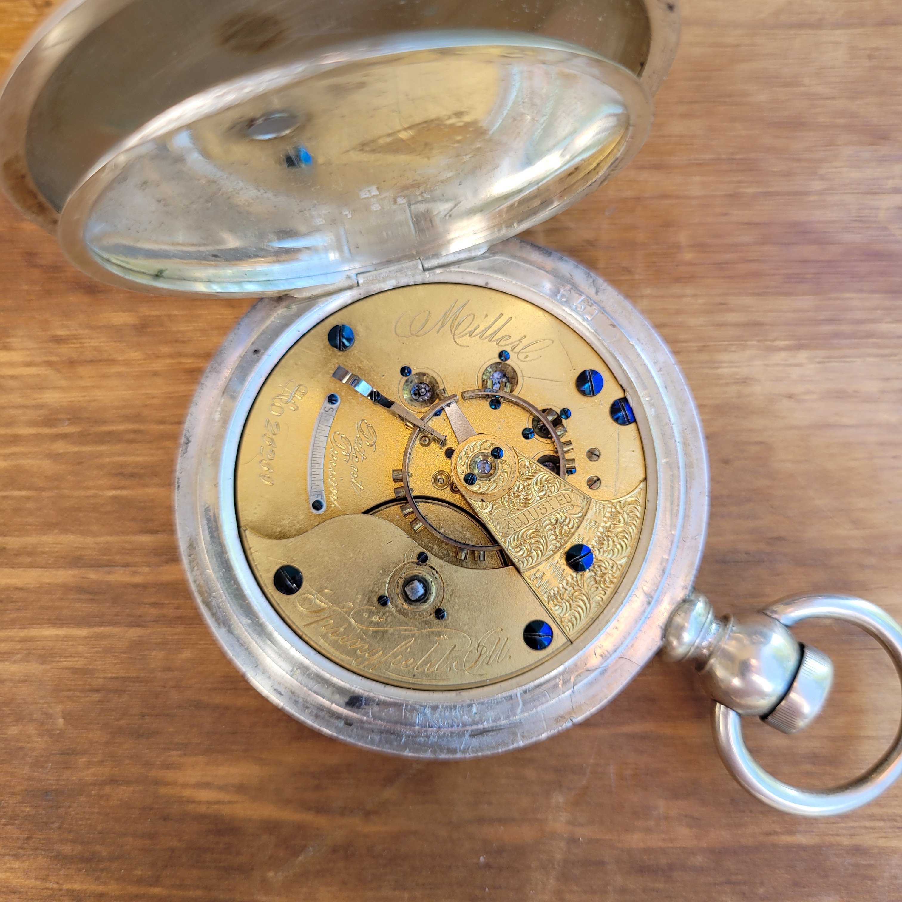 An 1871 Illinois, Model 1, Hoyt, 9J. It was made within probably the first eighteen months of Illinois production. It runs but needs a service.