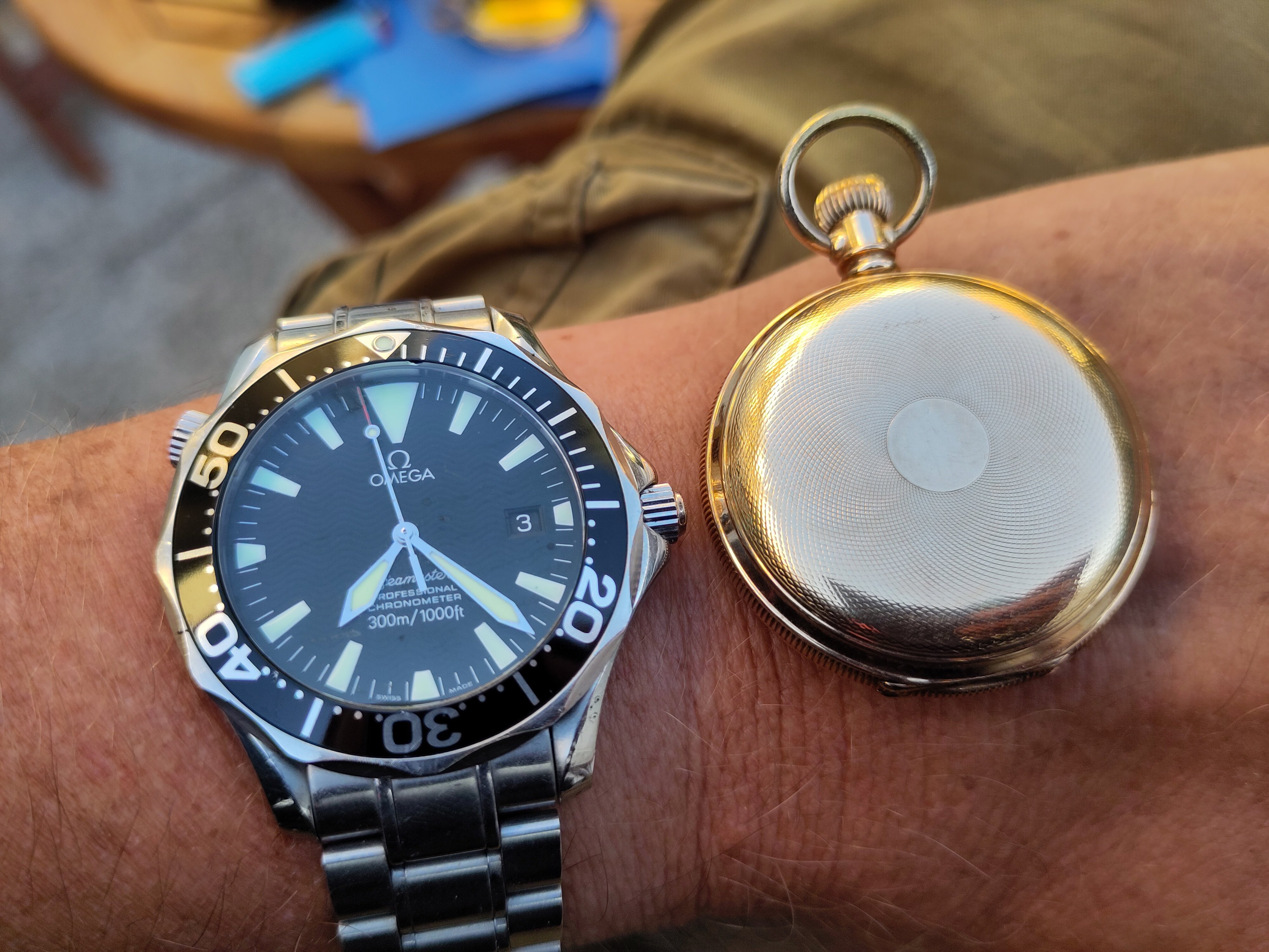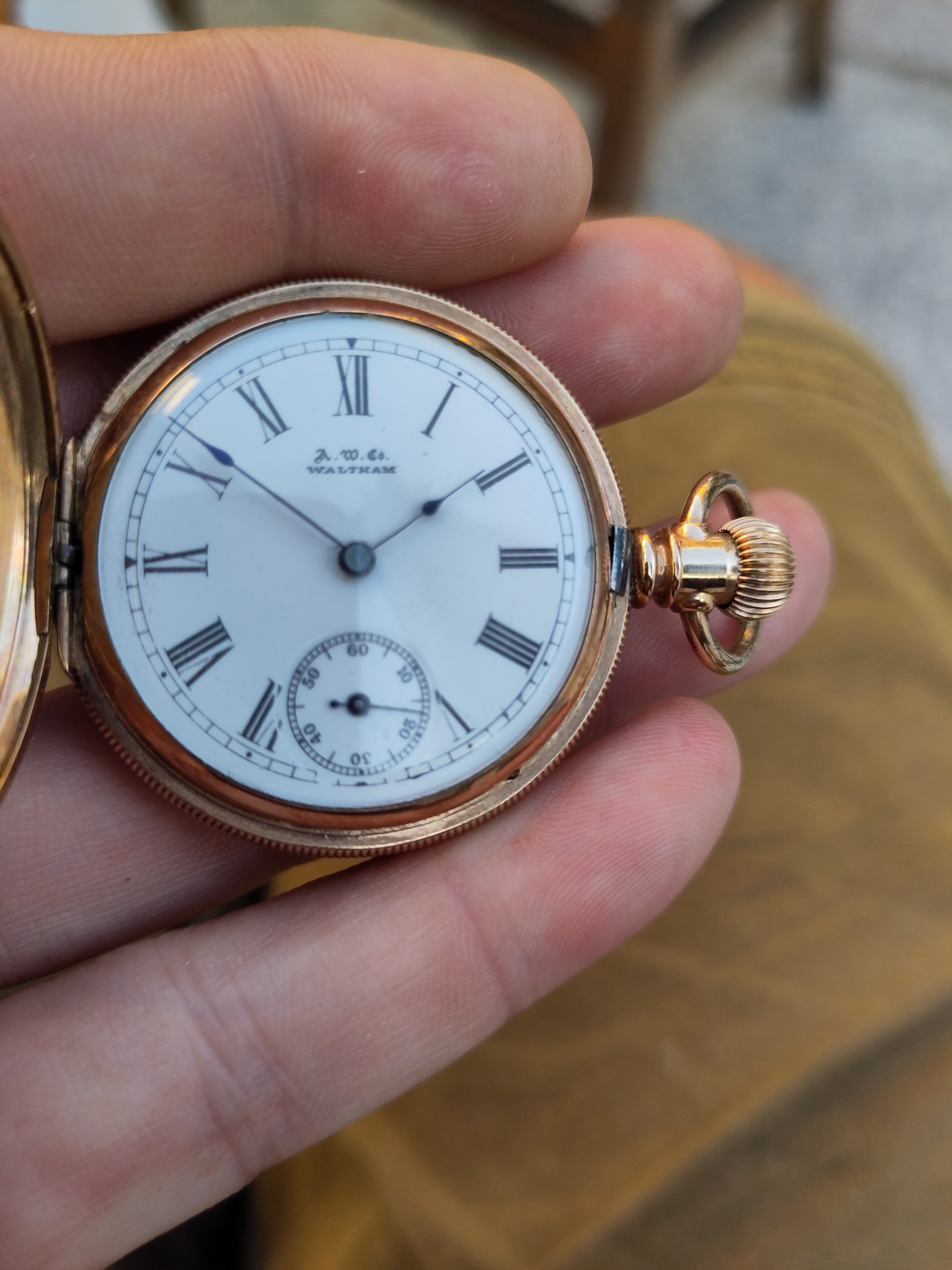 My guess is the case is 18-karat gold? The inevitable question……..is the movement maker identified? Face up, I’d call it a chronograph. But the complicated looking movement might indicate there is more to it than that. The watch appears to be pin-set, but if it is a chronograph, there is no stop-start and re-set button in evidence. You must have anticipated questions. Such watches are not a focus of mine, but I think I’d have jumped on that one! Outstanding!