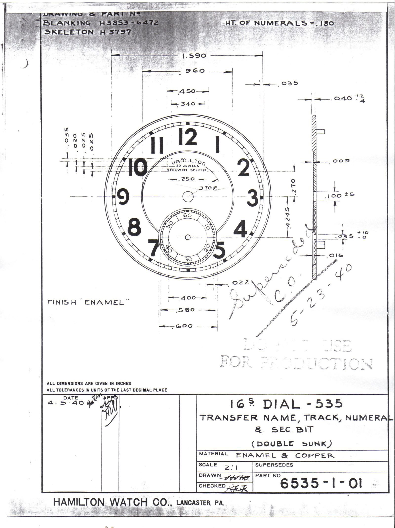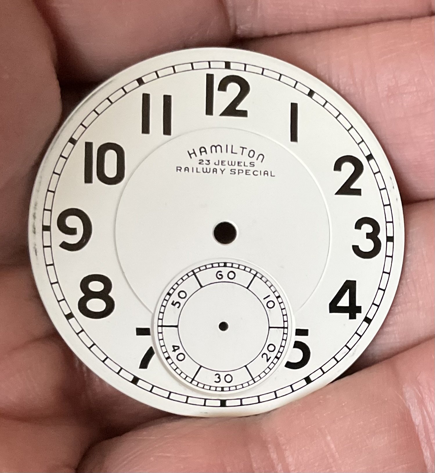 Melamine tended to deteriorate like the dial on the subject watch. My understanding is that Hamilton became aware of the problem, and whether it was Hamilton or the source for melamine resin, I don’t know. But it seems improvements were made on later melamine dials. My 950B came to me with a melamine dial which has not suffered the deterioration of the dial on the subject 950B. My 950B now has a pristine double sunk vitreous enamel dial. Unfortunately NOT a 24-hour dial. Bar over crown case.