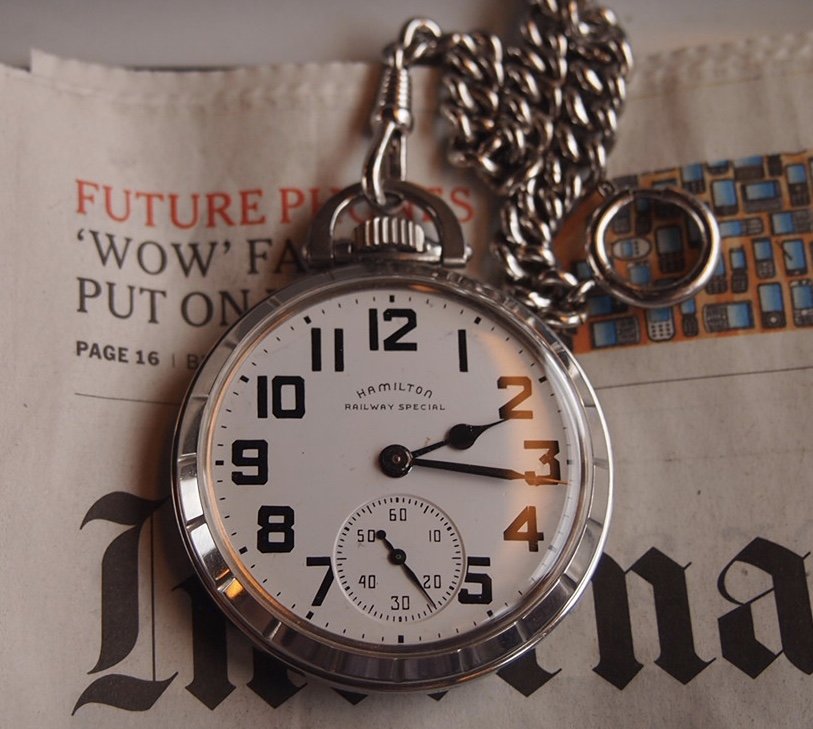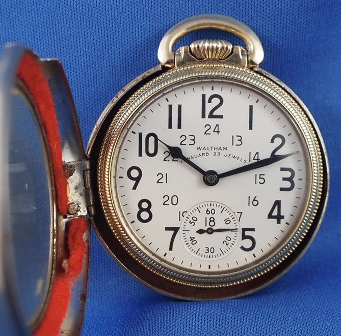 The Waltham Vanguard I posted (above) came to me in a felt lined stainless steel case as shown. The protective case was fitted by the original owner of the Waltham, and the watch reposed in the protective case for about 40 years, while being owned by the first two owners. I bought the watch and removed the protective case.