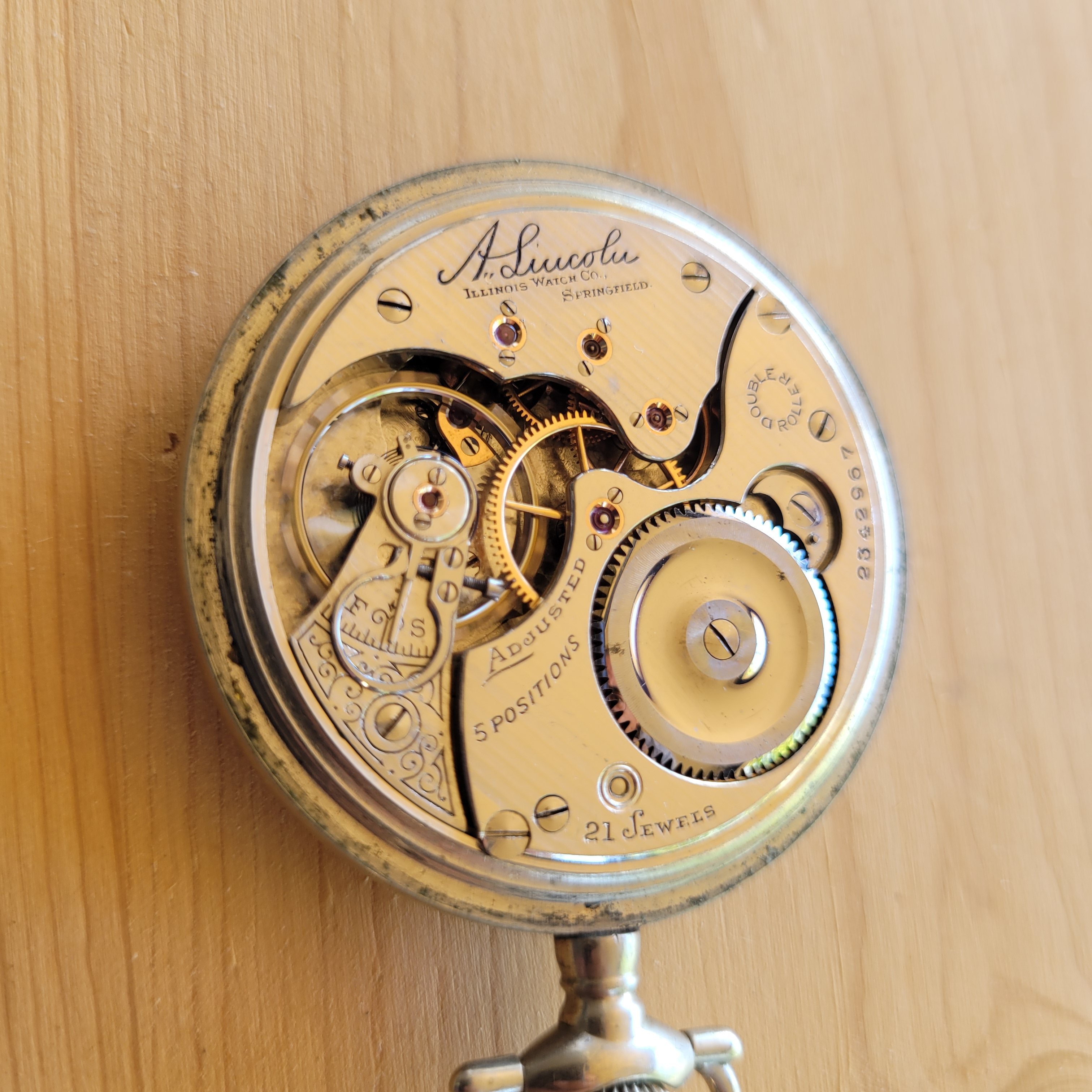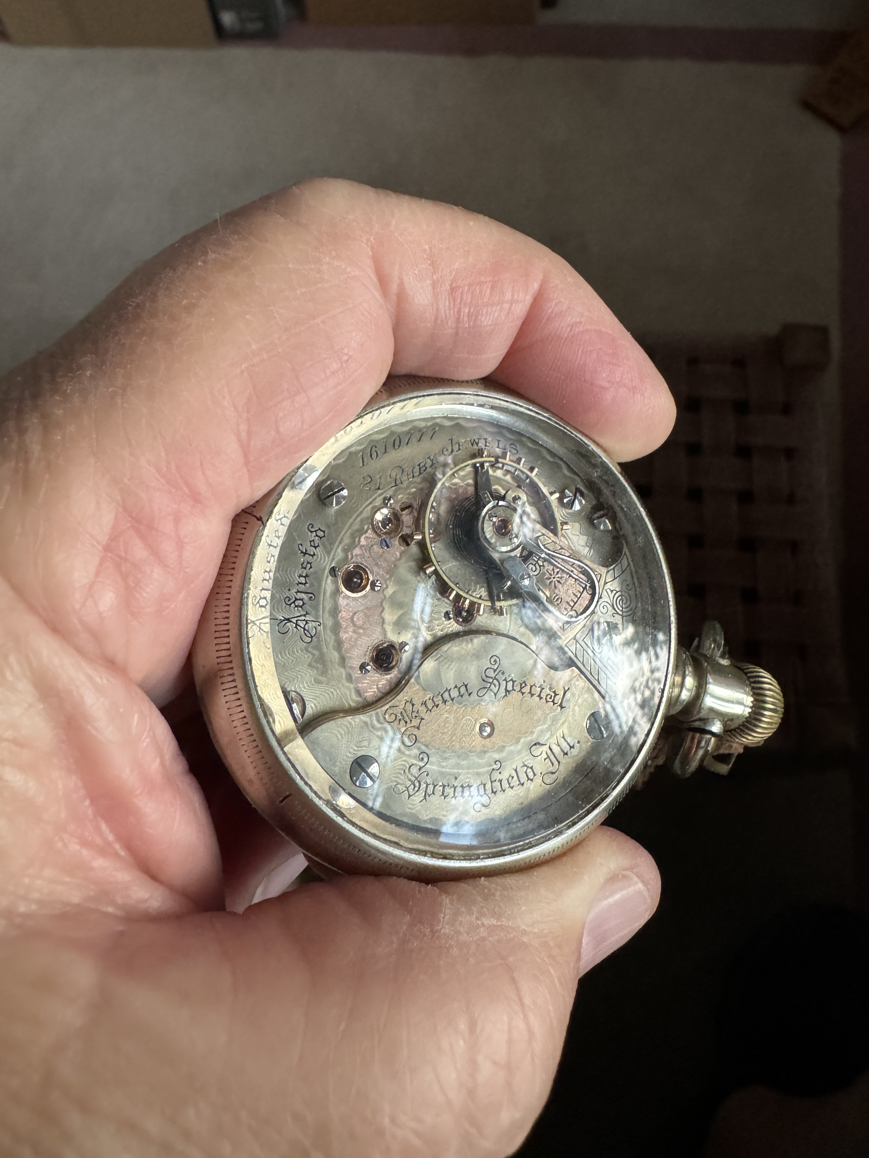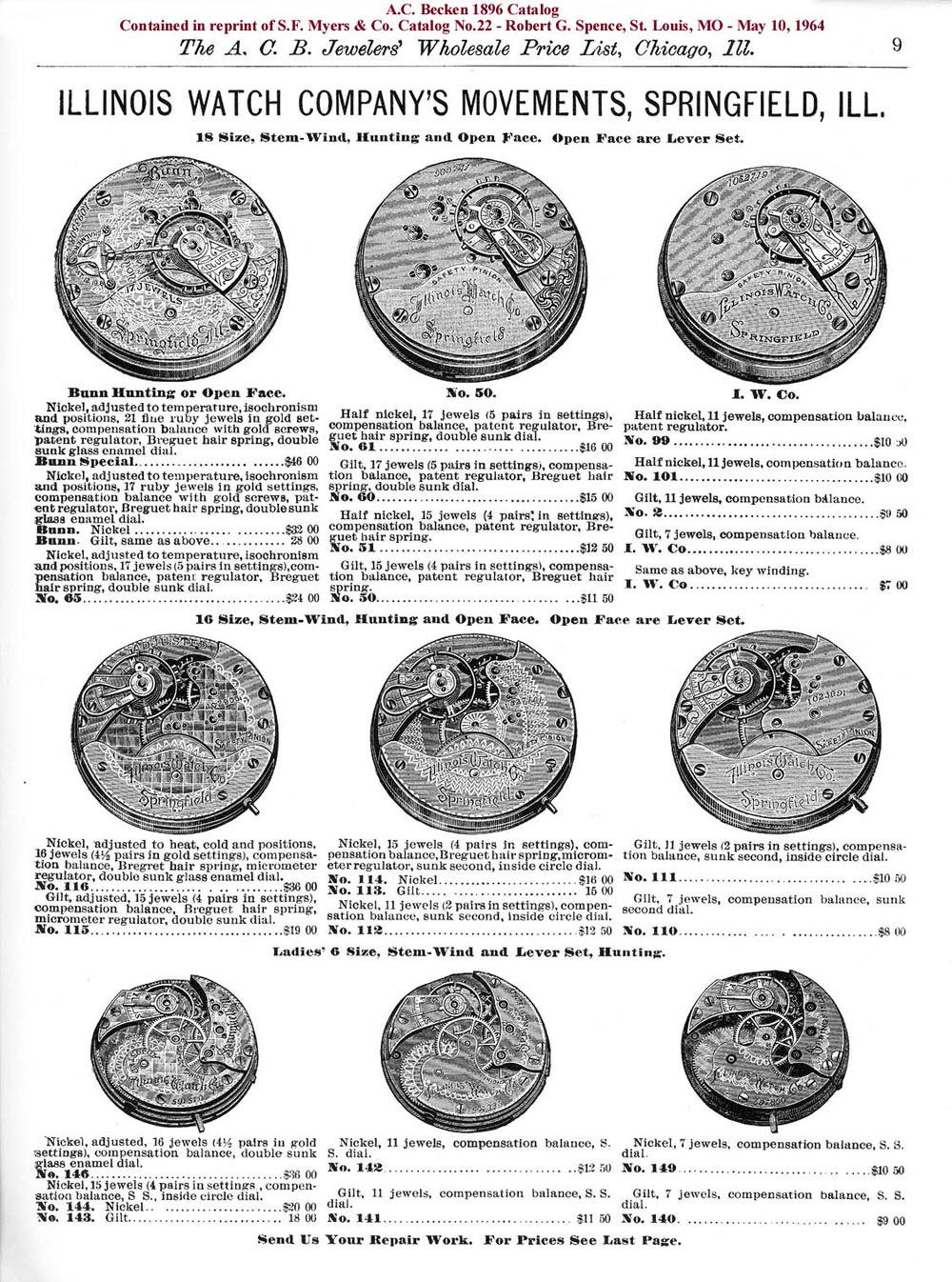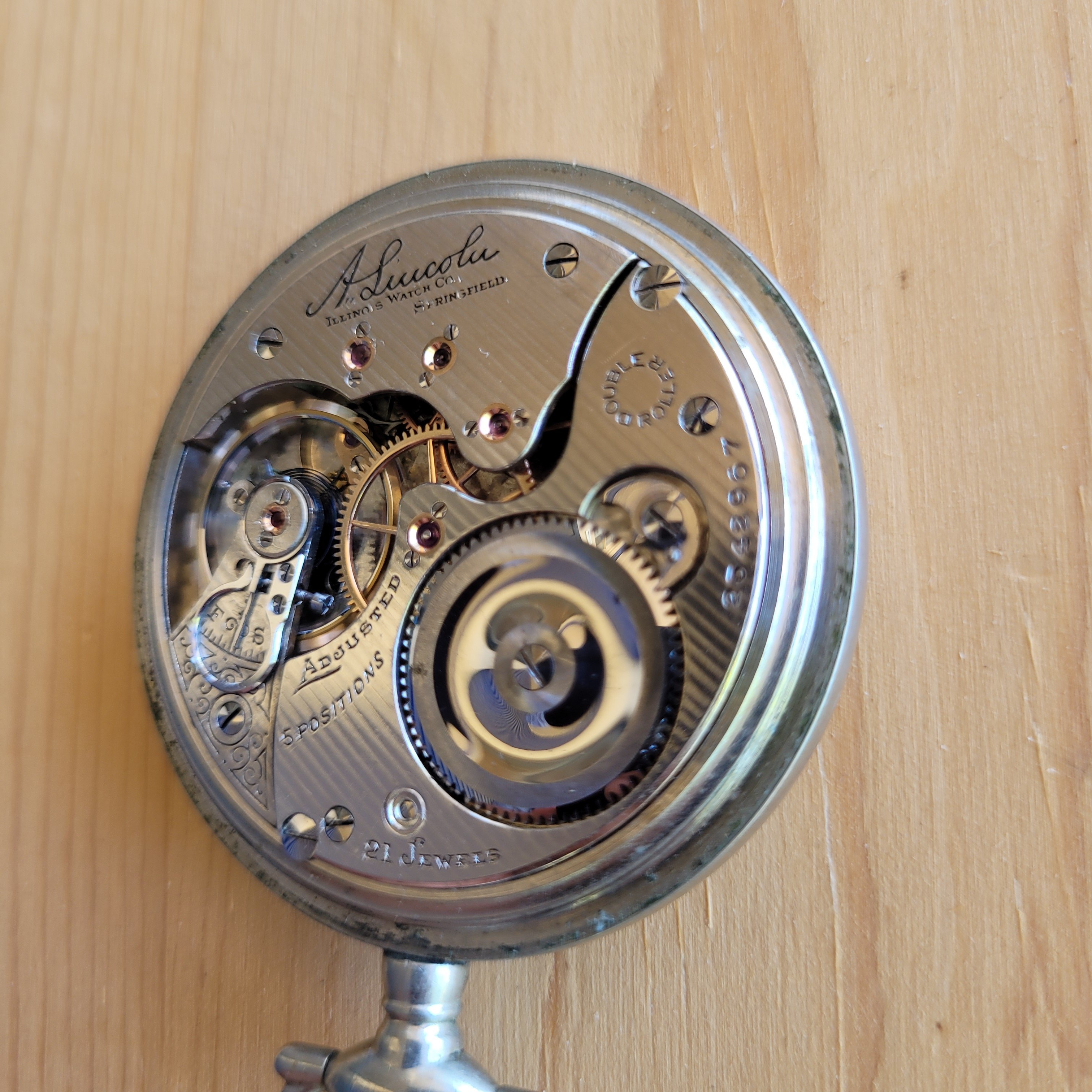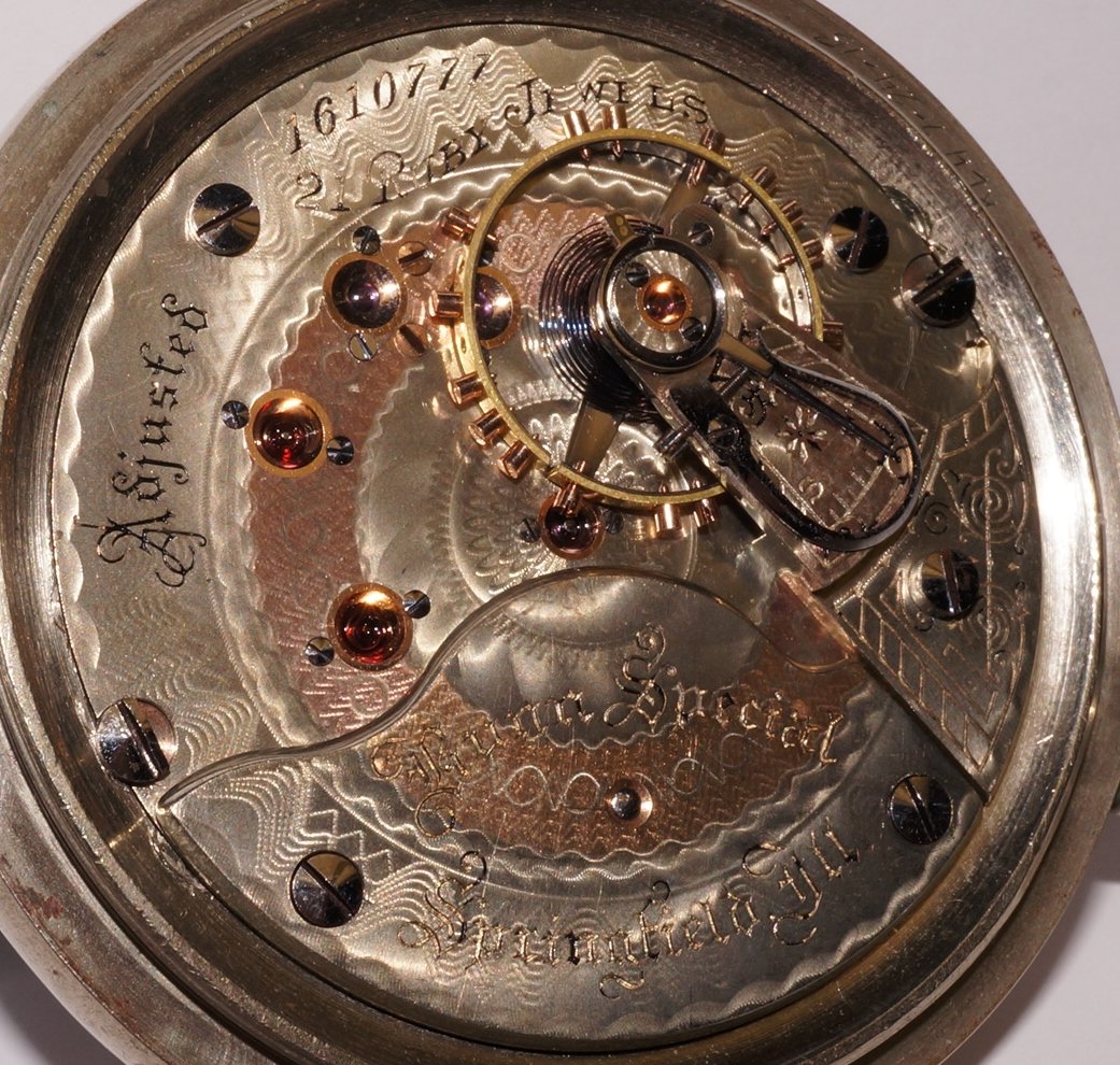 “Many of the 19 and 21 jewel movements in this grade are private label marked and some of these have the three finger train bridge. Also some have different adjustment markings than shown in part one above and a few are gold in laid damasked nickel. Early movements may be marked safety pinion. Grade 175 appears to have been somewhat of a steppingstone between the low quality and the railroad quality 16 size grades.”