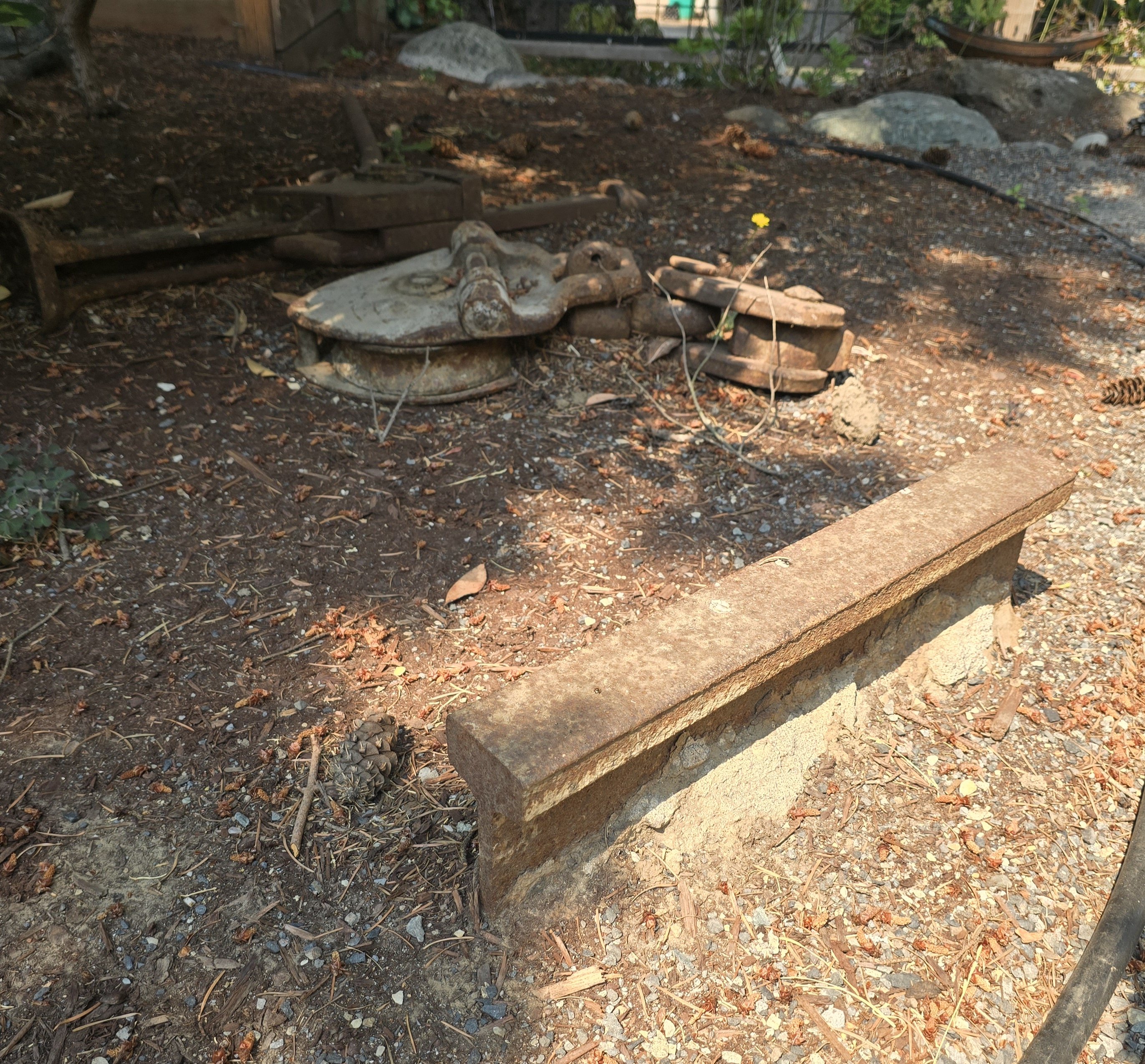 Grabbed a hunk of track that was cut out of the road during construction of a new sewer line for a new building. Now it's a yard ornament. Used to own a trolley lantern but donated it to a local museum.