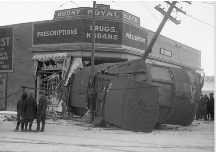 Greasing the rails created traction problems for Vancouver trams ascending hills. Trams in Calgary were replaced by trolley buses and diesel buses in the late 1940s. One famous stretch of track in Calgary was the 17th Avenue hill which ran east and west. At the bottom of the 17th avenue hill was located Crooks Drug Store. Trolleys used to lose control when east bound, down that hill. On numerous occasions, one would jump the rails and pile into the drug store.