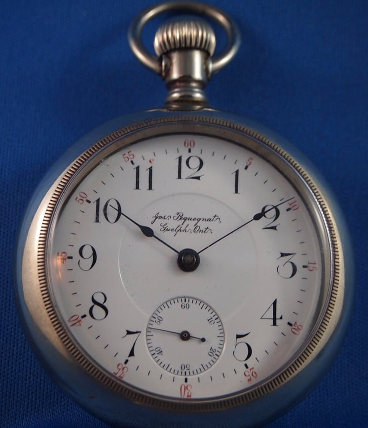 ·A bit of a pre-amble before I discuss this watch. The name on the dial is Jos. (Joseph) Pequegnat, Guelph, Ontario (Canada). Joseph Pequegnat was a brother of Arthur Pequegnat.