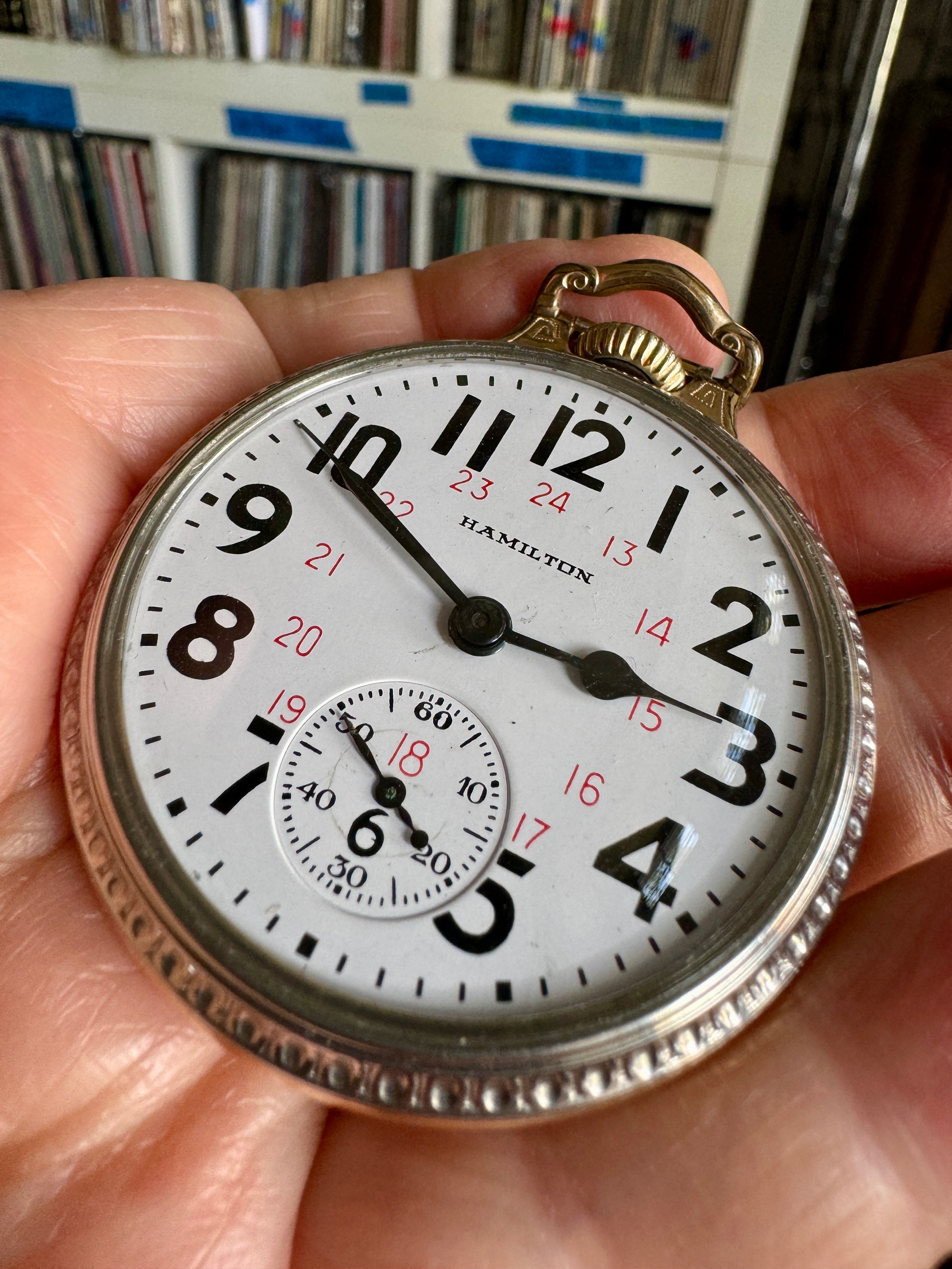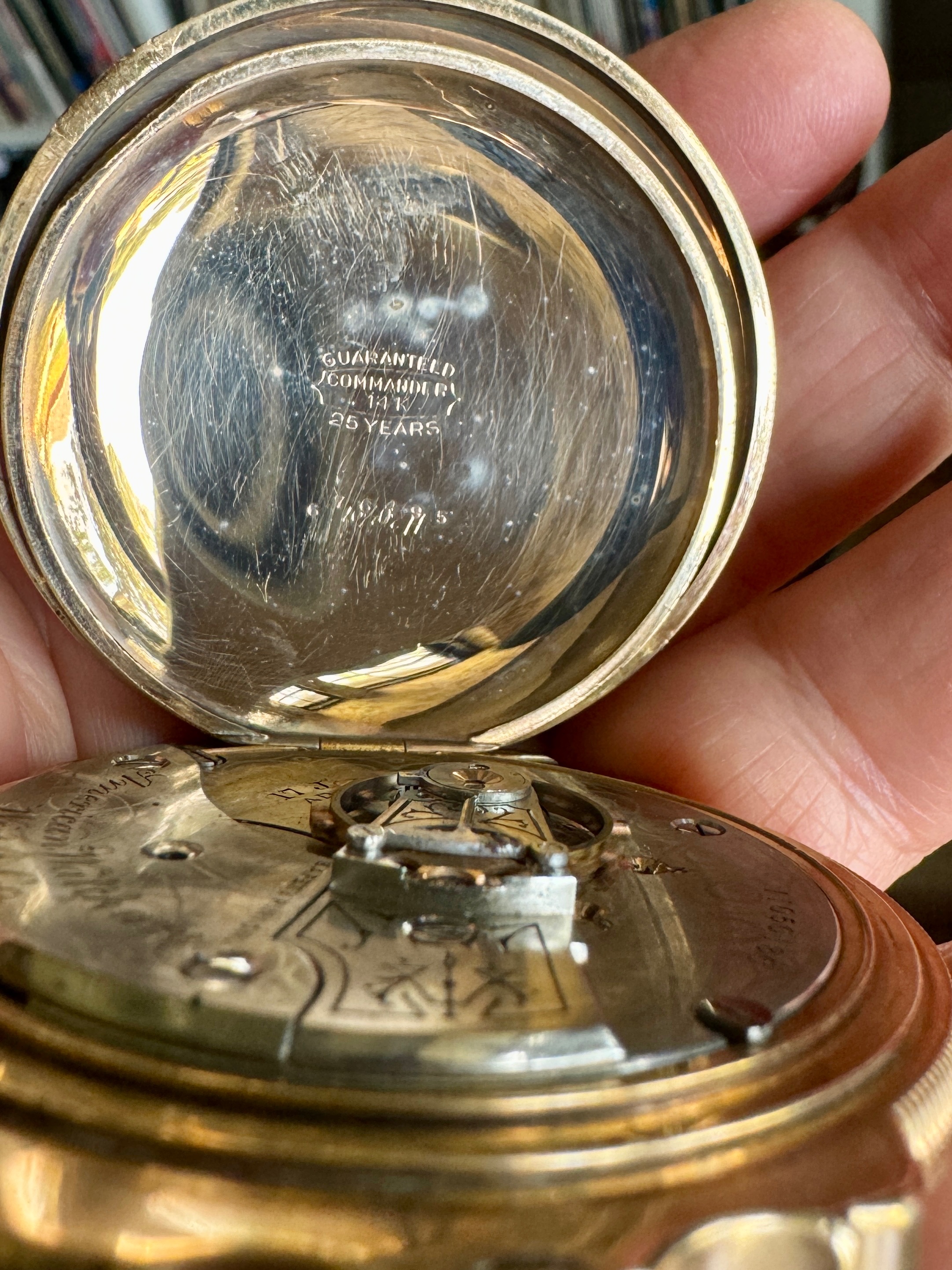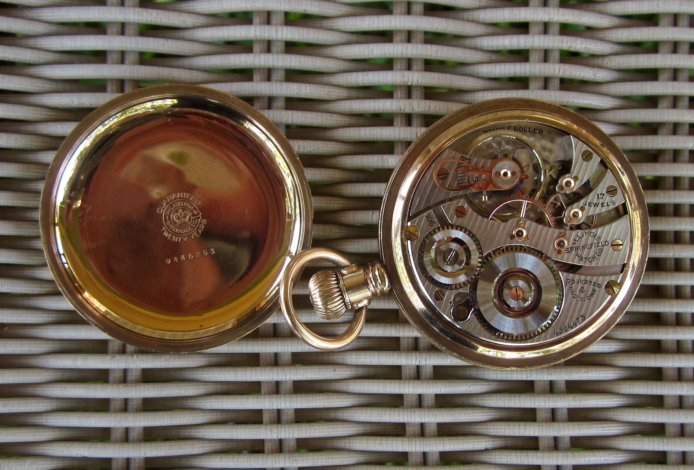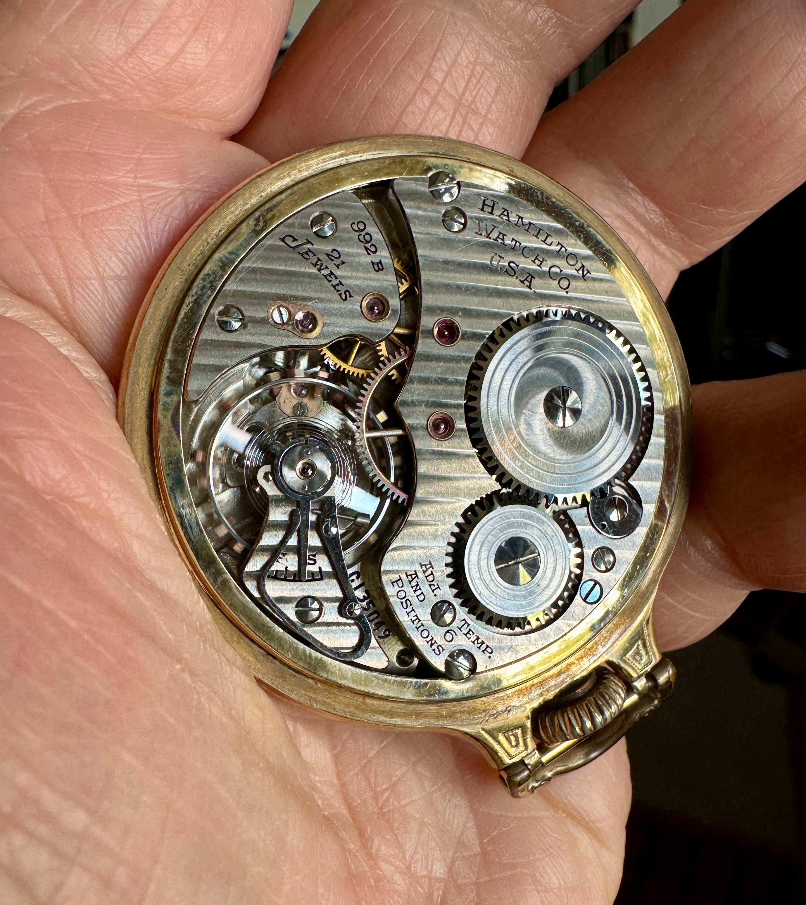 ·My best guess is that the engraved cuvette showing 1907 is about the best guess for vintage. I was unable to see the word “double” anywhere, but it might refer to the watch having a double roller (as opposed to a single roller). The Swiss movement is in an American case which would appear to be original. So, if he Watch did service in North America, it could not be considered of railroad standard. By 1907, in North America, a railroad standard watch would have needed to have the manufacturer’s name on the dial, and the movement would have had to been marked double roller”, and “timed to x positions”. The hunter case would also not have been railroad standard. It would appear hat the Longines is “stem set”, not “lever set”. It would appear to be a better than average Swiss-made watch for the era. 17-jewels, temperature compensated balance wheel, blued steel Breguet (overcoil) hairspring, patented micrometer regulator. I am not aware that Longines watches were ever accepted for railroad use in the U S A. But some grades of Longines were accepted in Canada. But I suspect this is not one of those. Pretty case, and in total, seems in nice condition.