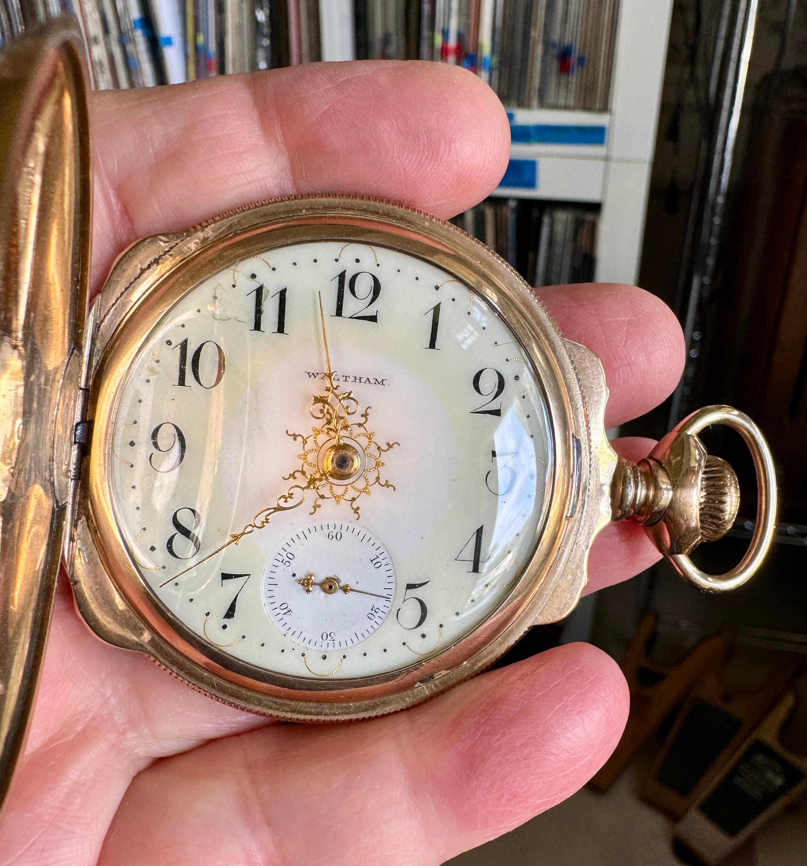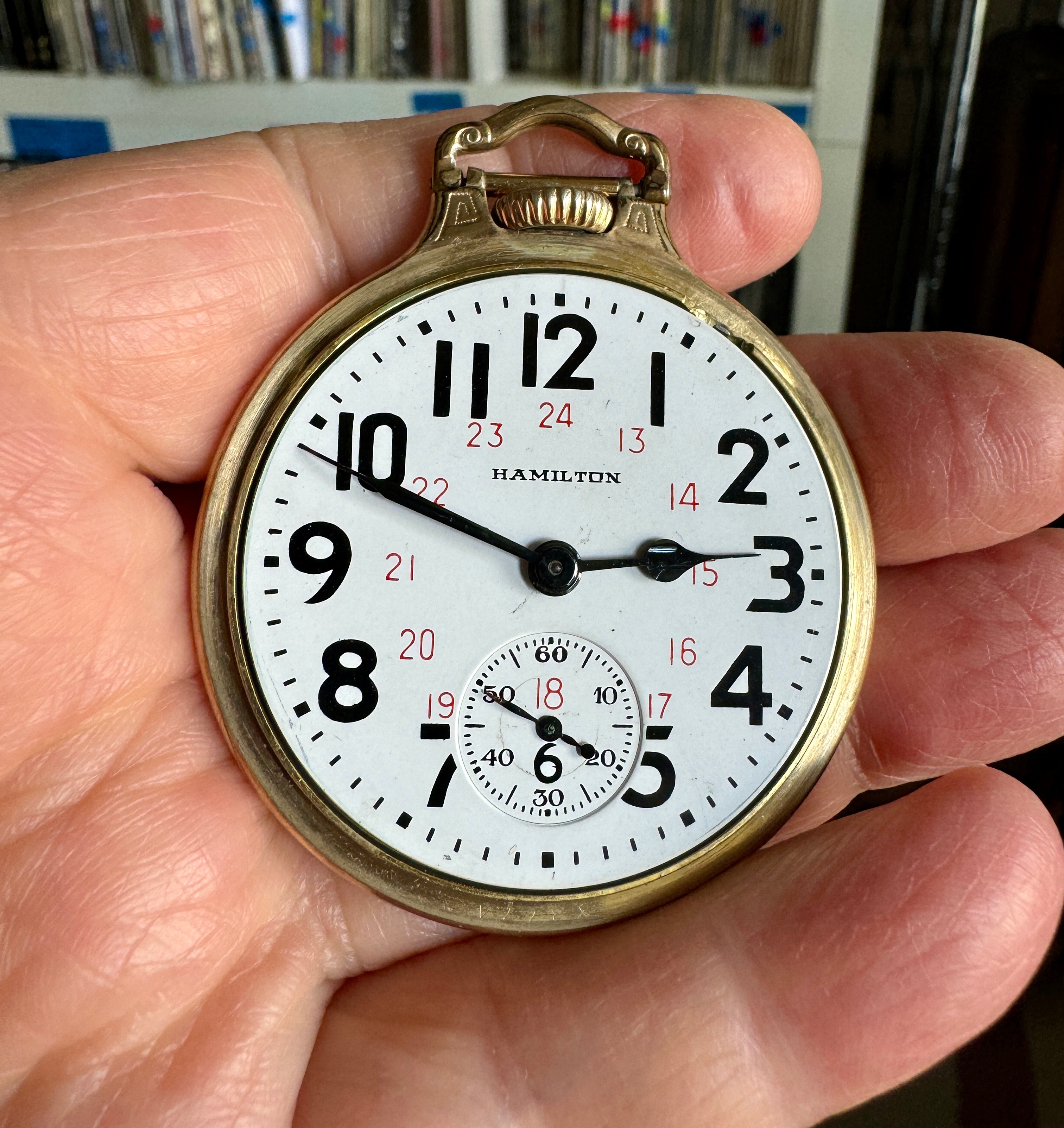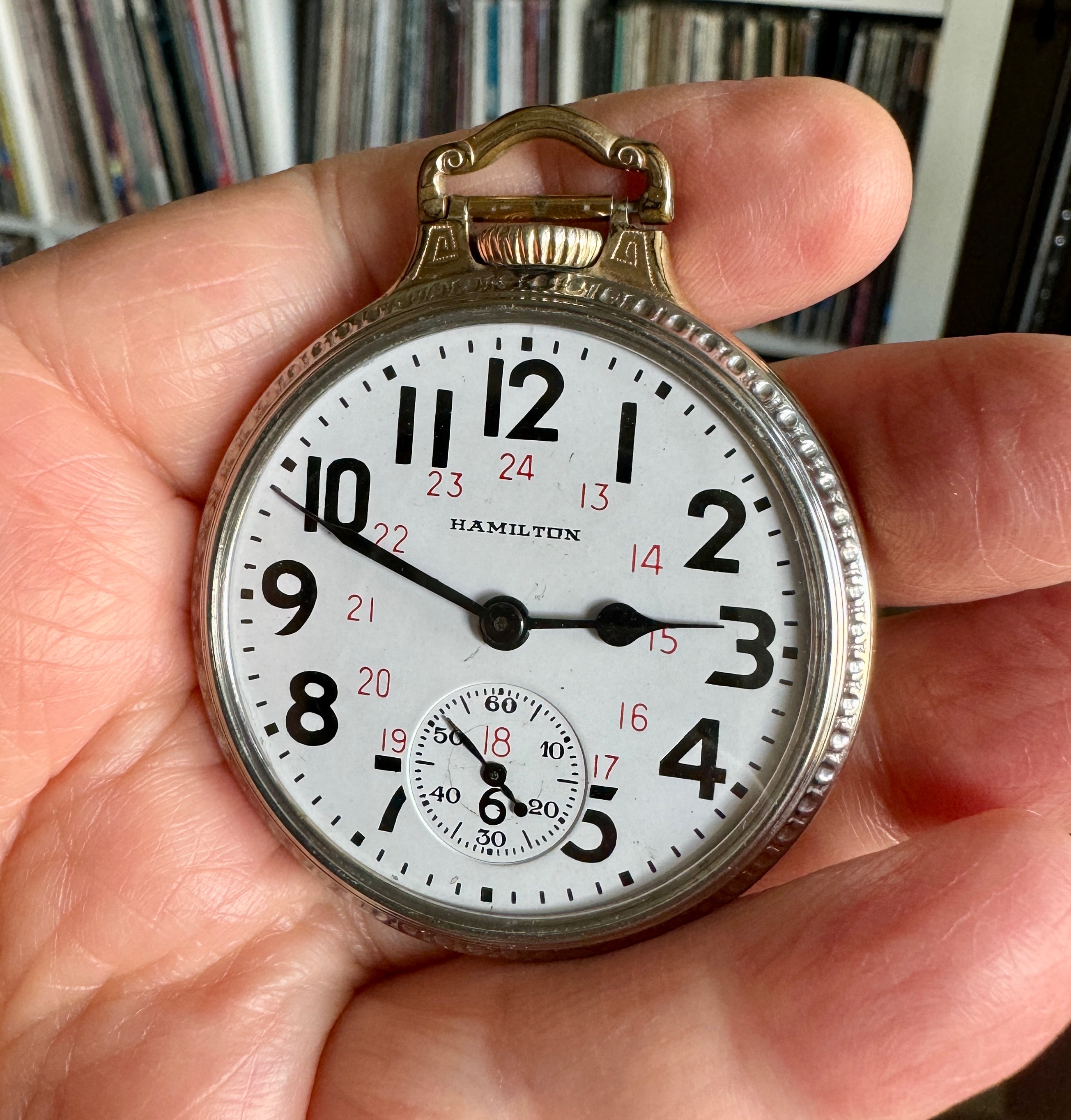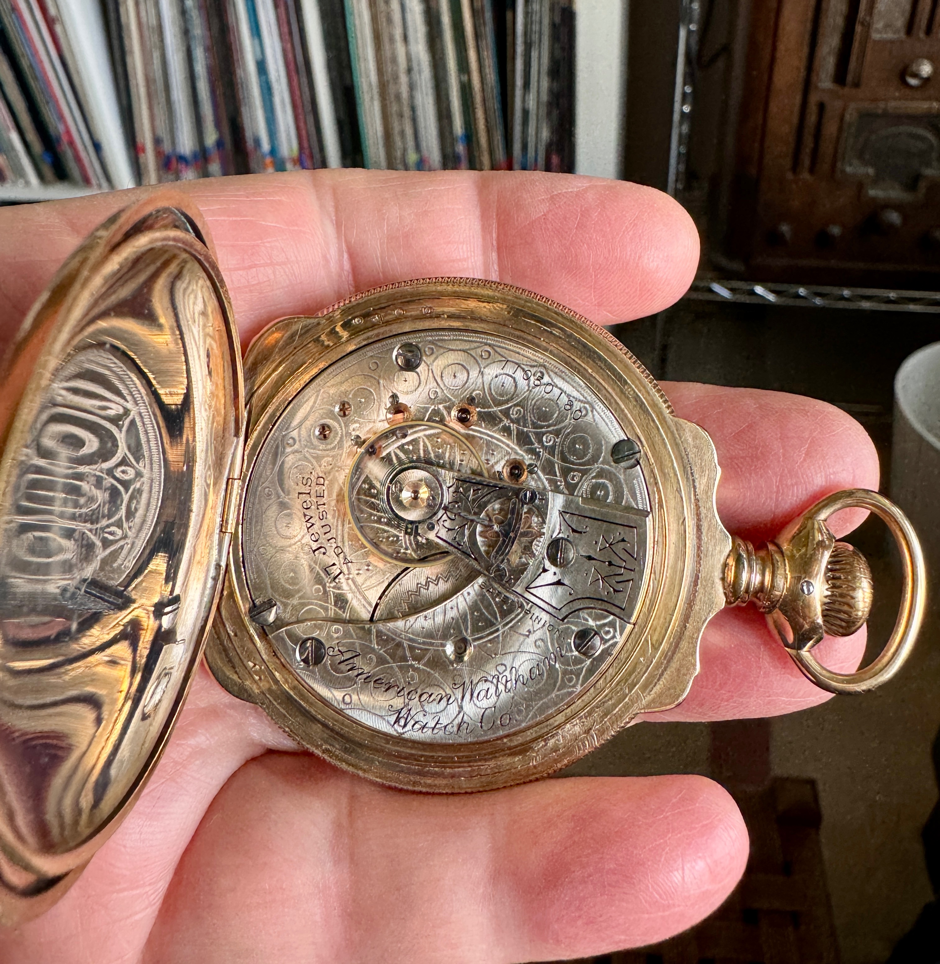 ·My best guess is that the engraved cuvette showing 1907 is about the best guess for vintage. I was unable to see the word “double” anywhere, but it might refer to the watch having a double roller (as opposed to a single roller). The Swiss movement is in an American case which would appear to be original. So, if he Watch did service in North America, it could not be considered of railroad standard. By 1907, in North America, a railroad standard watch would have needed to have the manufacturer’s name on the dial, and the movement would have had to been marked double roller”, and “timed to x positions”. The hunter case would also not have been railroad standard. It would appear hat the Longines is “stem set”, not “lever set”. It would appear to be a better than average Swiss-made watch for the era. 17-jewels, temperature compensated balance wheel, blued steel Breguet (overcoil) hairspring, patented micrometer regulator. I am not aware that Longines watches were ever accepted for railroad use in the U S A. But some grades of Longines were accepted in Canada. But I suspect this is not one of those. Pretty case, and in total, seems in nice condition.
