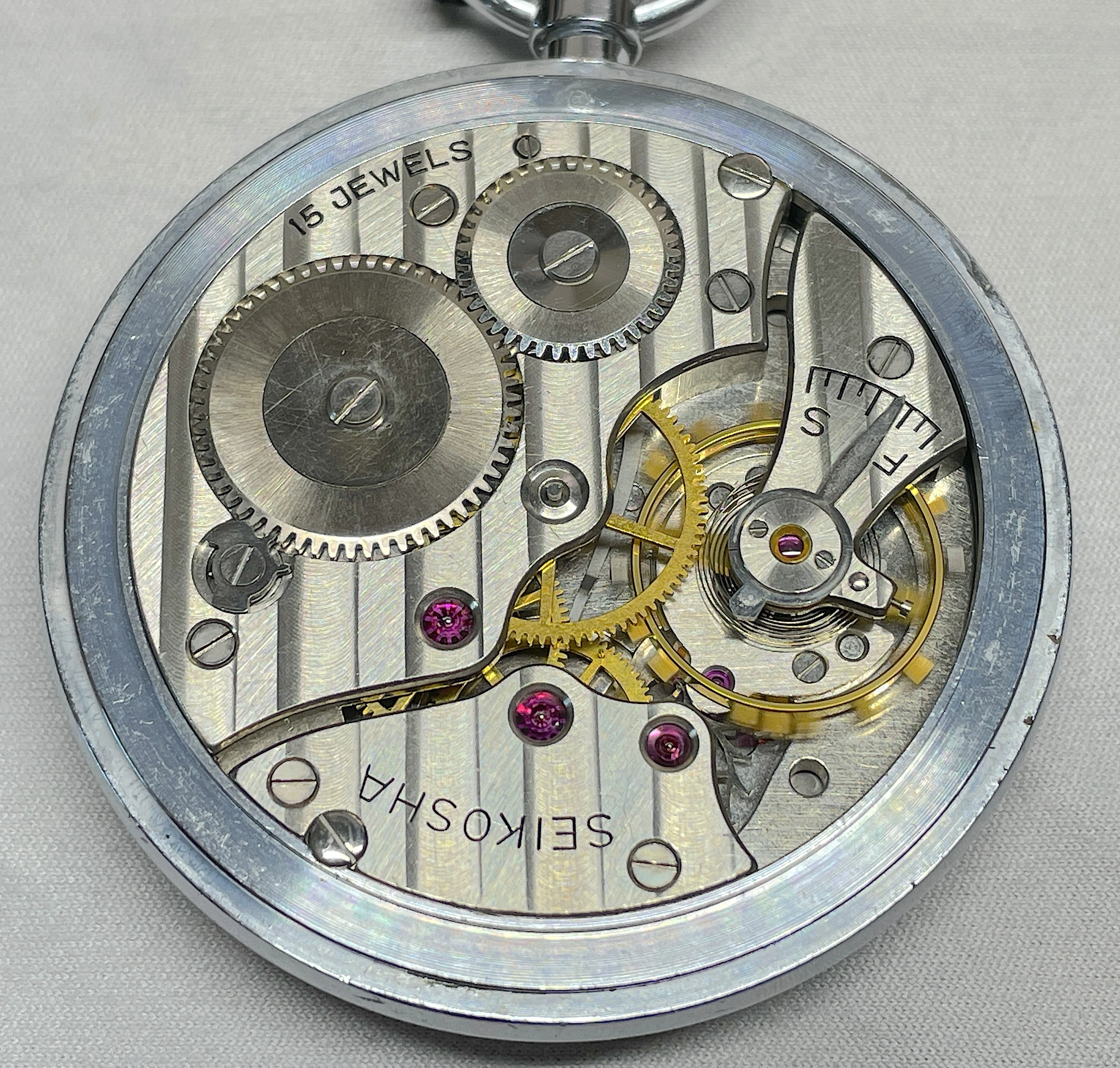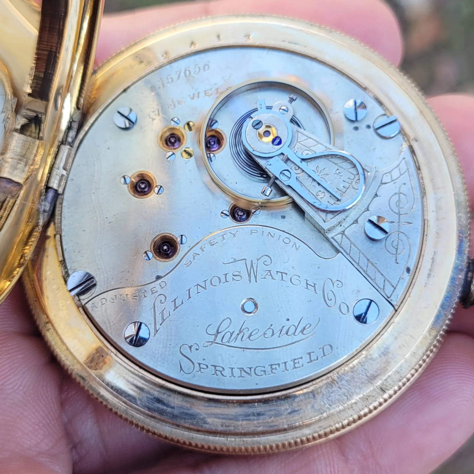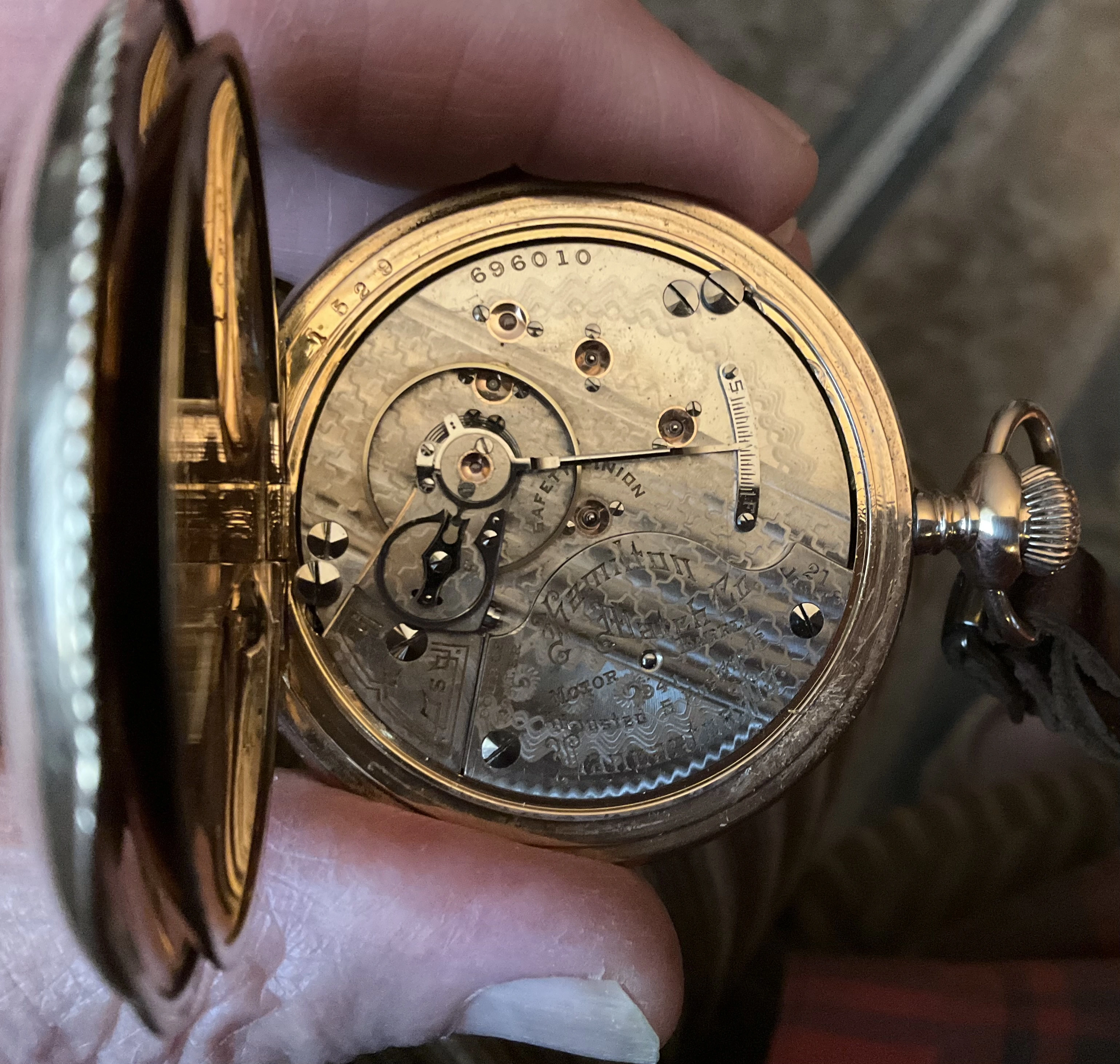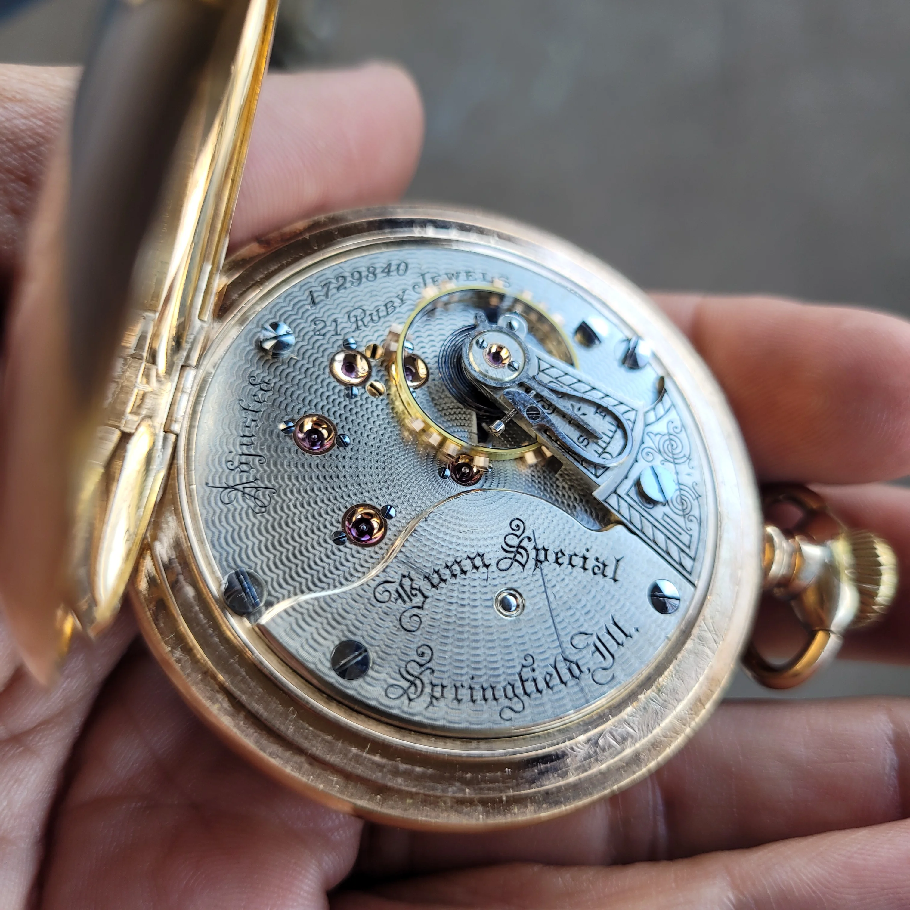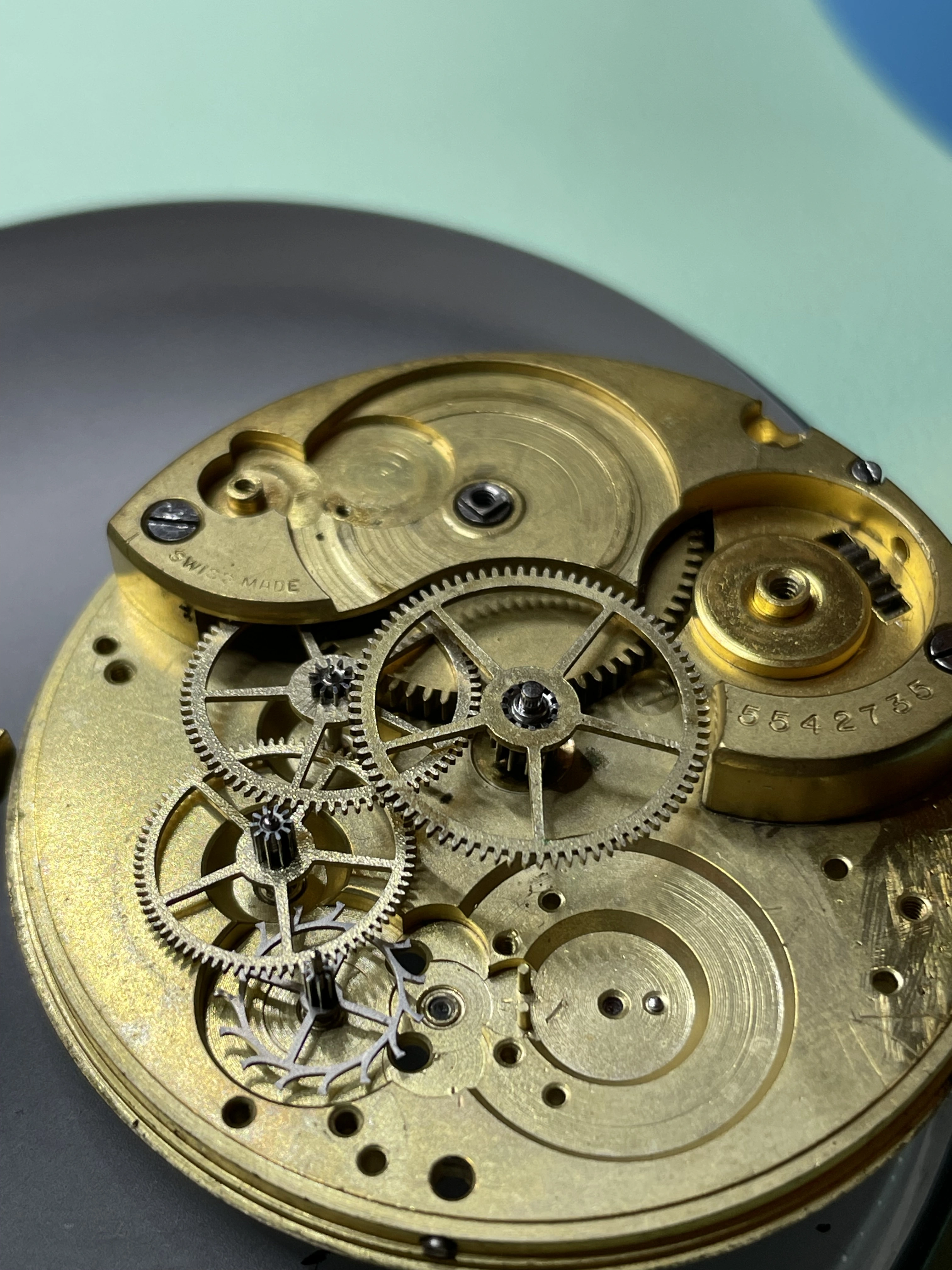 My grandfather’s pocket watch, passed down to my father and then my brother, I was unaware of this until today when he passed it on to me as he has no interest and is aware that I have. It is an omega movement cased in a Dennison case, with the dial marked by a local jeweller, Hilser’s here in Cork, from circa 1916. It’s not anything of great value but am absolutely thrilled to have it. It’s pretty dirty and dry so I’ll give it a good clean and put it on display, it’s in pretty good condition, working with all jewels and pivots etc intact.