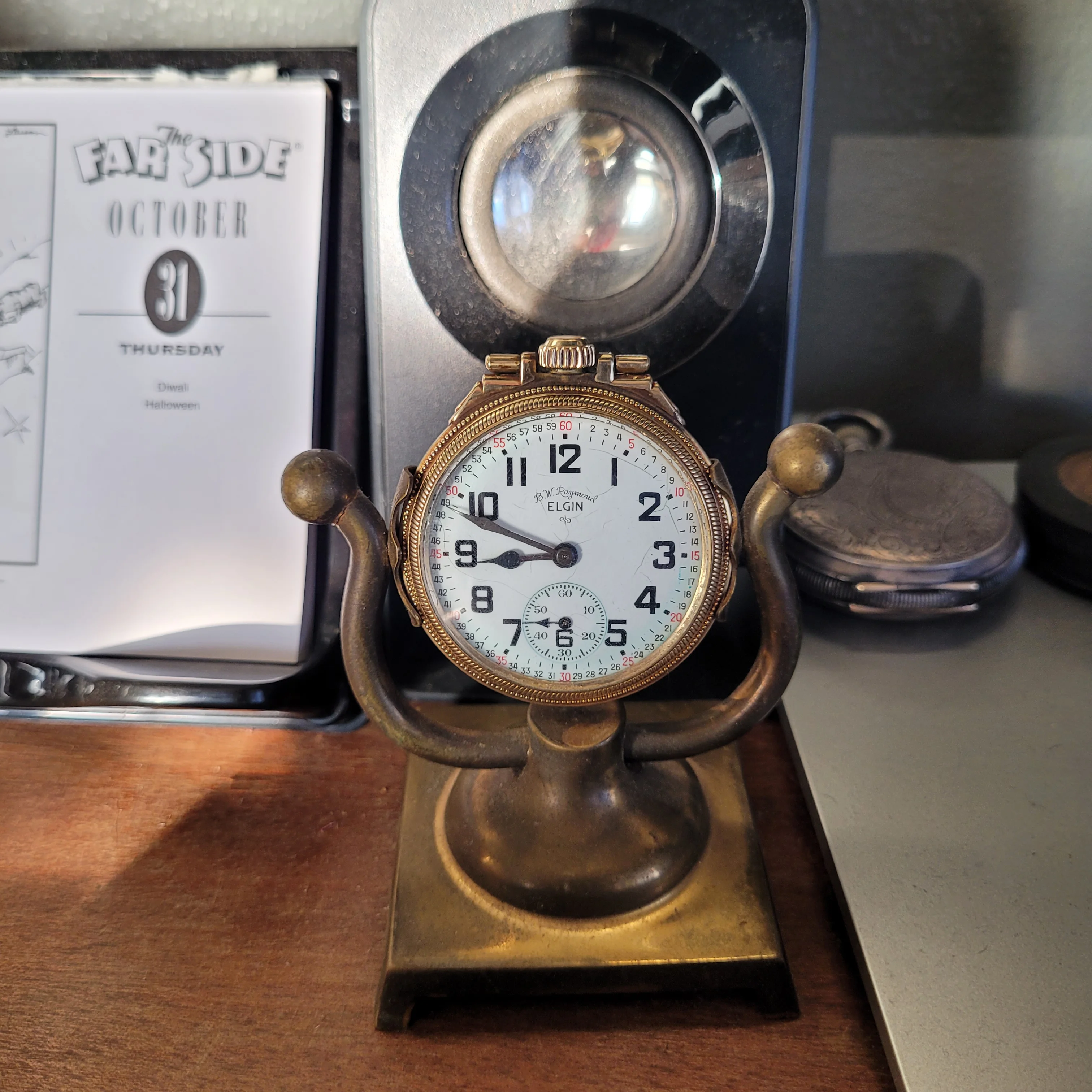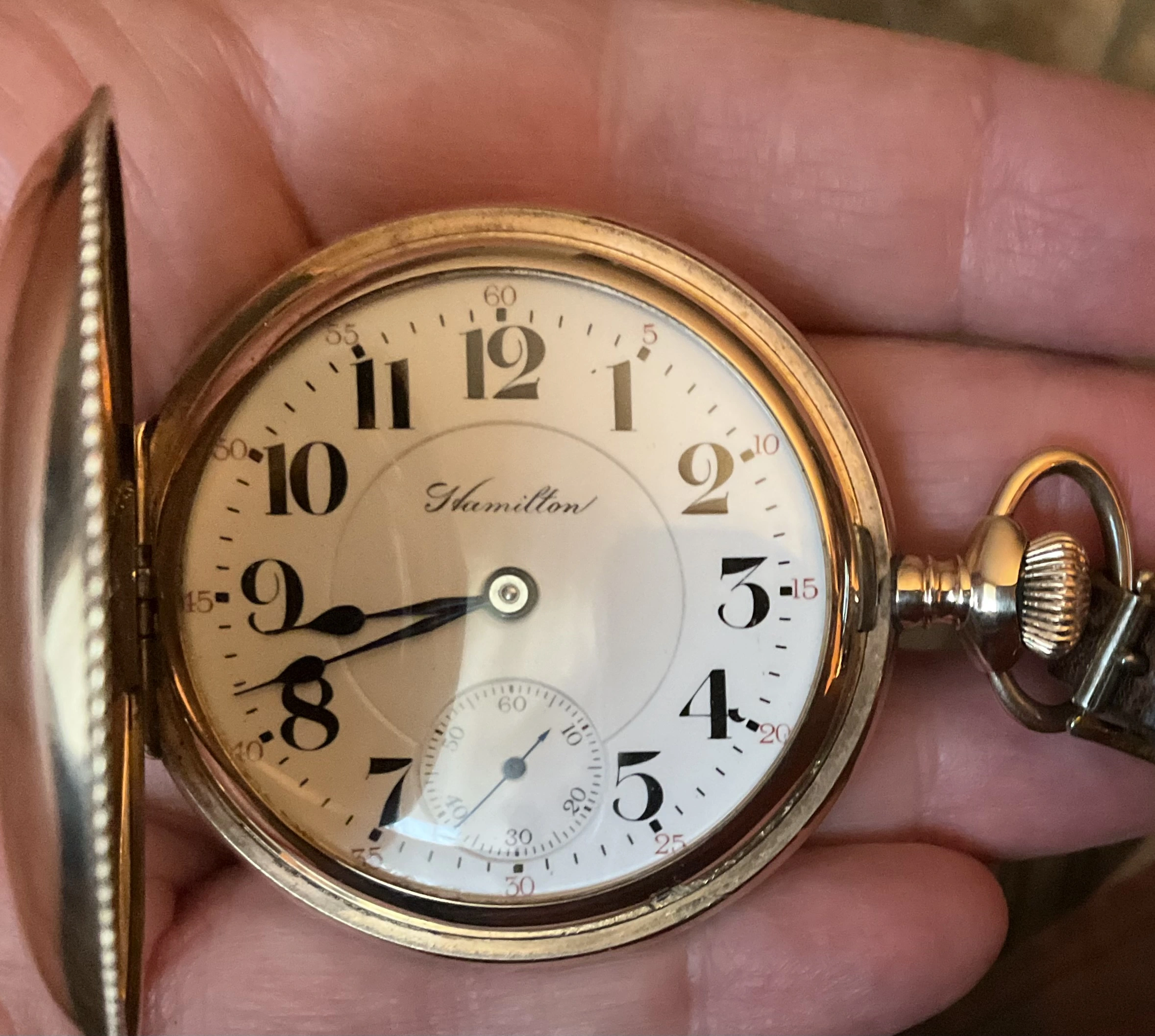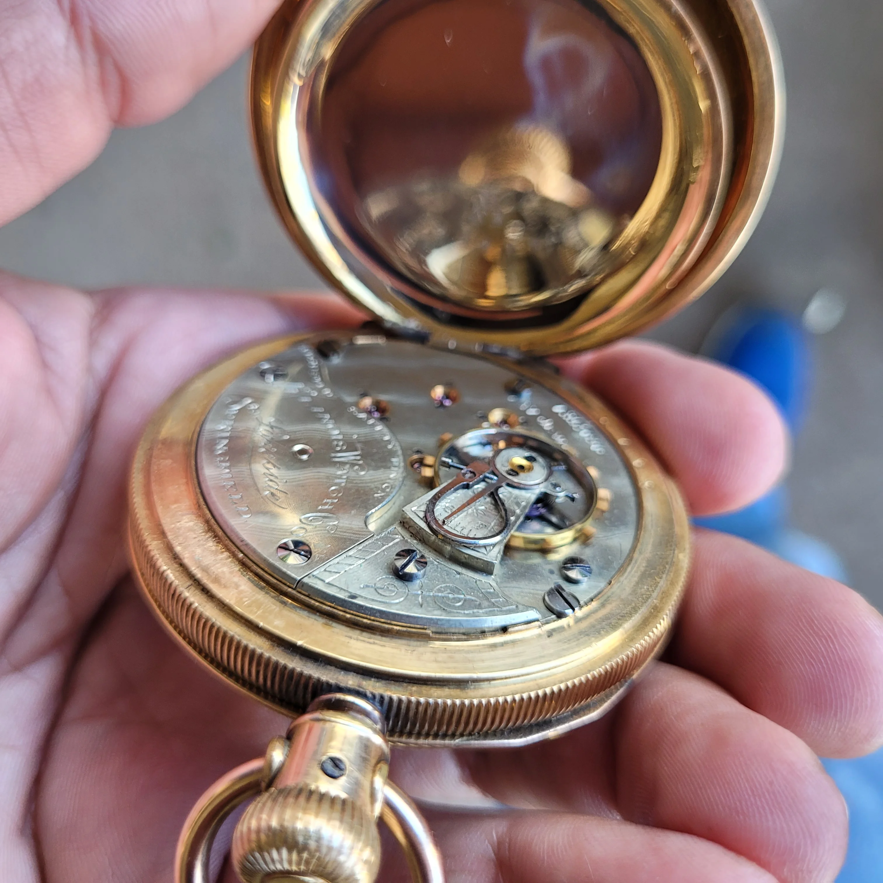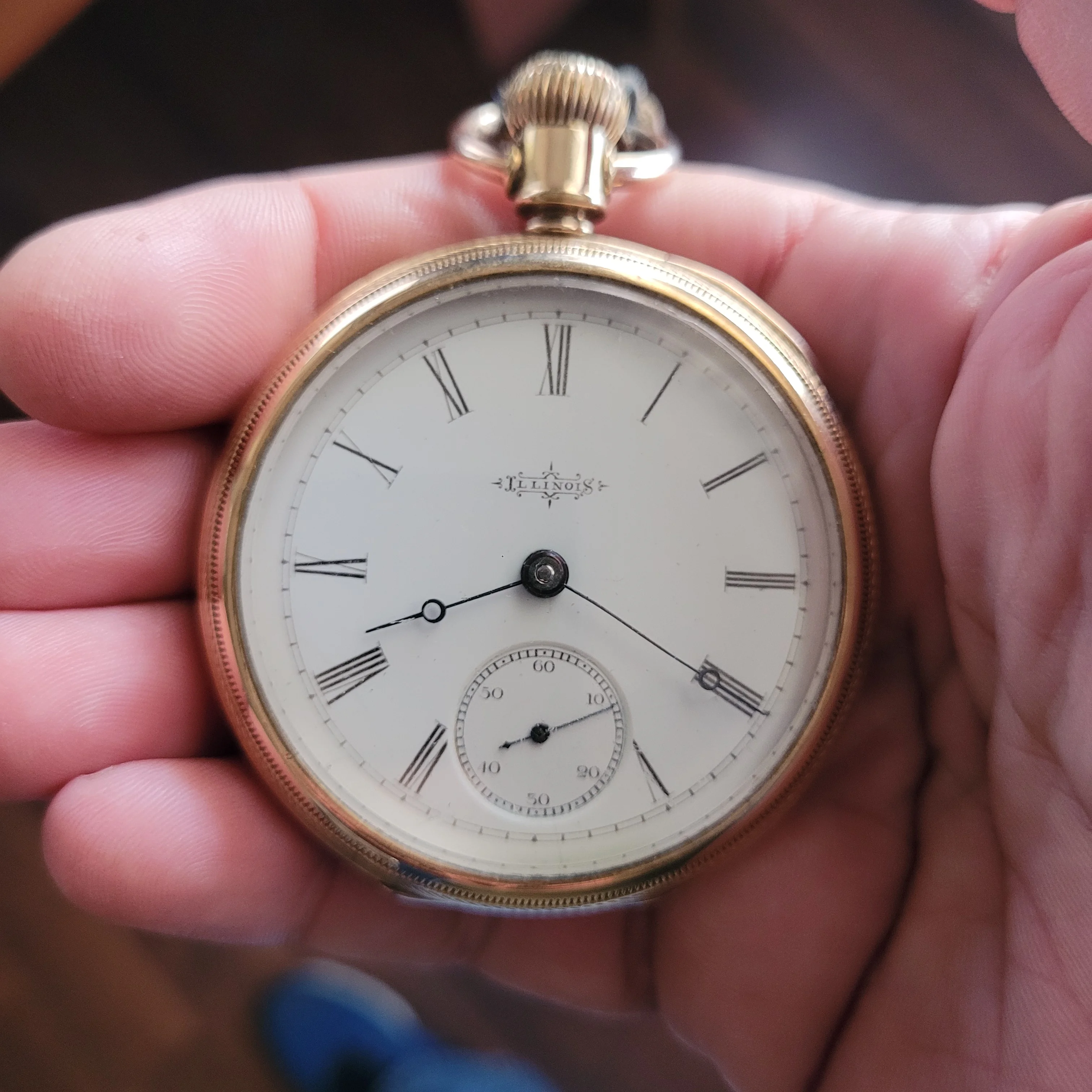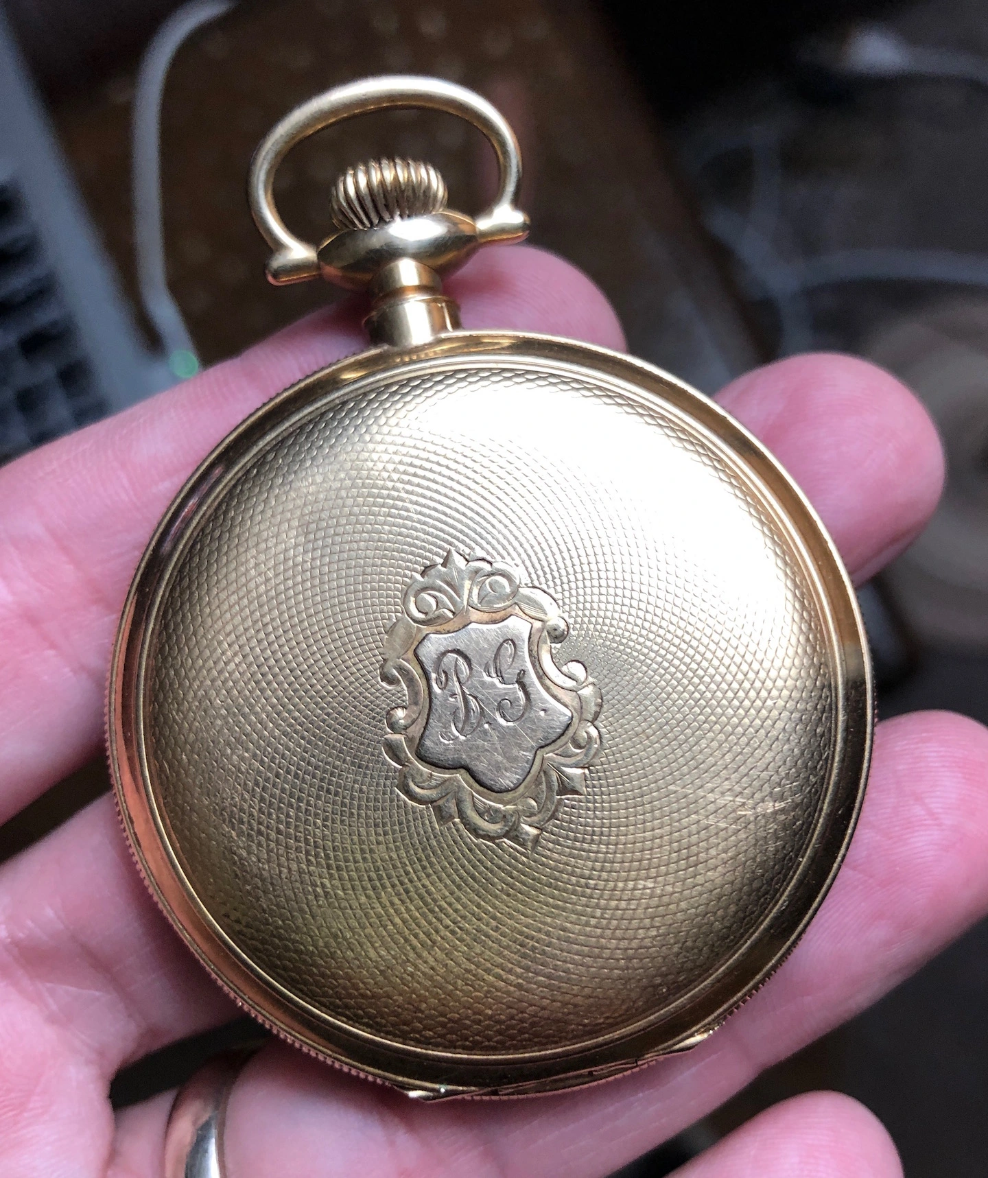 My grandfather’s pocket watch, passed down to my father and then my brother, I was unaware of this until today when he passed it on to me as he has no interest and is aware that I have. It is an omega movement cased in a Dennison case, with the dial marked by a local jeweller, Hilser’s here in Cork, from circa 1916. It’s not anything of great value but am absolutely thrilled to have it. It’s pretty dirty and dry so I’ll give it a good clean and put it on display, it’s in pretty good condition, working with all jewels and pivots etc intact.