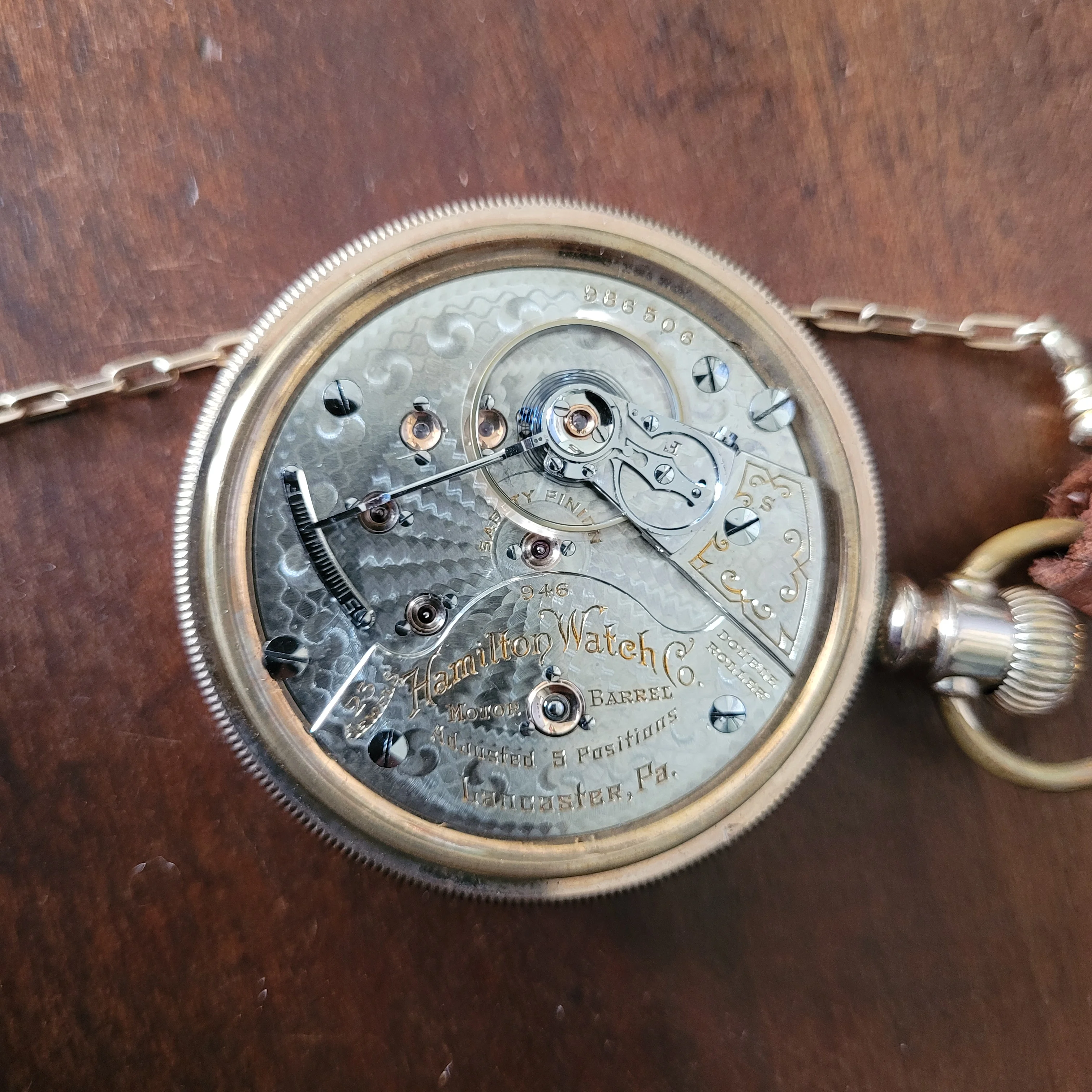 This Hamilton 974 Special features a dial that also refers to the interurban. I've not yet researched what it is about a 974 Special movement that makes it special over a regular 974 movement as is featured in the other Hamilton Electric Railway pocket watch.