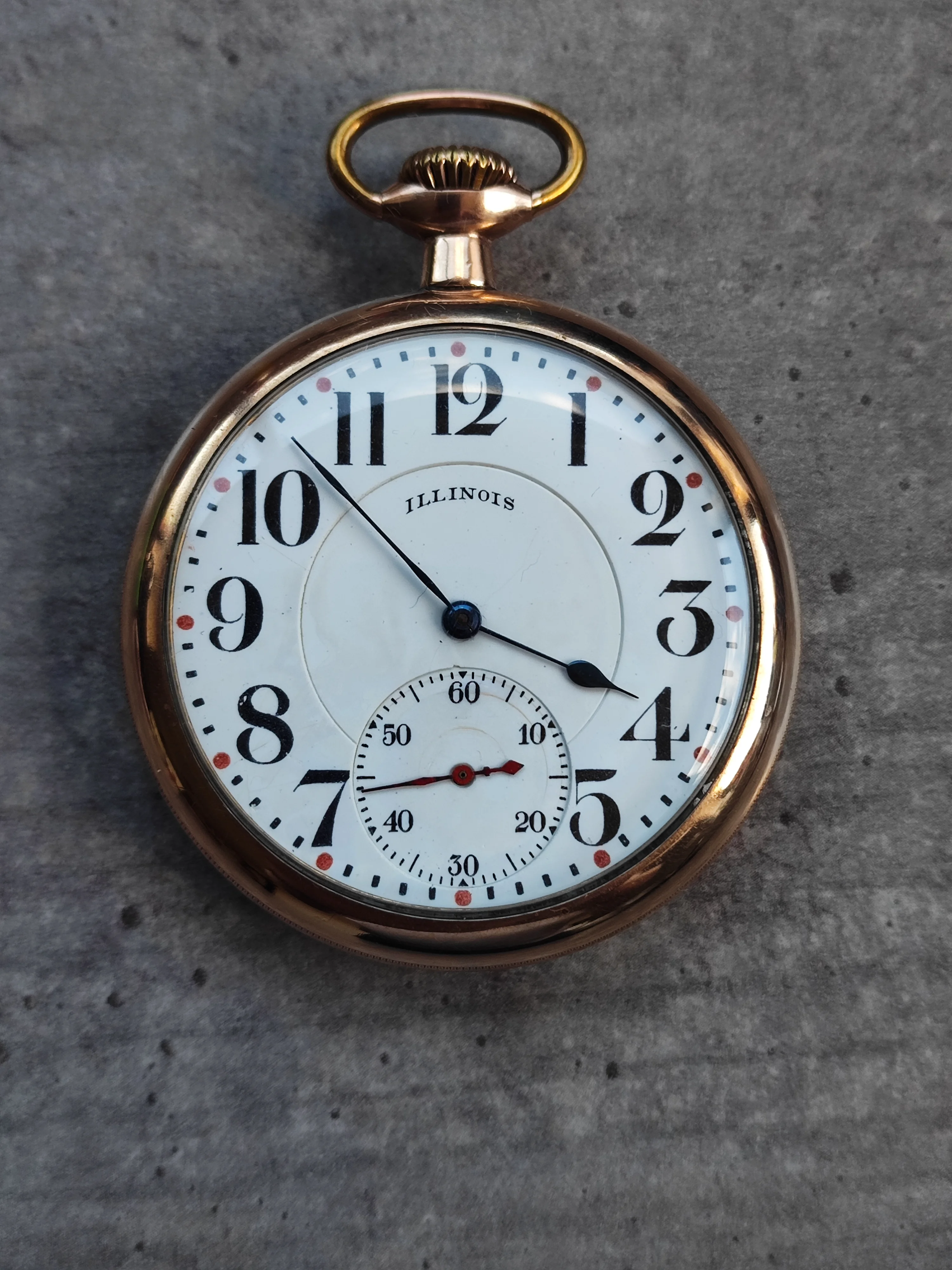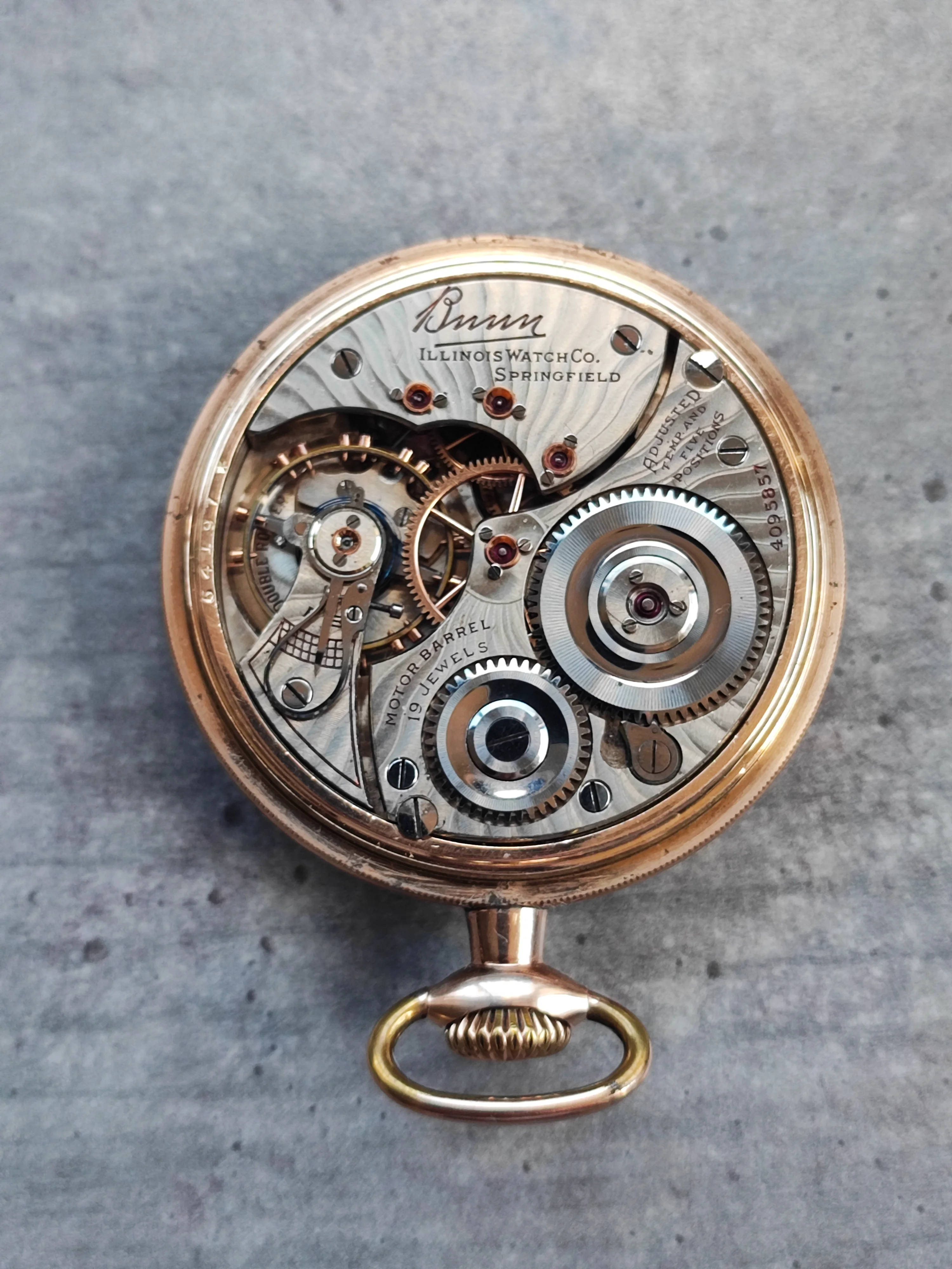I picked up quite a tasty 1921 vintage,19-jewel, grade 706, Illinois 16size watch just before Thanksgiving. The case has a nice rosey hue. Haven't given it a test run until today.