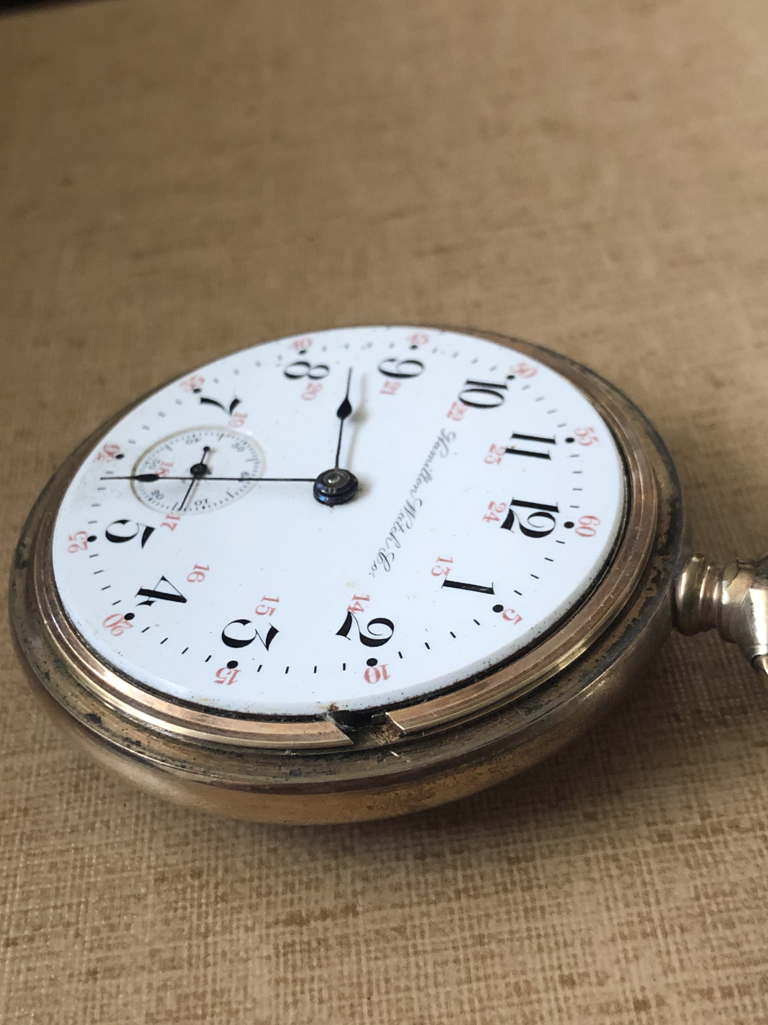As to which “railroad” watch to collect? You couldn’t ask a question that has more possible answers! The first North American railroad was the Baltimore and Ohio, in 1829. They would likely have had to use English watches, as there were no manufacturers of “quality” watches, in the U S, that early. Before the advent of a system of “standard time”, based on the zero meridian at Greenwich, England, was set down in about 1883, standards for what was a “railroad watch” were much looser. Who needed an accurate watch when railroads all operated solar time? Things tightened a bit after 1851 when telegraphy was introduced to operating a railroad. A rail system could subscribe to a time source (such as Western Union) whereby their system entirely operated on the same time, broadcast by telegraphy. regardless of solar time. Now, it became more important that crews had accurate time so their system could operate safely. Every system had its own General time inspector, and every system operated to a standard set down by their inspector. Some crews used a cheap alarm clock hung on a coat hook!