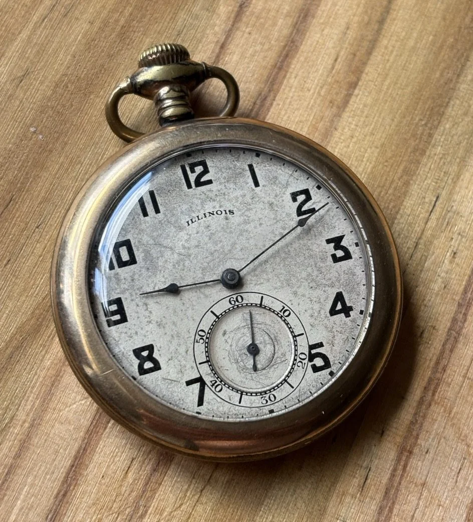 You may be right, I certainly didn't like the dial condition compared to the shiny looking glass, that and the short sub second hand and overall poor dial. This dial style and composition I have seen on Illinois watches but usually on sub 16 size watches.