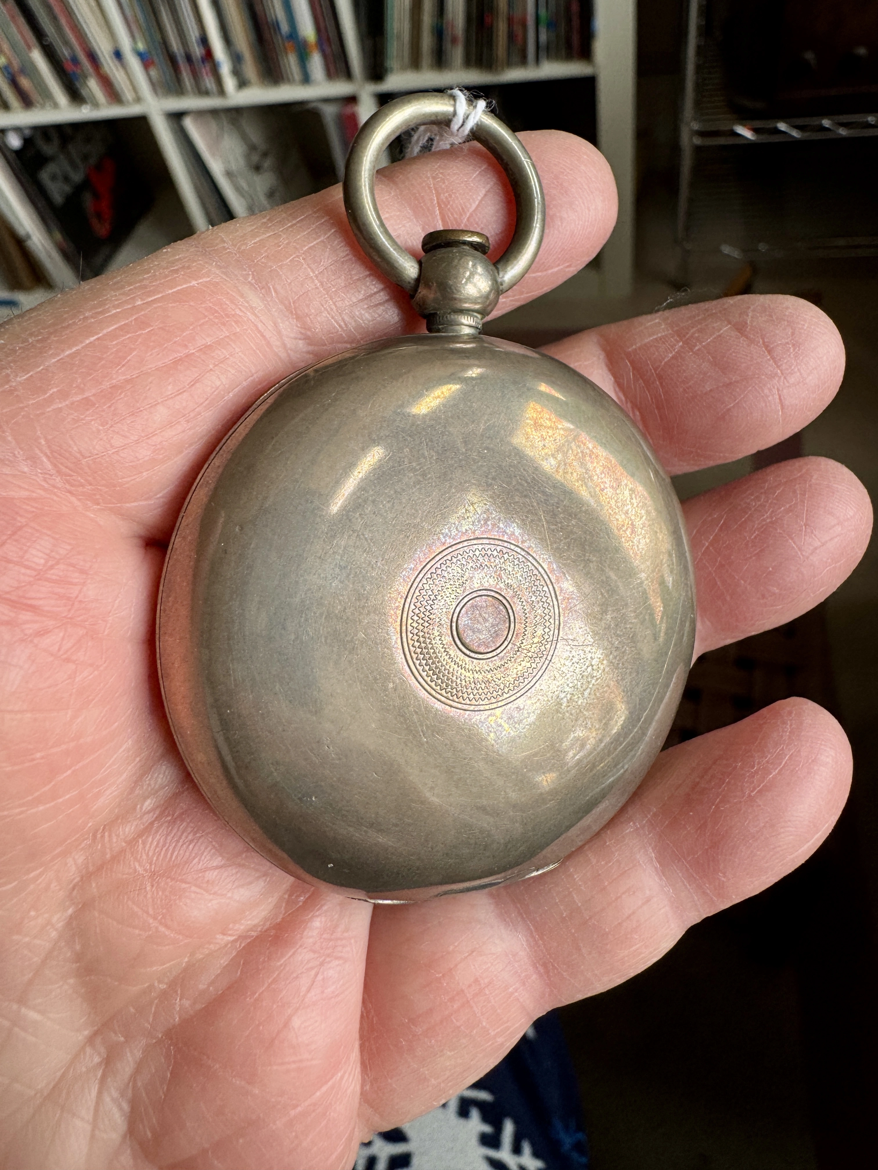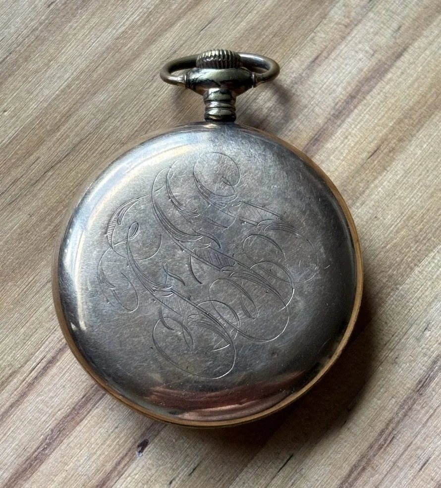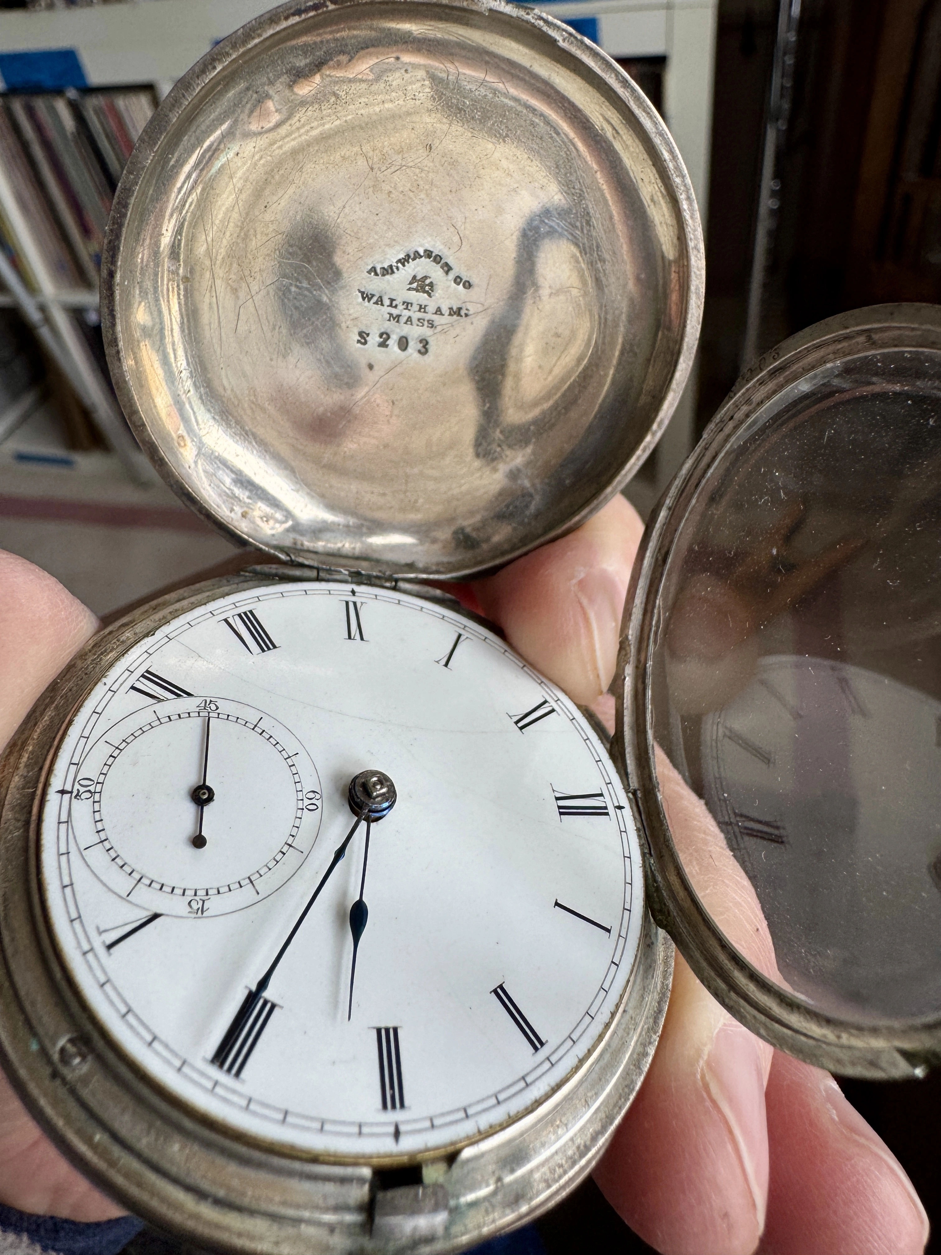 With an American Watch Co coin silver case. Not much labor cost put into the case, the back is smooth like 90% of the front.