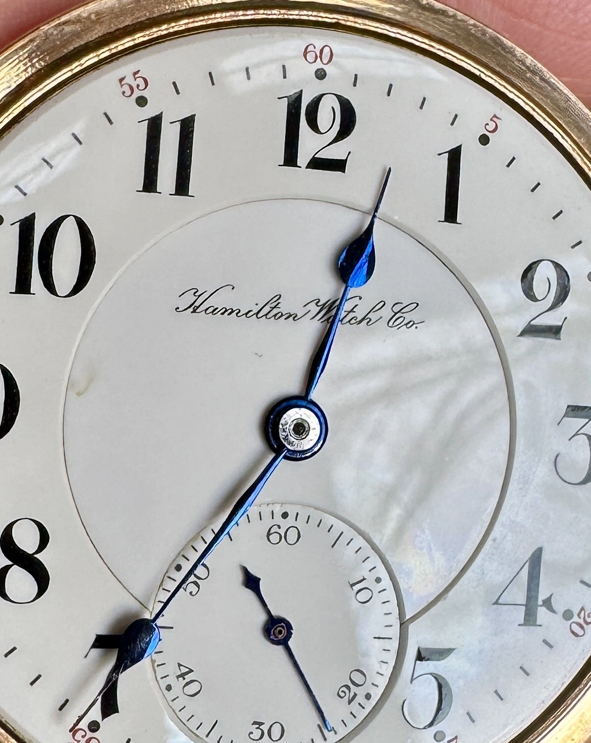 It occurs to me that I don’t recall ever seeing a double sunk vitreous enamel dial on a 12-size watch. So I suspect you’ll have difficulty building a collection of 12-size watches with double sunk dials. Otherwise, the movement is as nice as I’ve seen, in any size of watch.