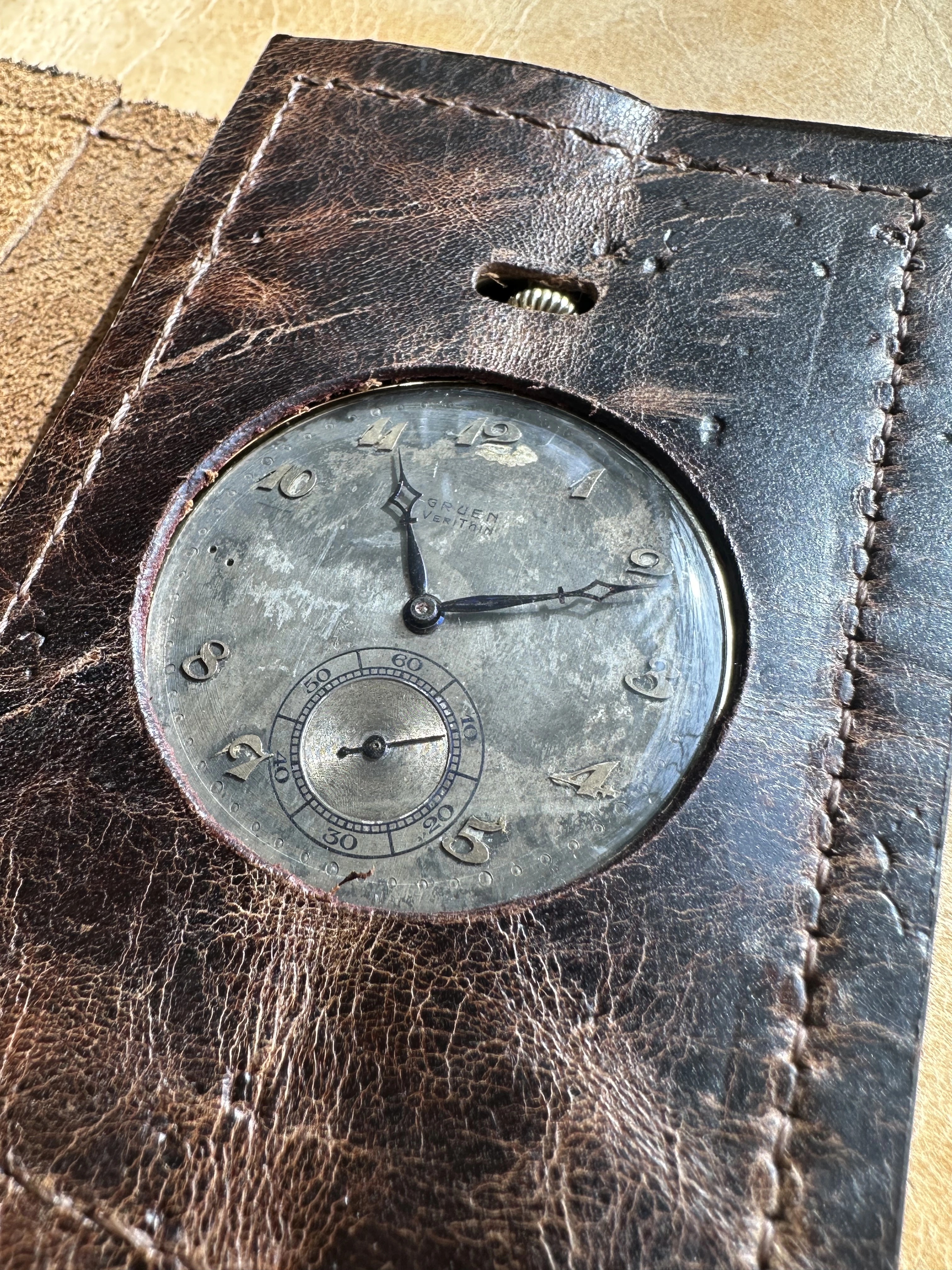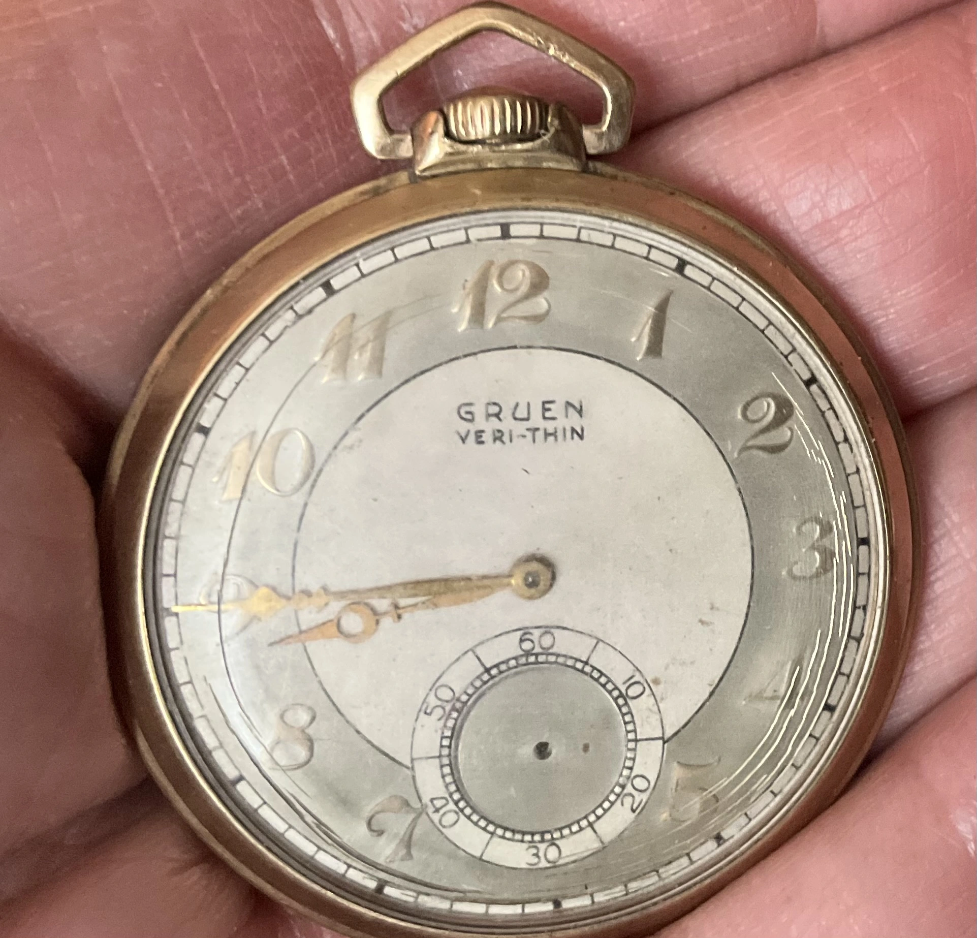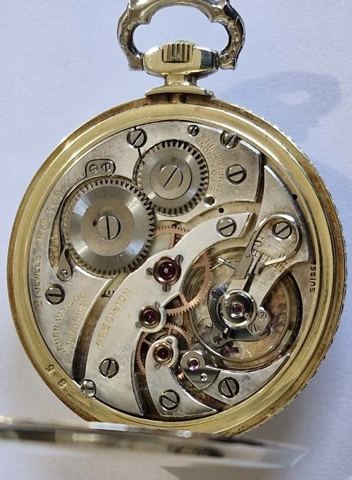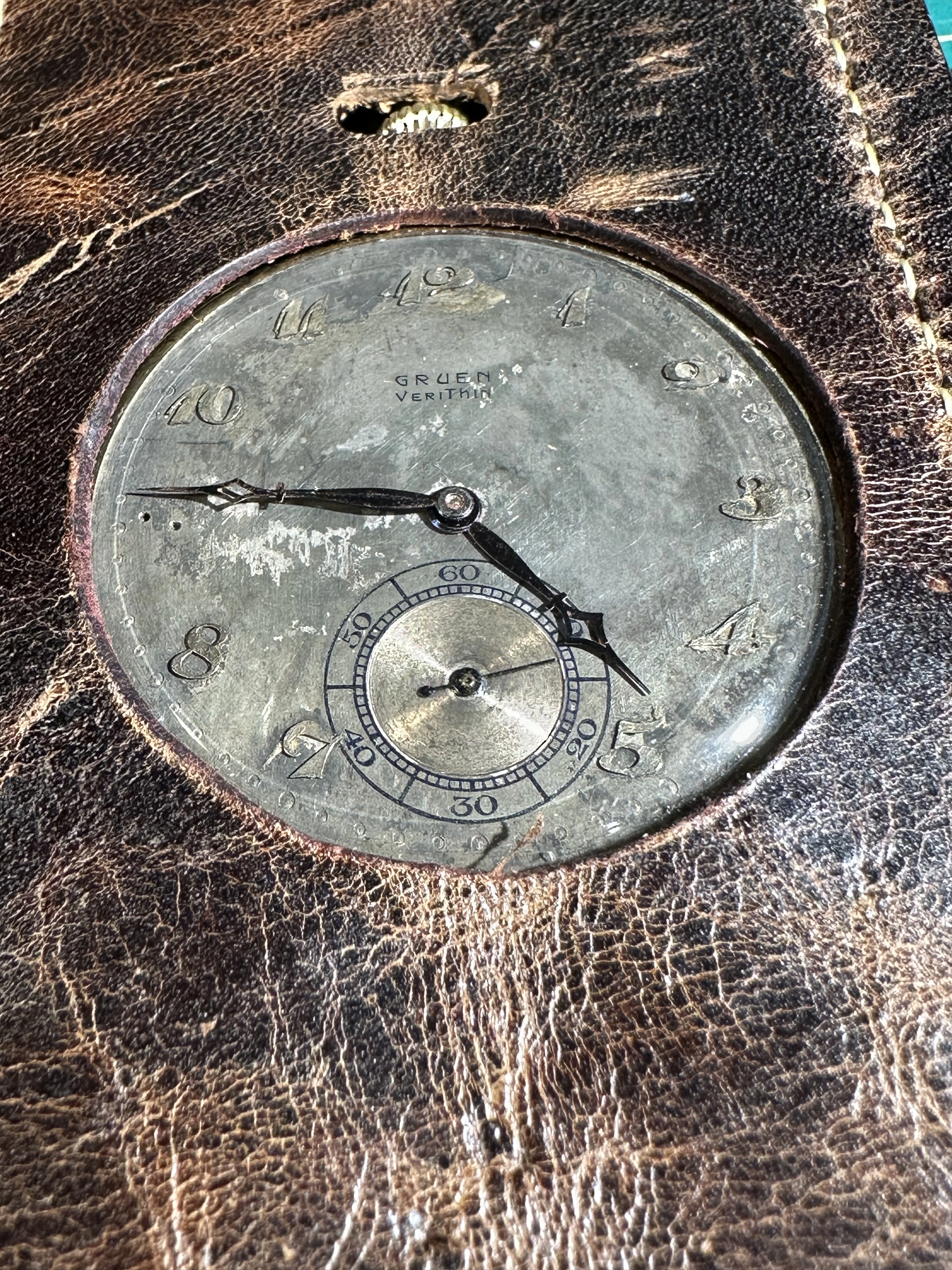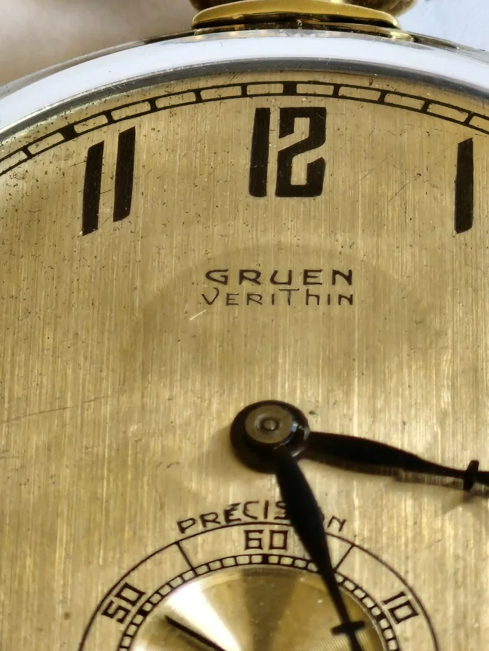 This dial, on a donor Gruen in my stash is the dial that was offered to @Duracuir1 for his Gruen pocket watch. But it is also much like the dial that @TexOmega has on his Gruen pocket watch. But different movement in my donor watch.