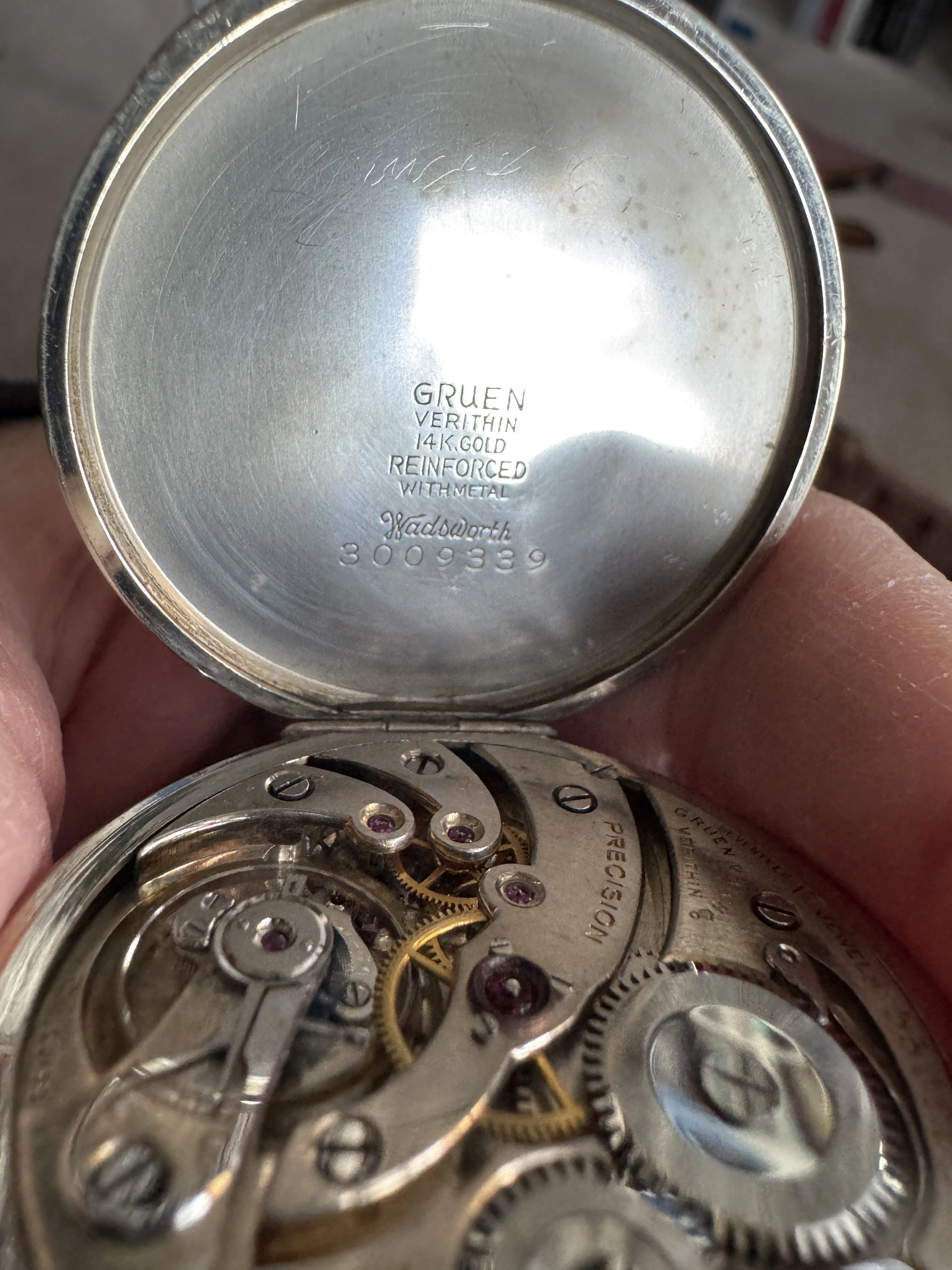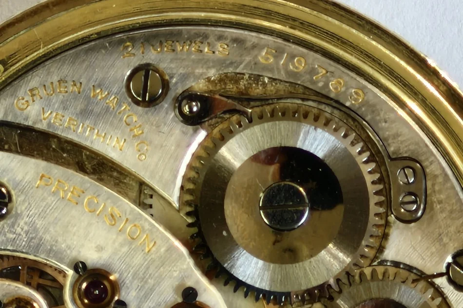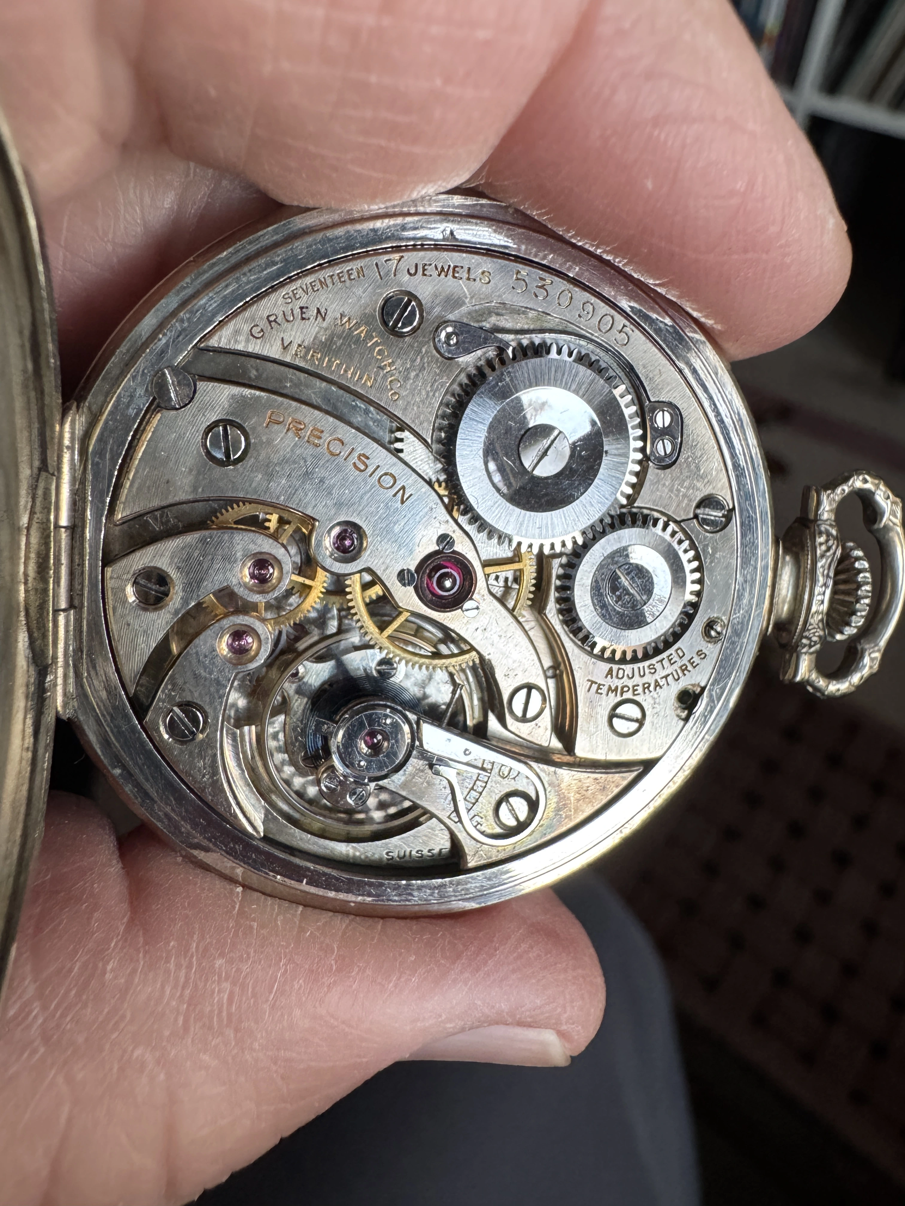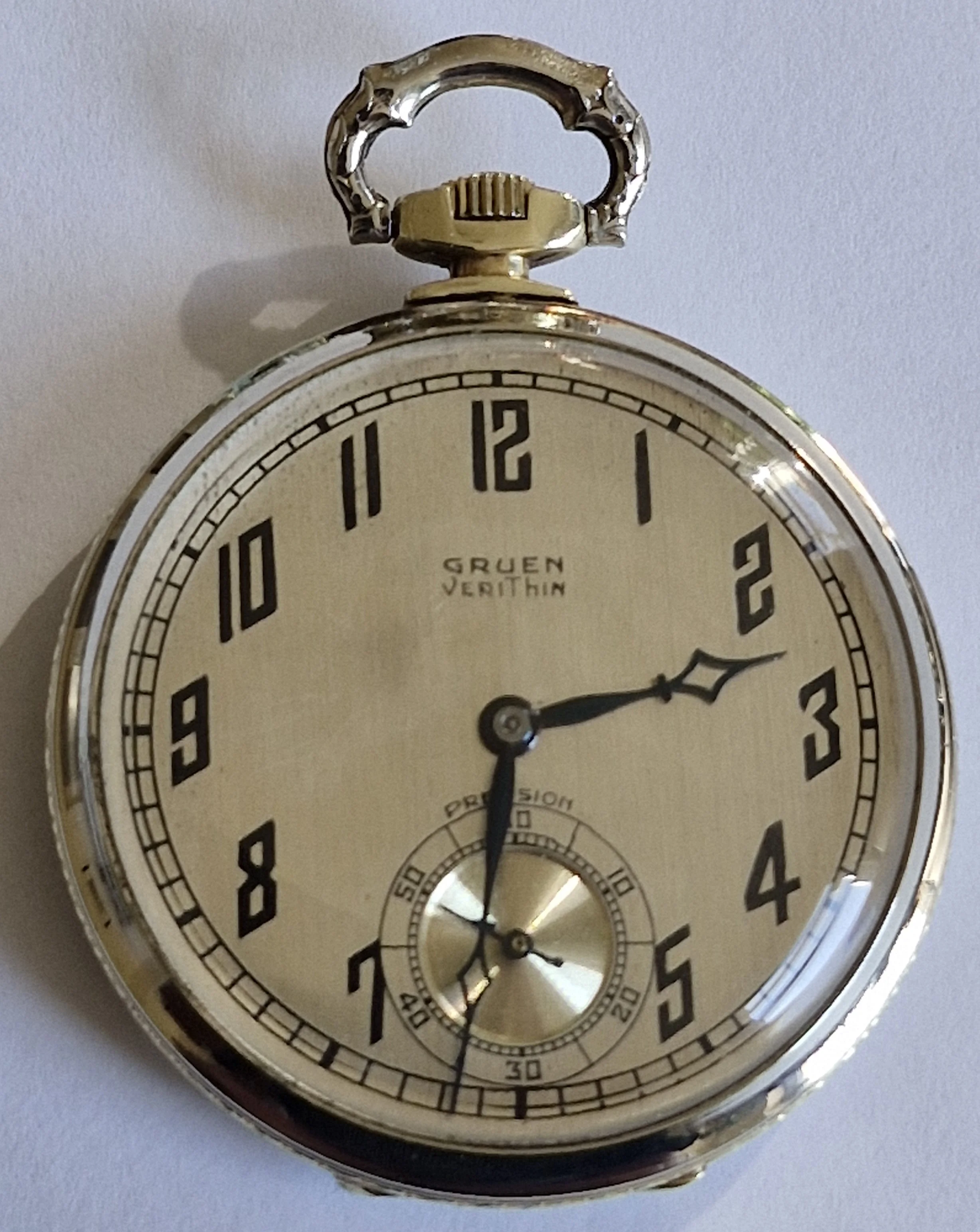 This dial, on a donor Gruen in my stash is the dial that was offered to @Duracuir1 for his Gruen pocket watch. But it is also much like the dial that @TexOmega has on his Gruen pocket watch. But different movement in my donor watch.