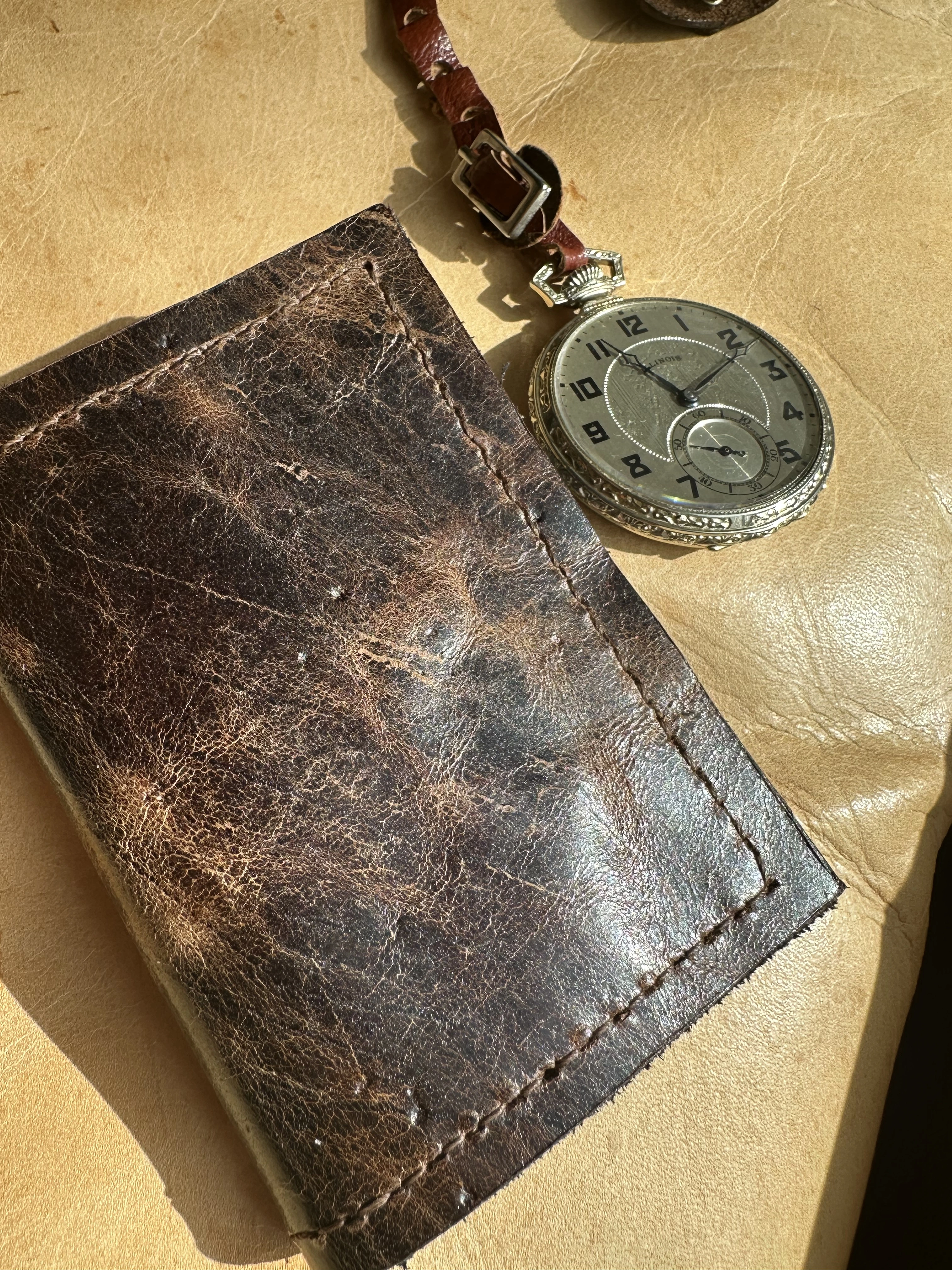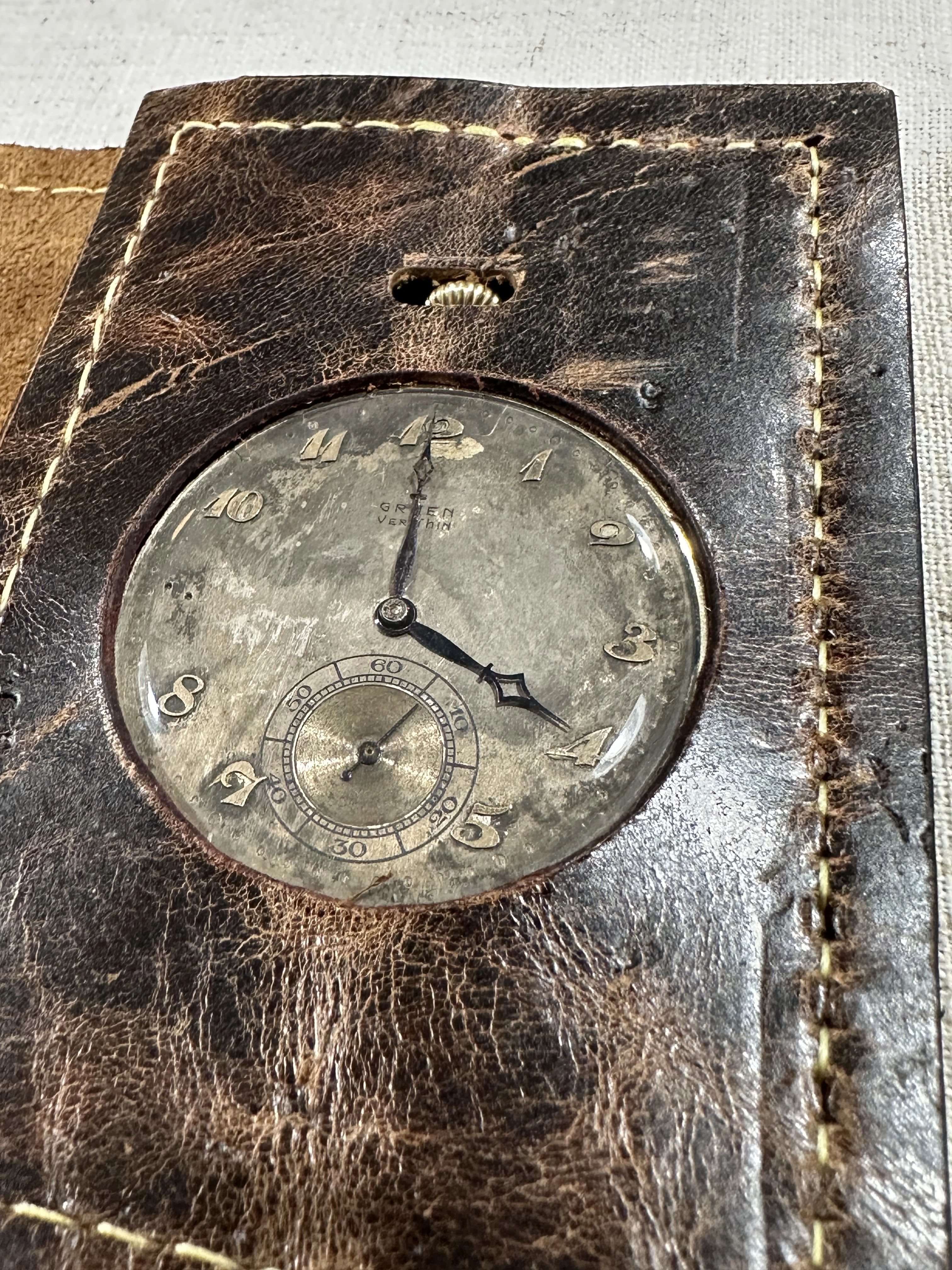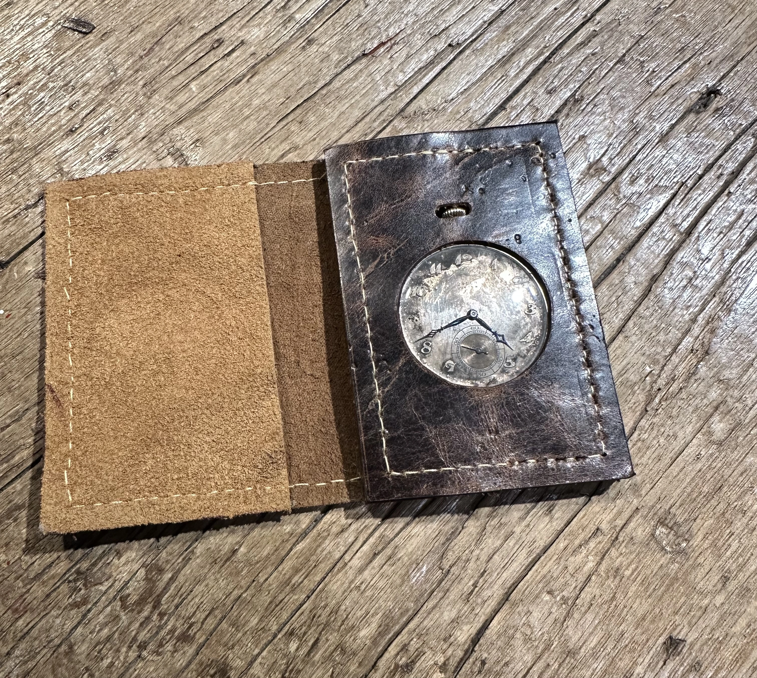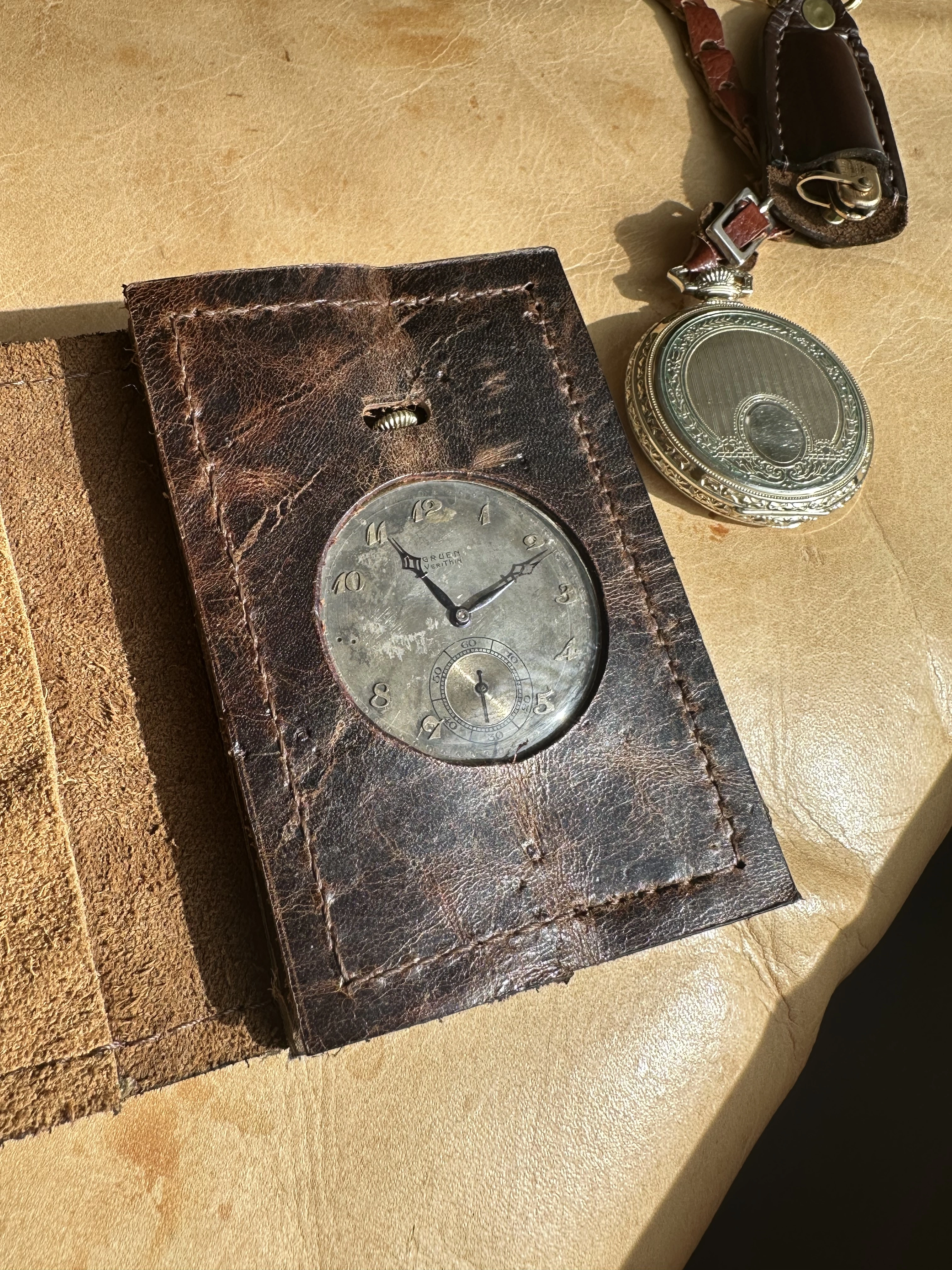 Canuck warned me that the crystal on the Gruen is vulnerable. So I made this wallet that reminds me of my police credentials.